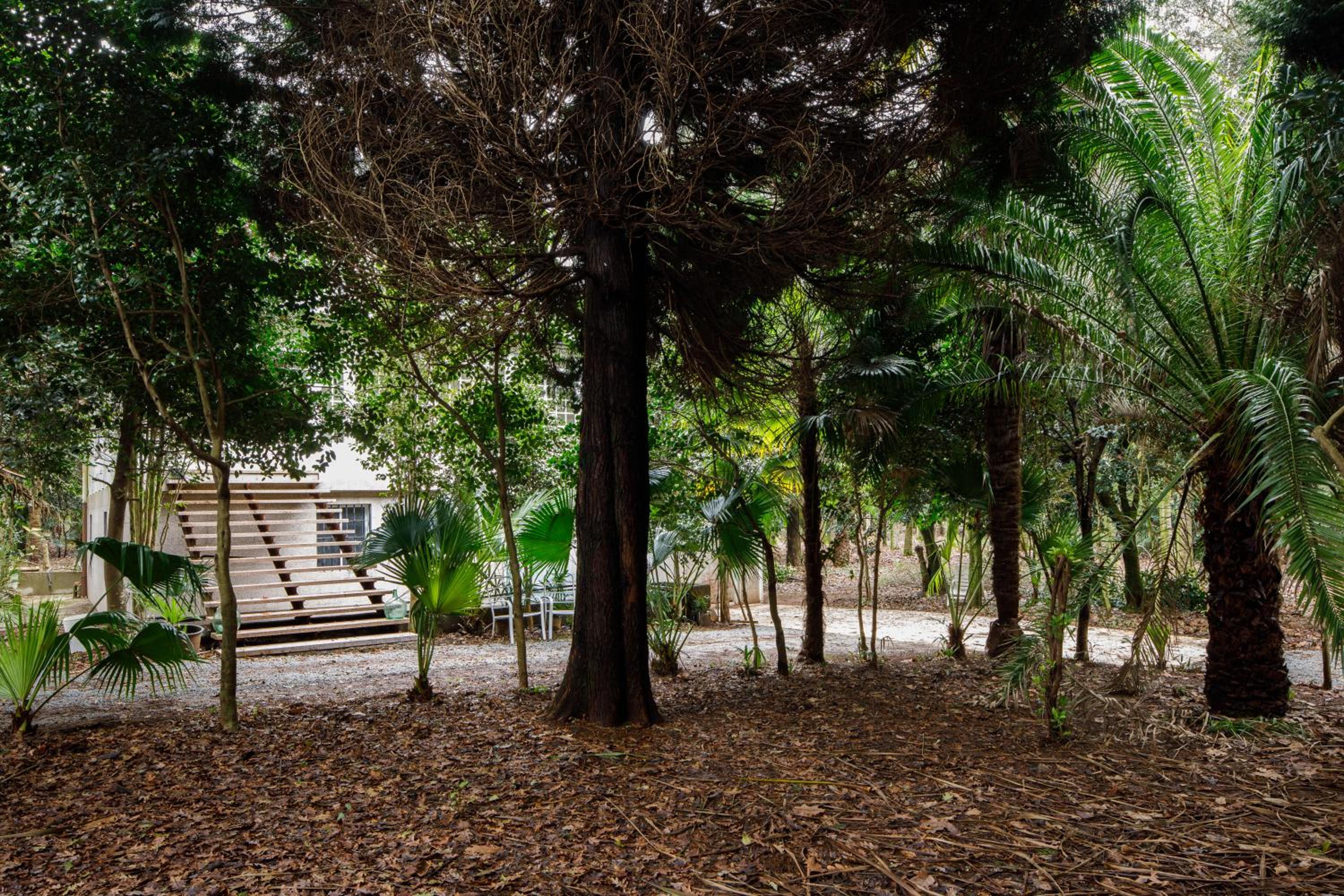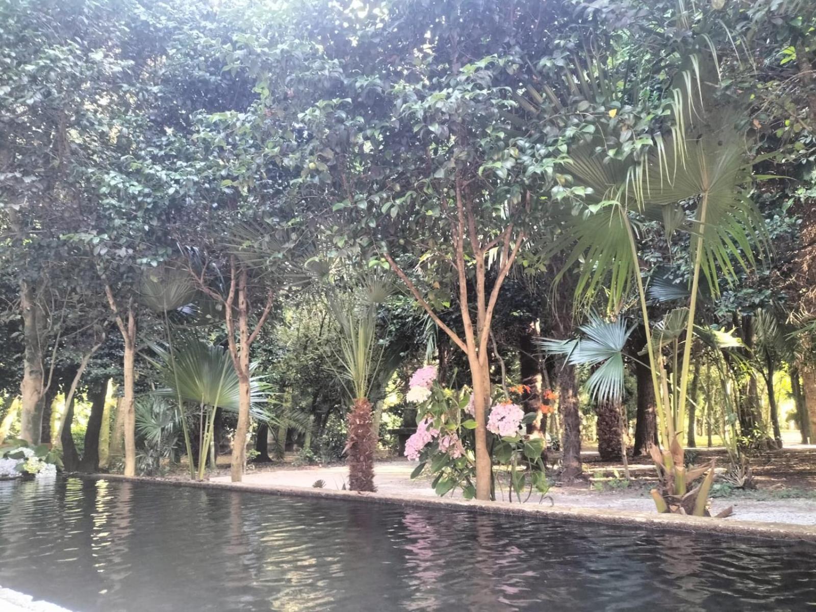 Los jardines estaban con hojas en la piscina vacía pero bueno era invierno