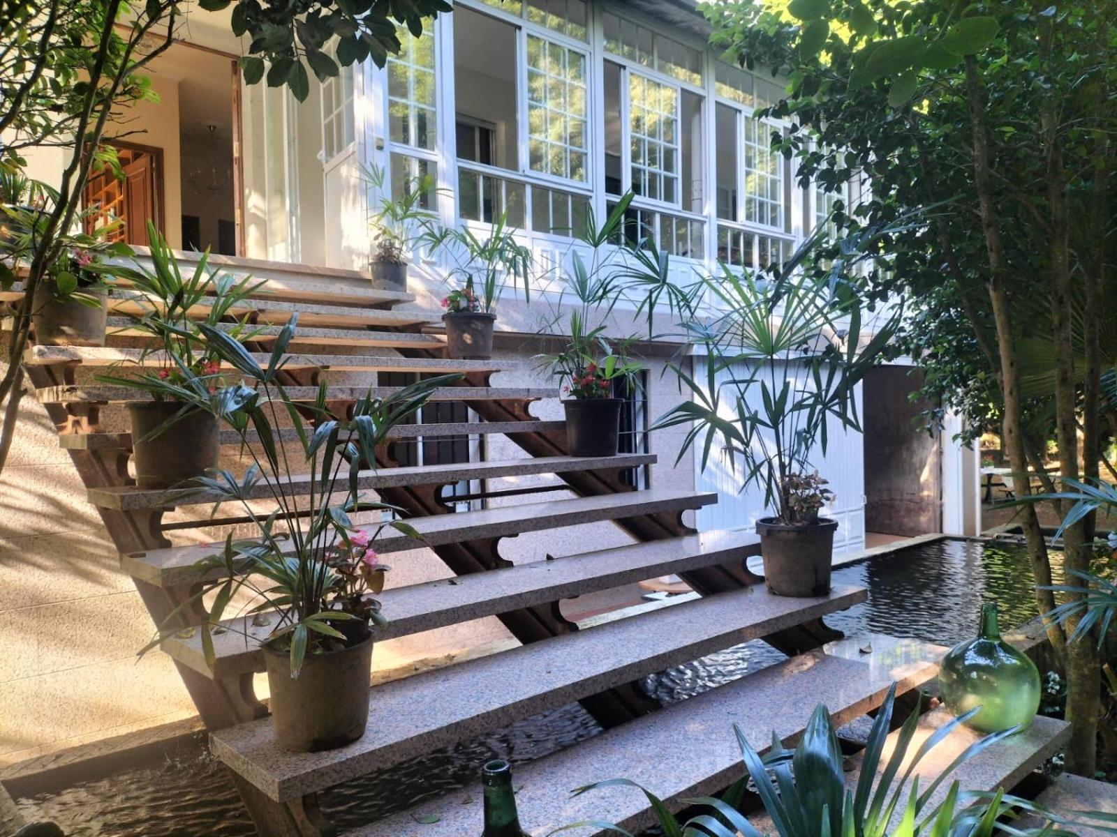 Es una casa enorme en una finca cerrada donde puedes dejar el coche dentro; lo cual es un puntazo. El jardín tiene una fuente y varios sofás donde descansar. La cama era cómoda. Richard y Susana muy agradables y atentos.