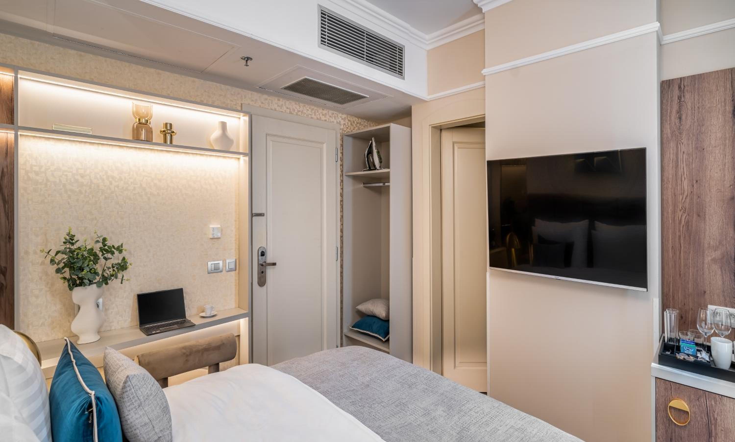 Hotel a pokoj byl čistý, moderní, odhlučněný (z ulice nebylo nic slyšet), pohodlná postel, dostatek zásuvek, mít kávovar a trezor na pokoji bylo skvělé, vše hodnotím na 100% spokojenost. Žádný recepční nebyl potřeba, pokoje jsou na kód a v případě nějakého problémů je uveden telefon a adresa kam se obrátit. Lokalita hotelu skvělá.