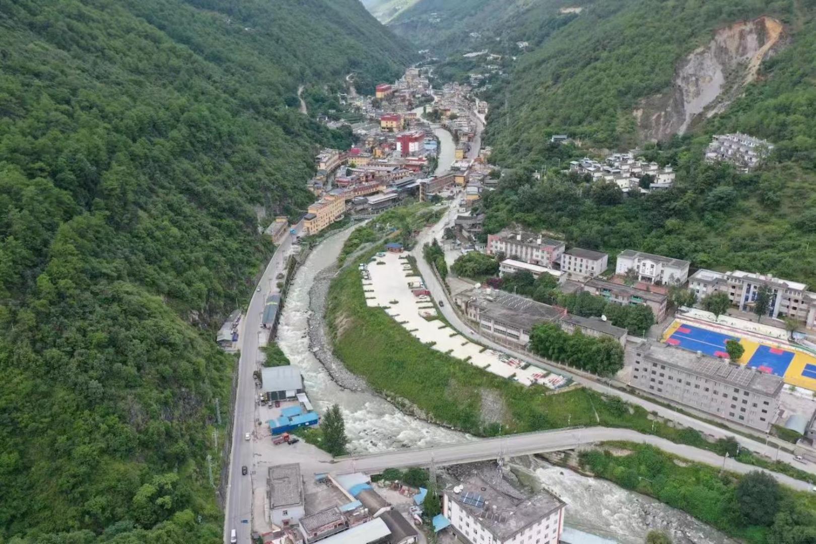 The actual town center is about 1 km away. Walking is not advisable as the road is unsafe due to heavy traffic. There is marginal noise from the traffic, but even as a light sleeper I had no problems resting well. If travelling to Shangri-La the taxi driver can show you this Tibetan style town. There is little to see per se. There is a supermarket, albeit, not the finest. Shangri-La offers better choices.
