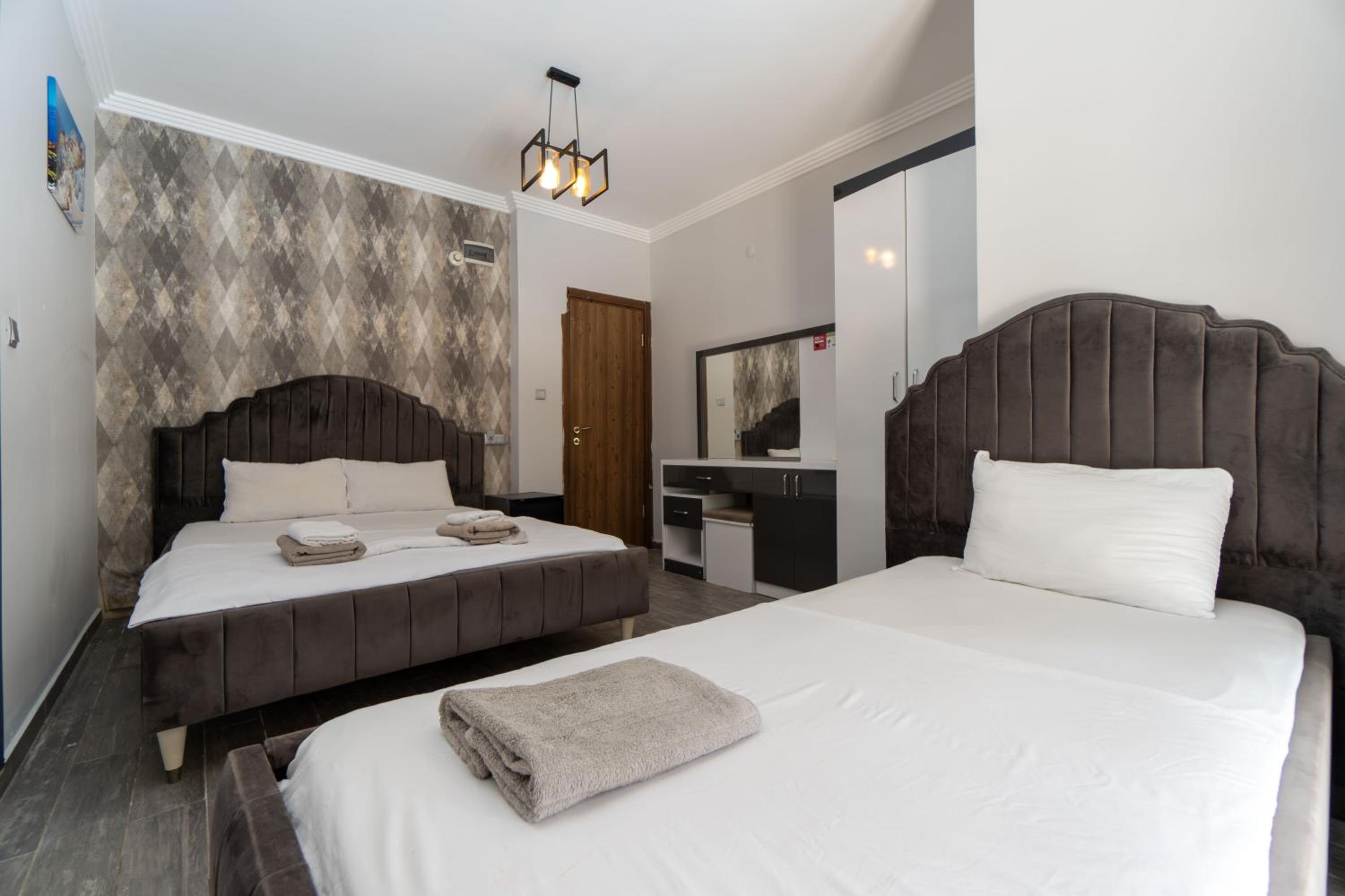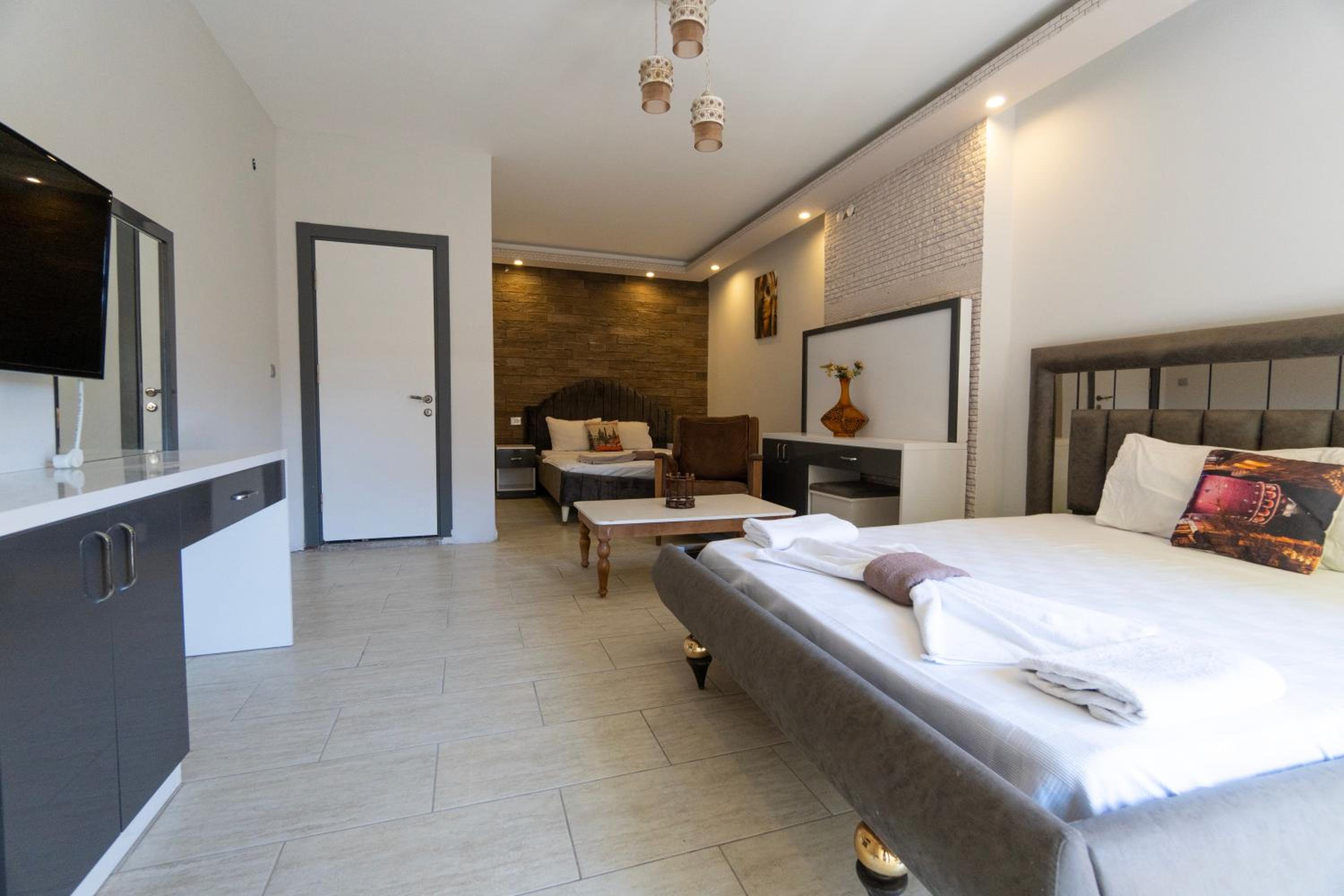 The room was damp and dirty with absolutely no attention to detail or finishes. The door wouldn’t lock and we had to leave it open. There was a bad smell and the curtains were just precariously placed, so much that one fell down and they charged us an extra 1500 TL to repair it