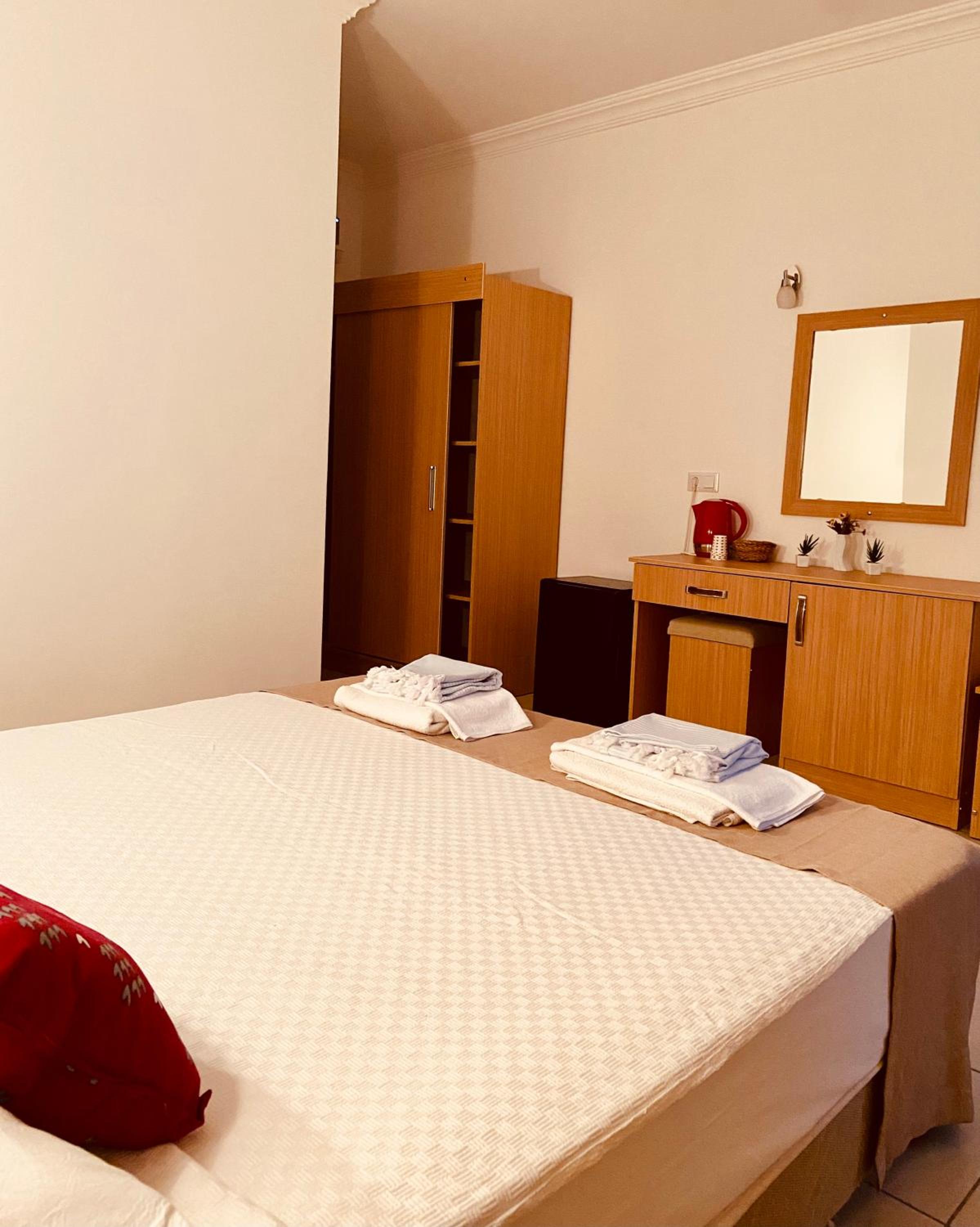 Modern Amenities: Each unit at the hotel is equipped with air conditioning, a flat-screen TV, and free WiFi. The rooms also feature a safety deposit box, a kettle, and a private bathroom with complimentary toiletries.