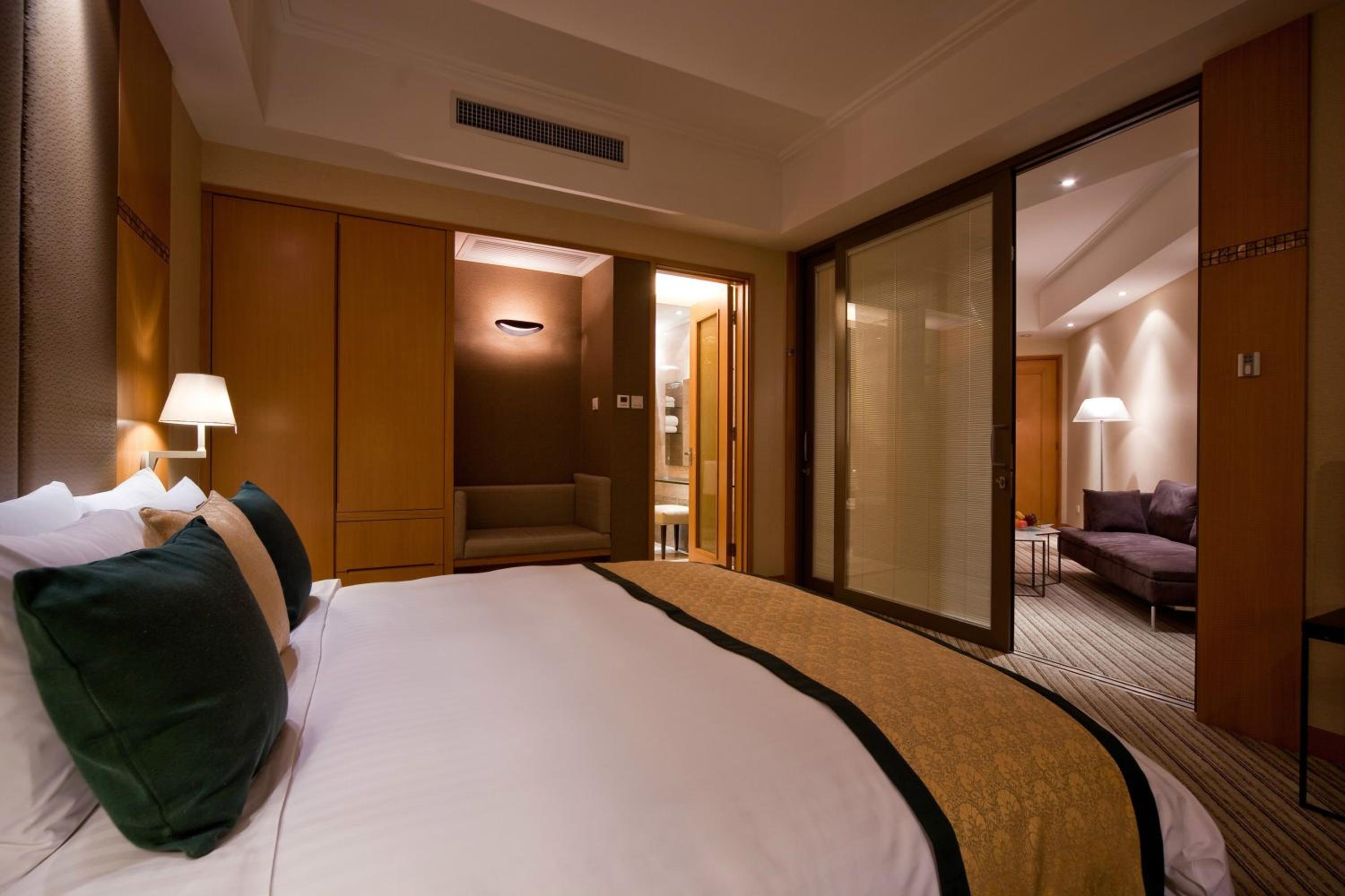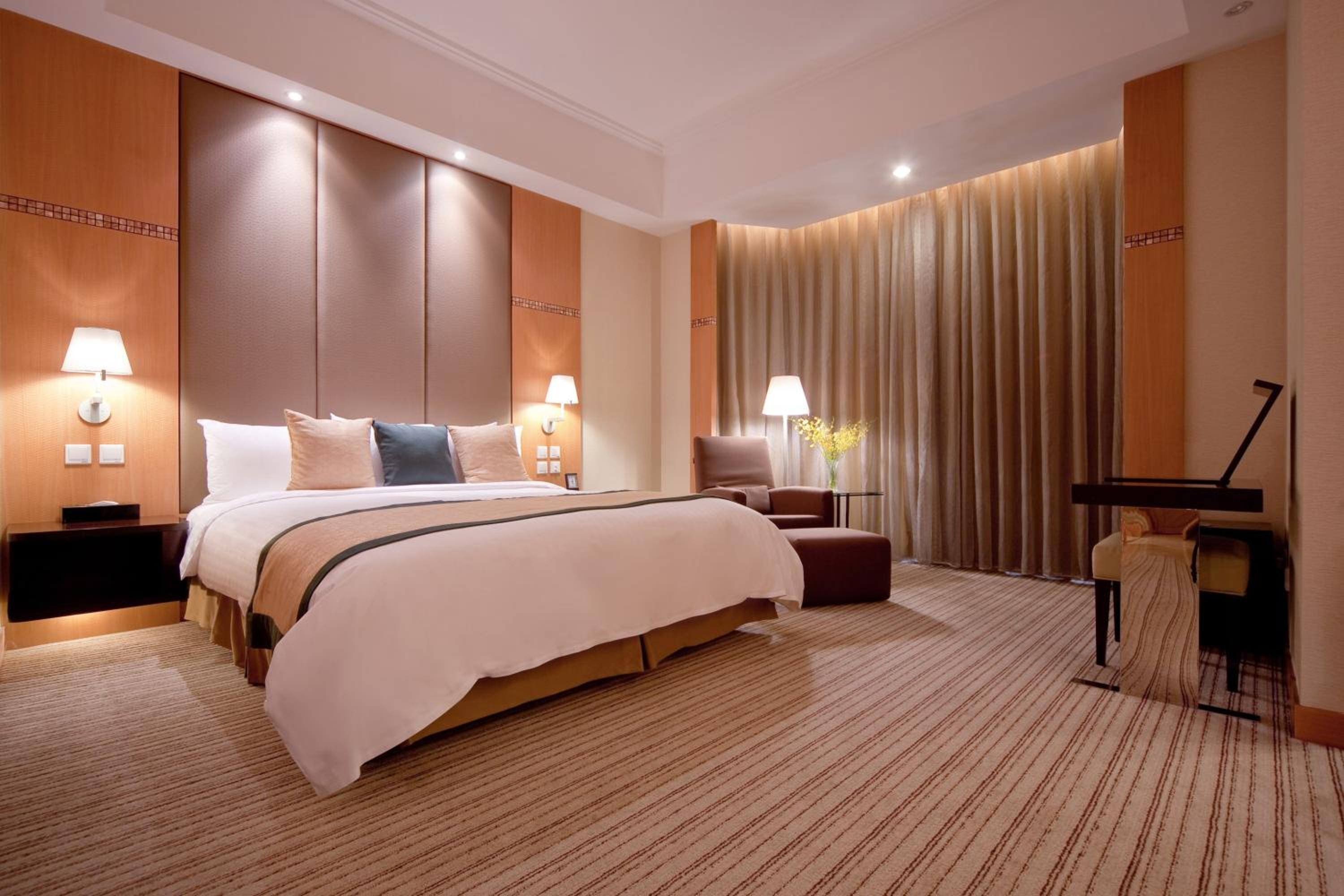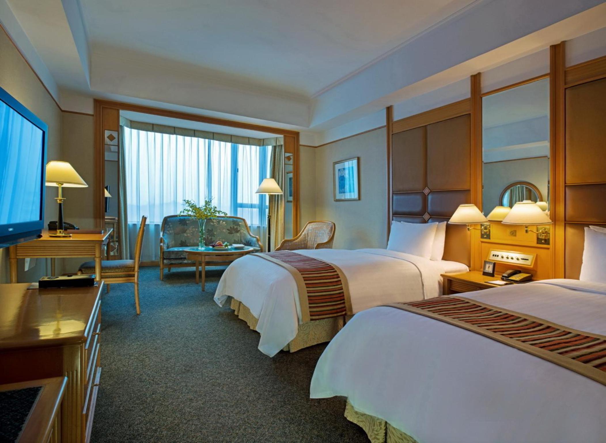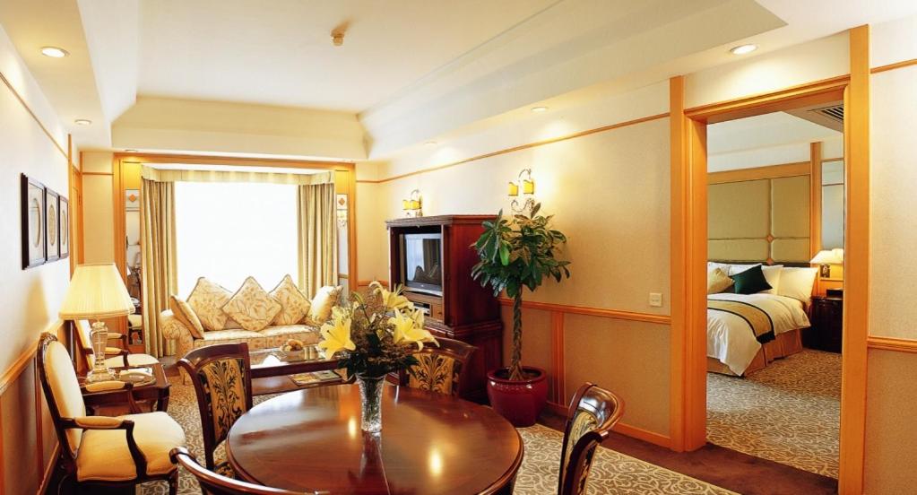 The hotel's rooms are tastefully adorned with cozy lighting and plush carpeting, featuring modern amenities such as a flat-screen TV and a comfortable seating area. Indulge in delectable Cantonese cuisine at the Hua Mei Garden restaurant, promising a culinary experience to remember.