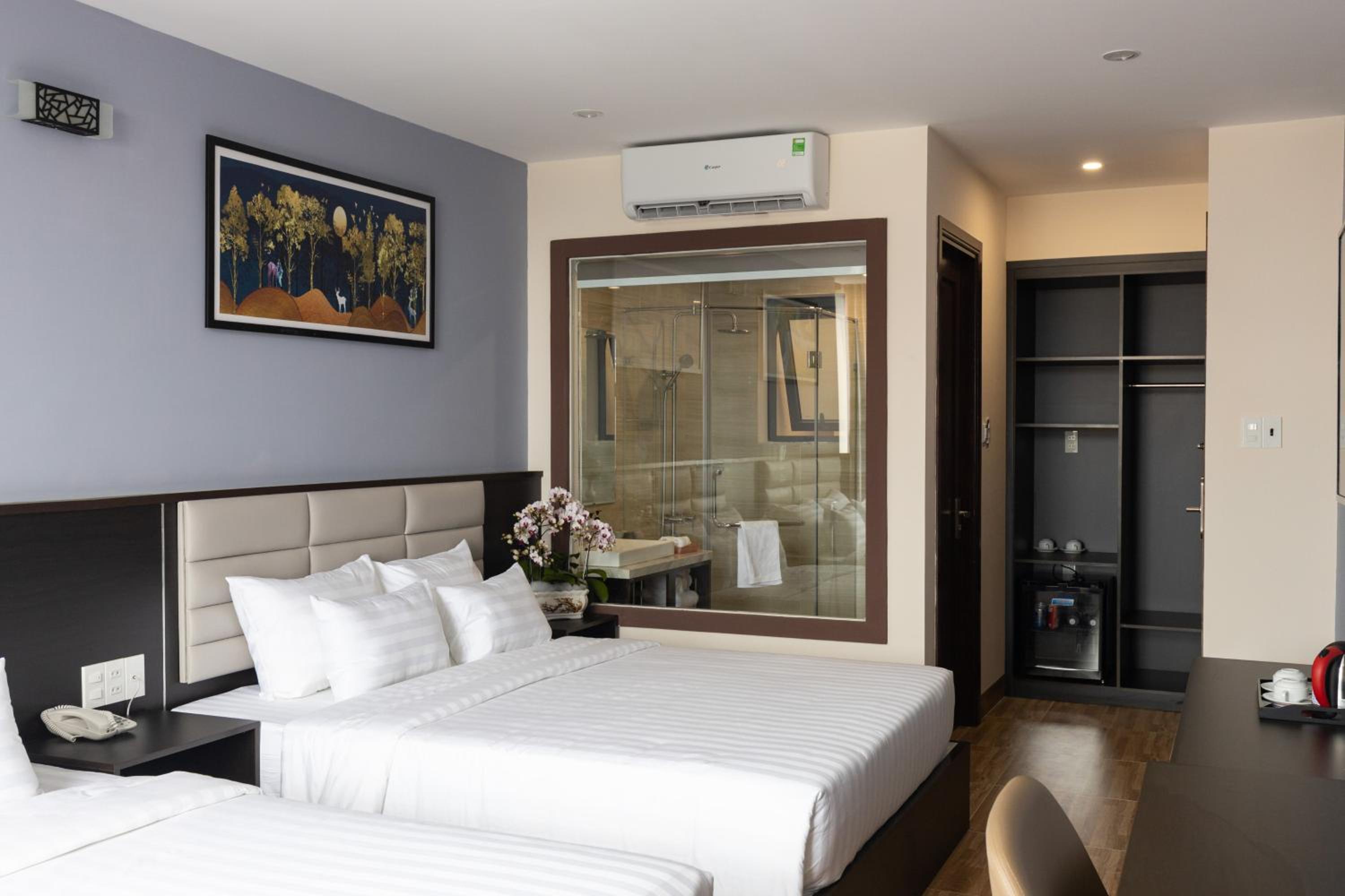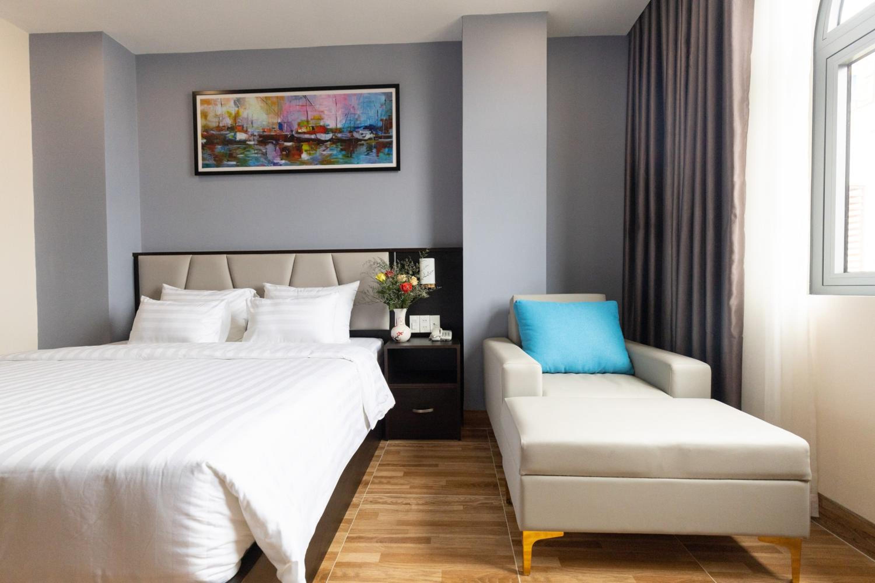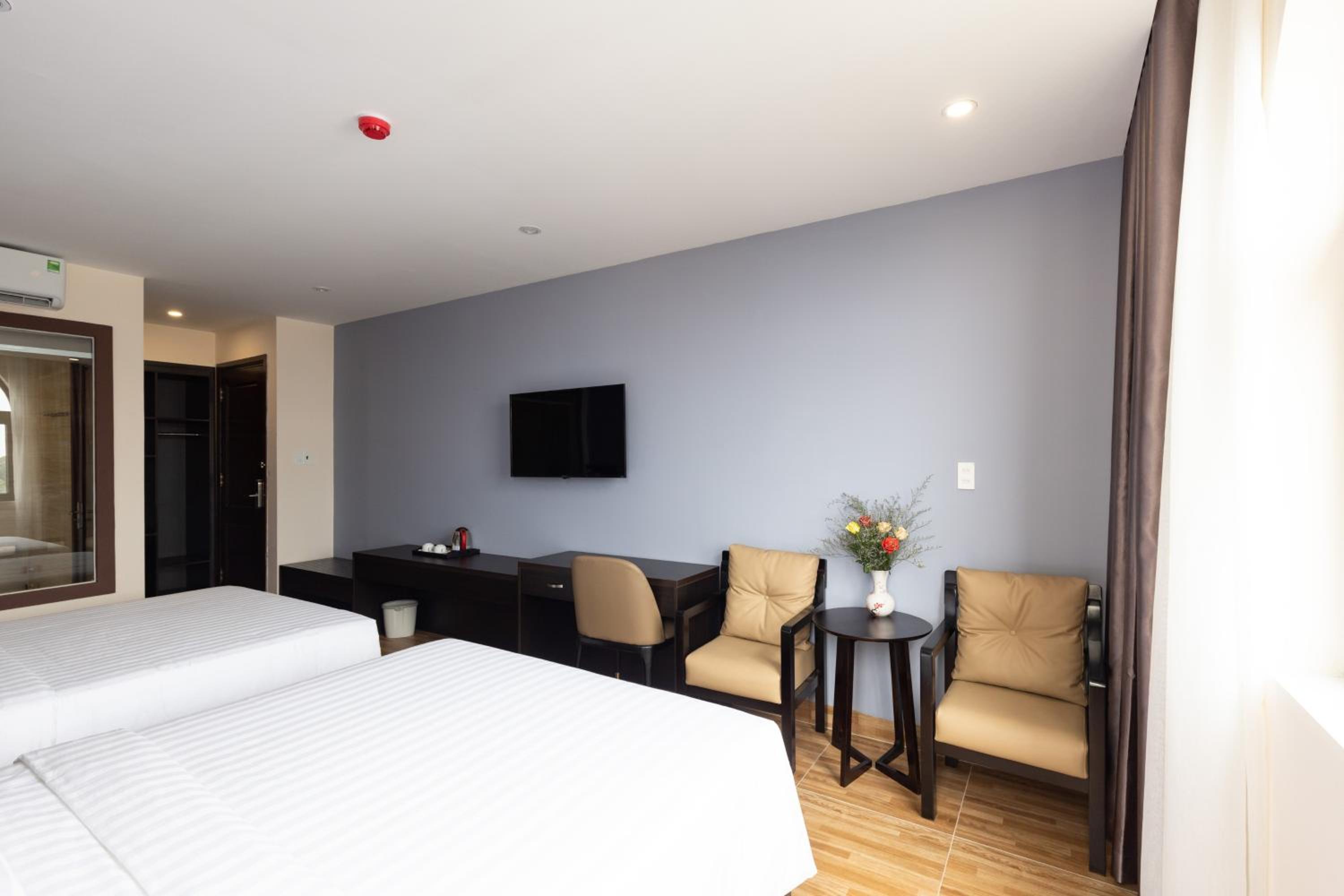Located on the main, crowded and heavy traffic street of the city, the hotel is super near the Flagpole Park/the gate of Back Beach and surrounded by many local 'bistros' with 'iconic' dishes such as banh khot, stingray hotpot, banh bong lan trung muoi,... in case you don't have any idea for meals. The quality is so-so and the price is not reasonable sometimes. Dig around the internet if you want to come to the 'right' must-try bistro for each dishes. No receptionist, the security guy would give you a check-in. The room is decent, clean, no smell issues. The bed is comfortable enough for someone has sleeping difficulties like me. I request to check out at 2pm due to my schedule and the extra fee is kinda 'soft' 50.000vnd/hour. Personal luggage was kept at the reception for me to freely have a city tour in last minutes before I left. Nice support!