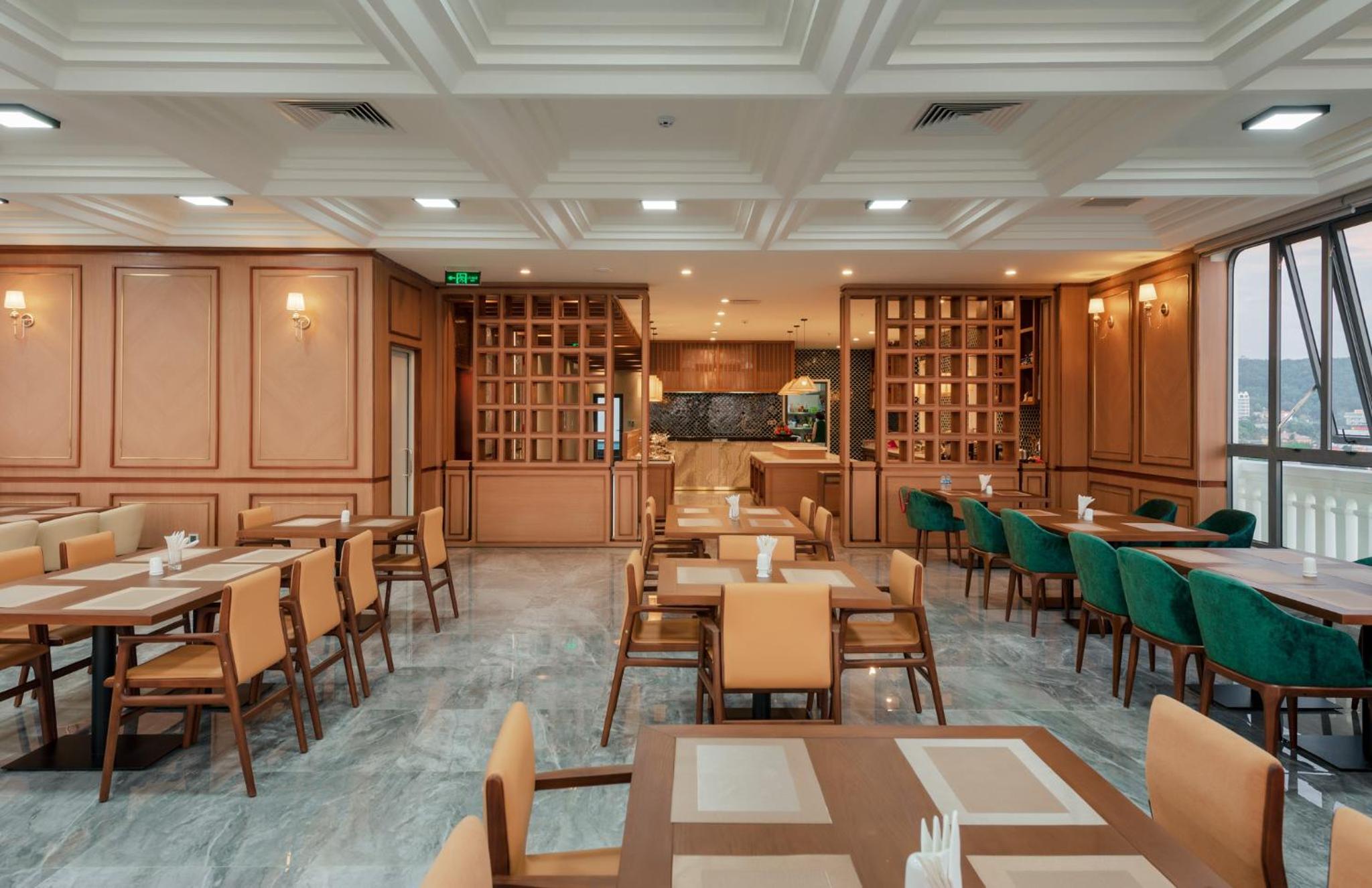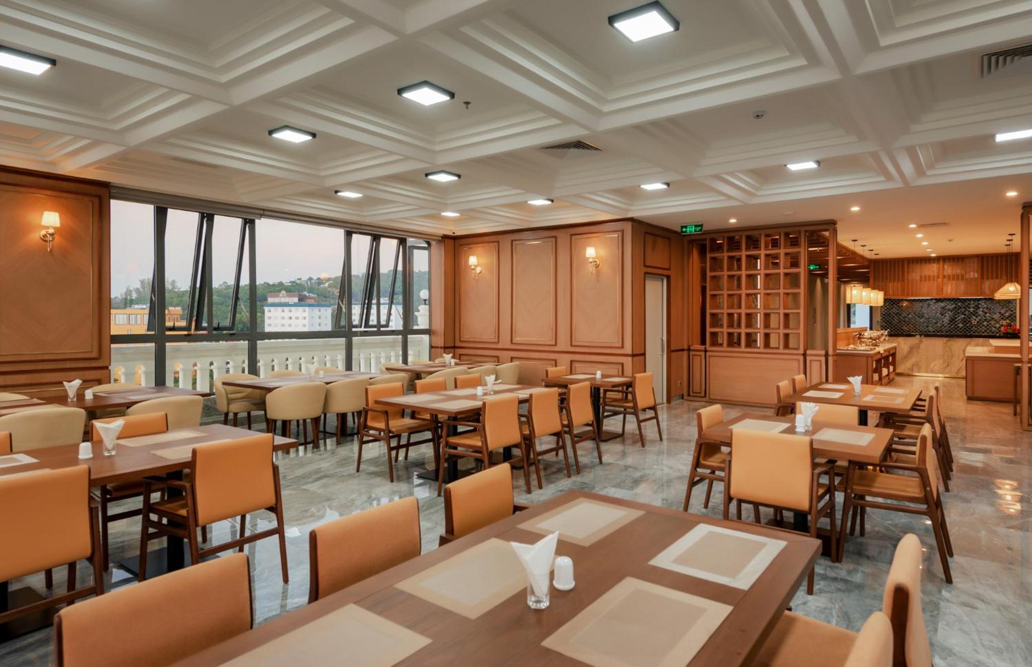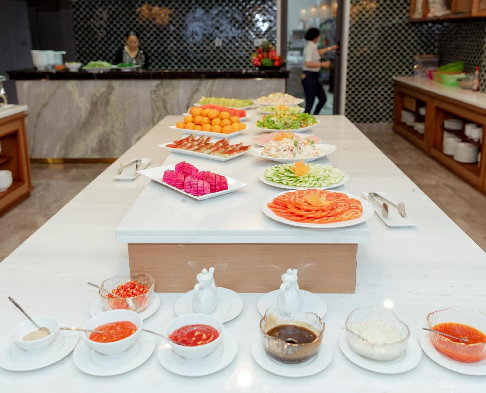 Хороший завтрак с разнообразием блюд, фруктов, выпечки. Хорошее расположение в центре города Дуонг Донг с доступностью к магазинам и ресторанам.