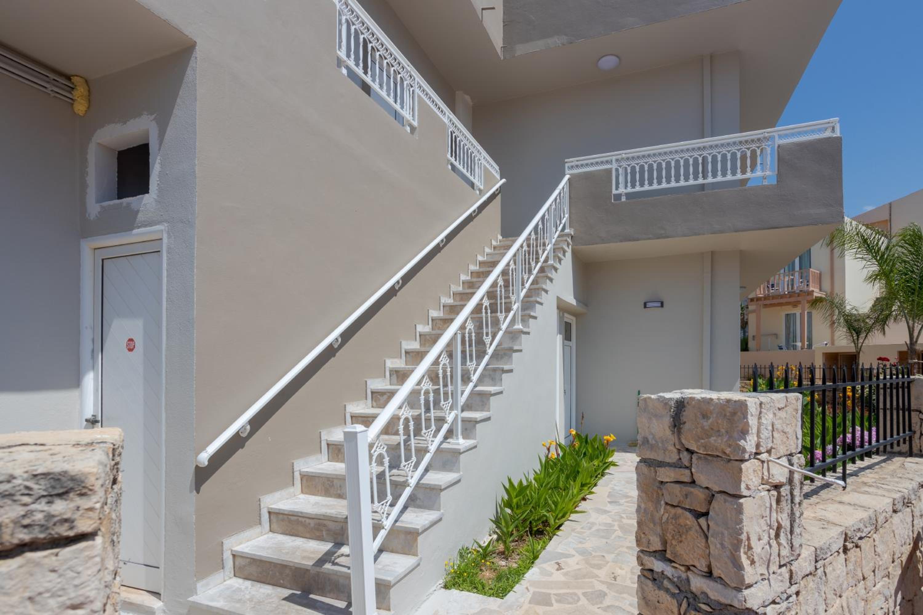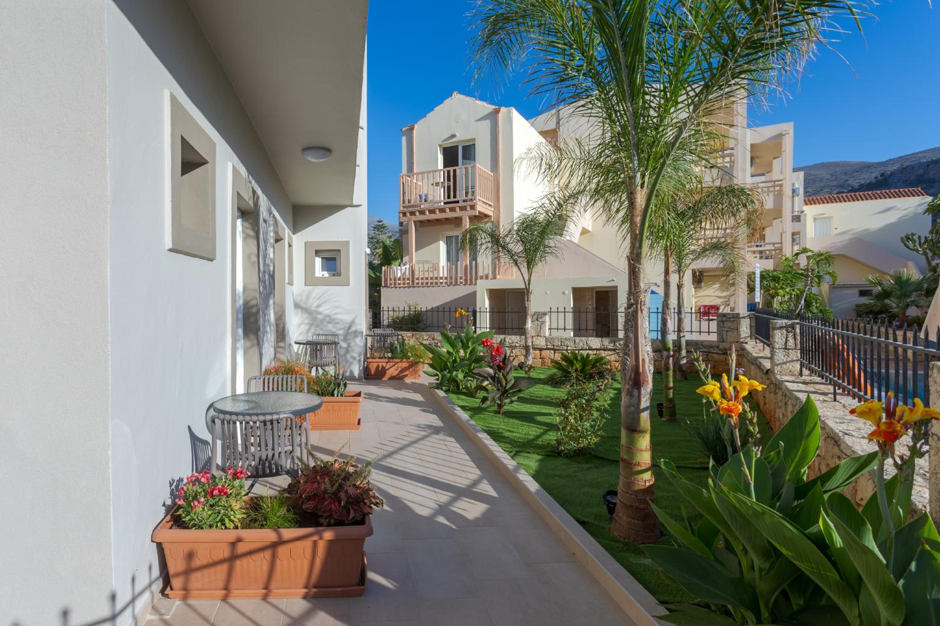 Guests can unwind by the outdoor swimming pool or take a leisurely stroll in the well-maintained garden at Amara Seaside by Estia. The terrace provides a picturesque spot to enjoy the Mediterranean sunsets, creating unforgettable memories for visitors.