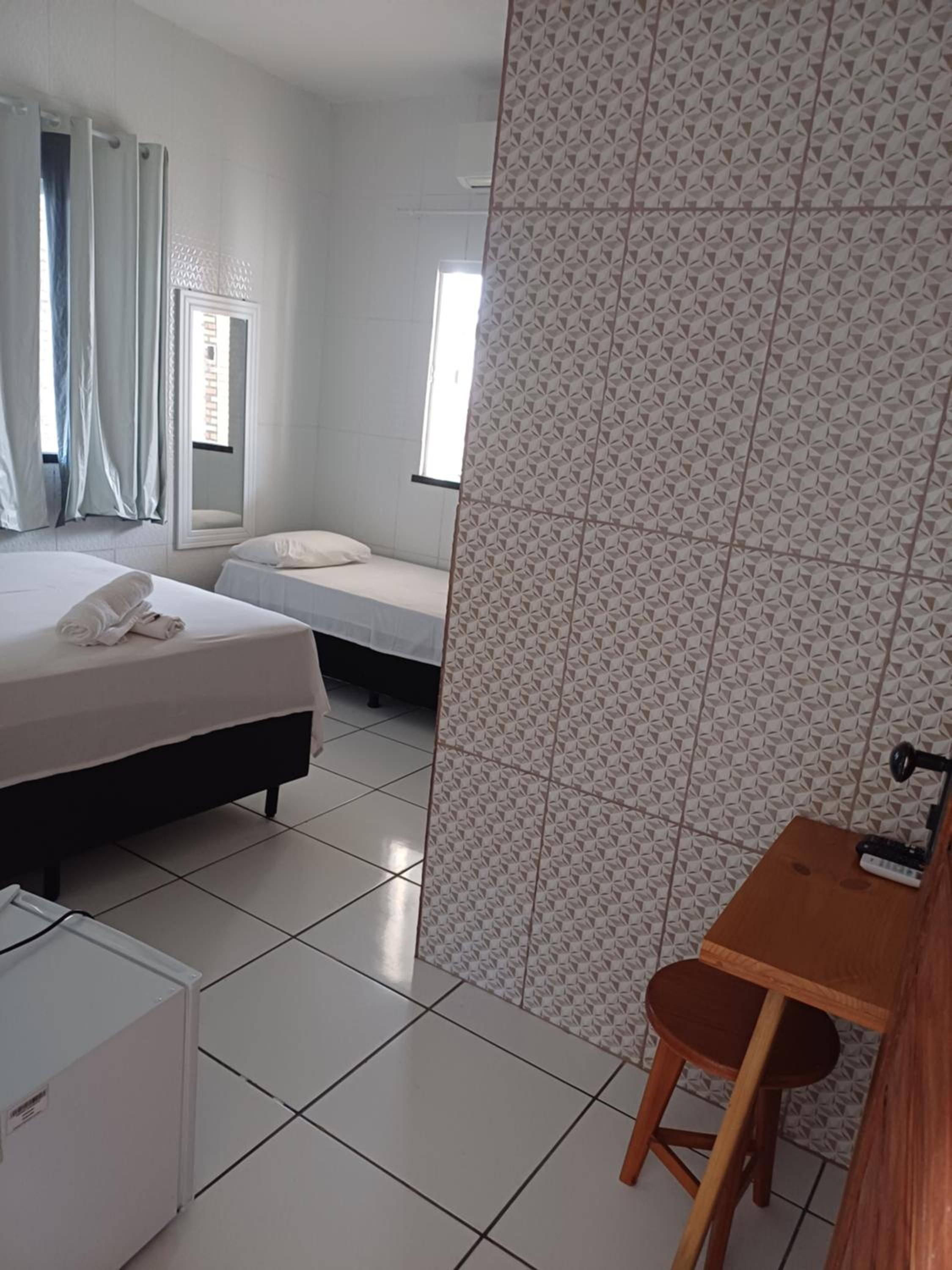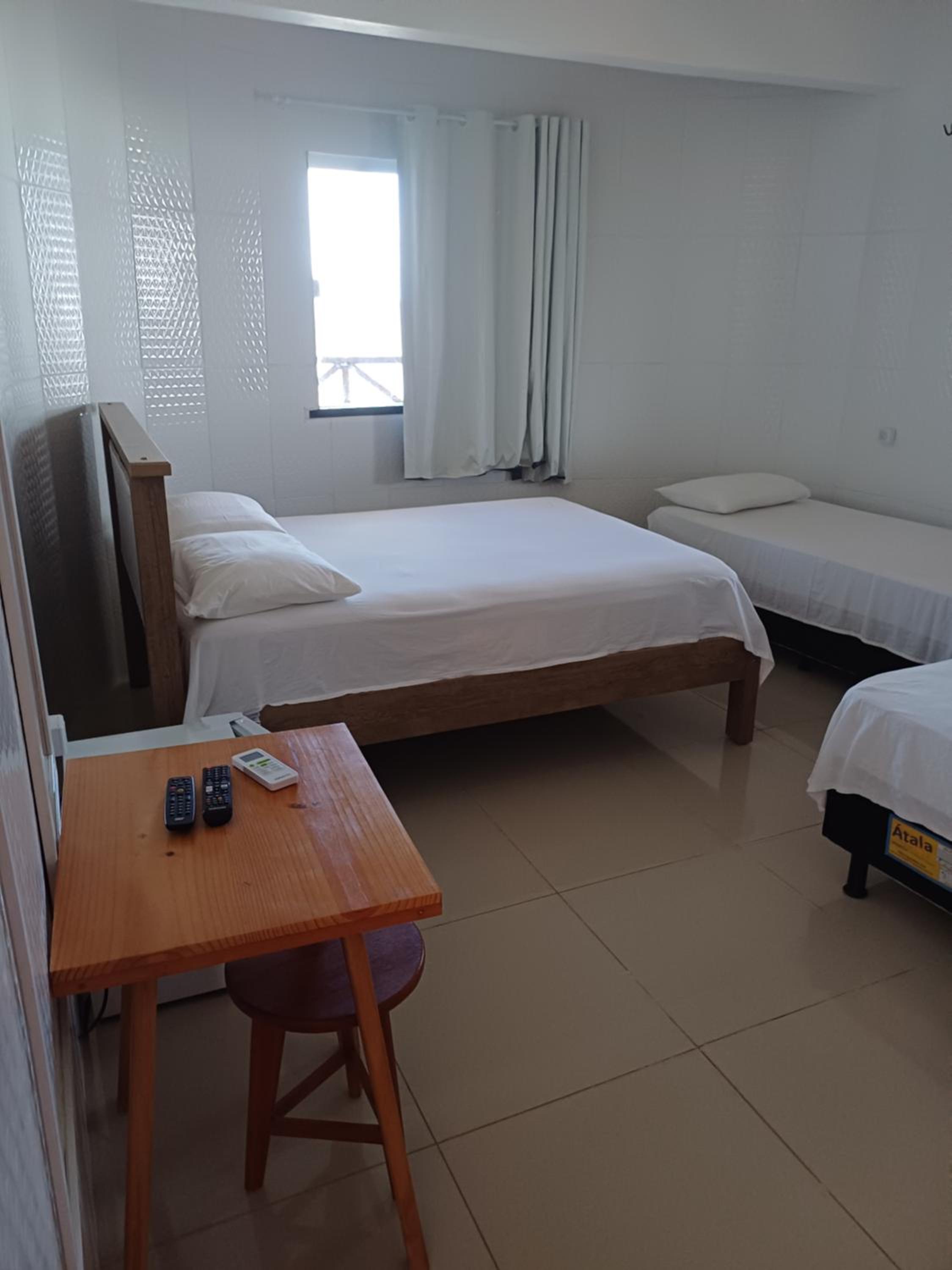 Sentimos Falta de cabideiro ou prateleiras pra organizar as roupas se não tivesse escolhido quarto triplo sendo que era só meu esposo e eu não teria onde colocar as roupas, pois a cama de solteiro deu certo pra acomodar. E o Frigobar estava muito baixo, mas nada que um móvel que o colocasse numa altura ergonomicamente confortável já faria muita diferença.