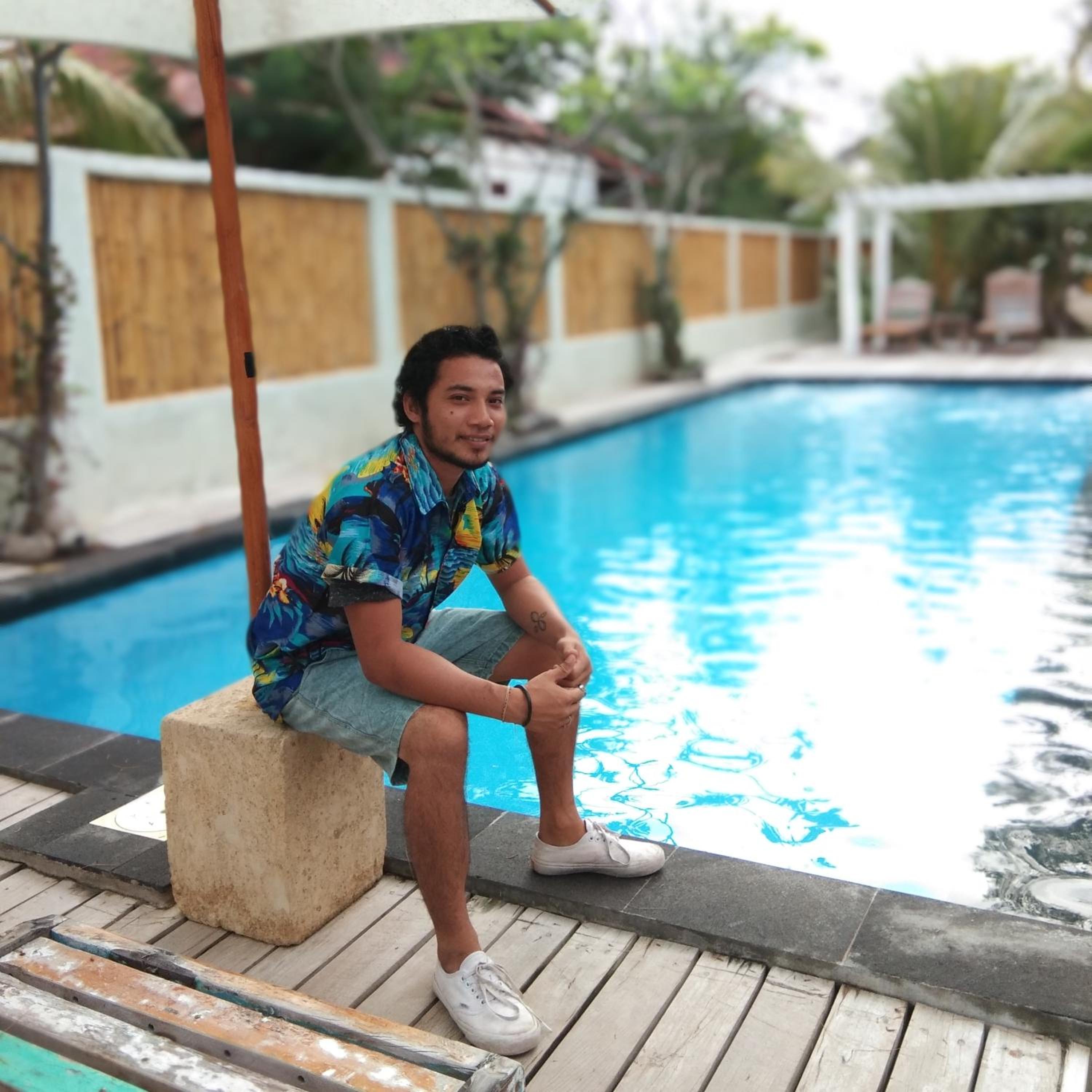 Great beachfront location. Cheap & cheerful. Good sized room with patio, & large bathroom, big clean pool, lovely having breakfast on the beach. Also choose bbq dinner of red snapper, prawns, mahi-mahi, vege sticks. Kamil, & Eggy were the hosts with the most! And Oojuk great service. Loads of bars, massage nearby & Cidomo transport.