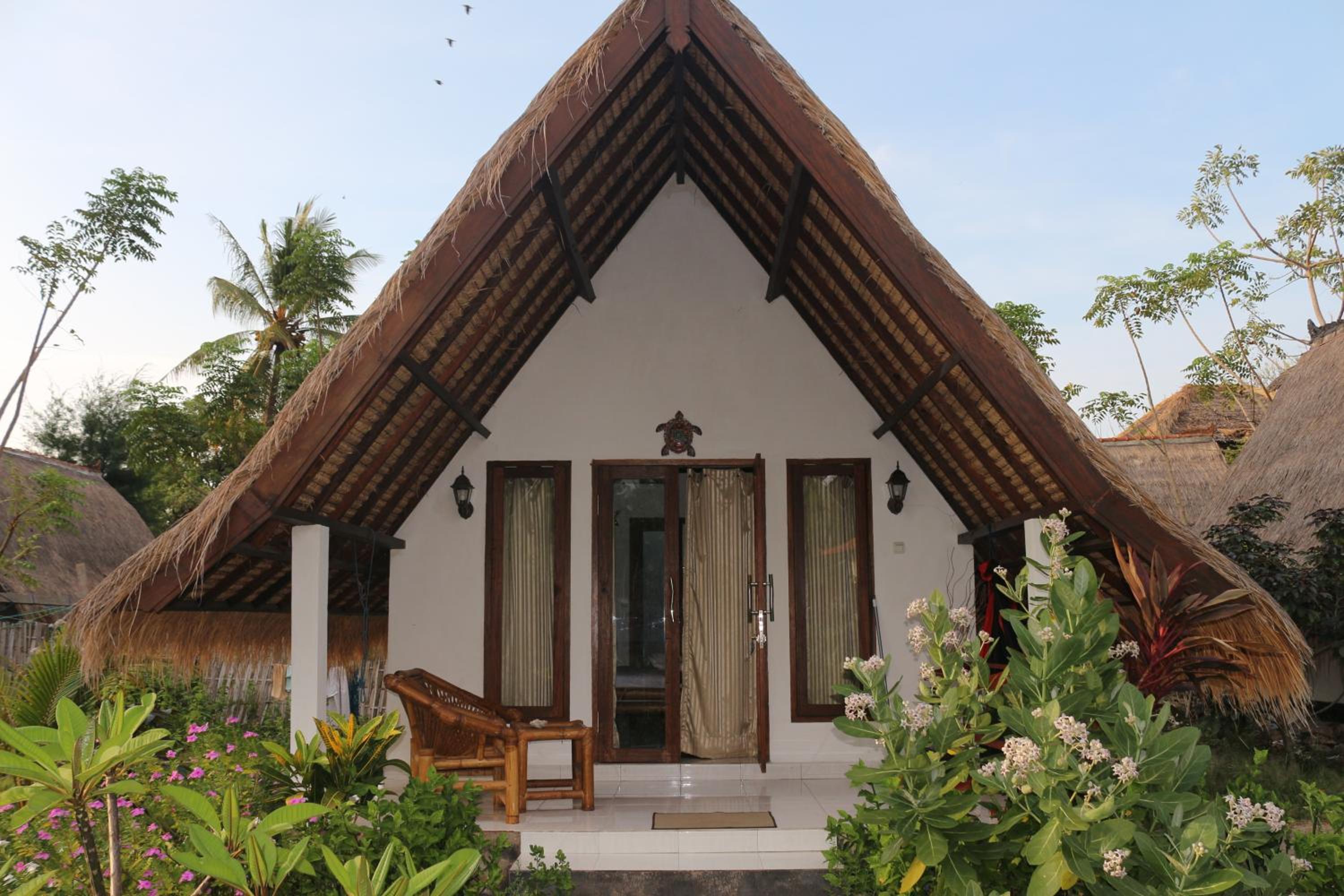 Tropical Oasis: Surrounded by lush tropical gardens, Star Bar and Bungalows offers a serene escape on Gili Air Island. Each unit boasts a private terrace with stunning views of the sea, perfect for relaxing and taking in the natural beauty.
