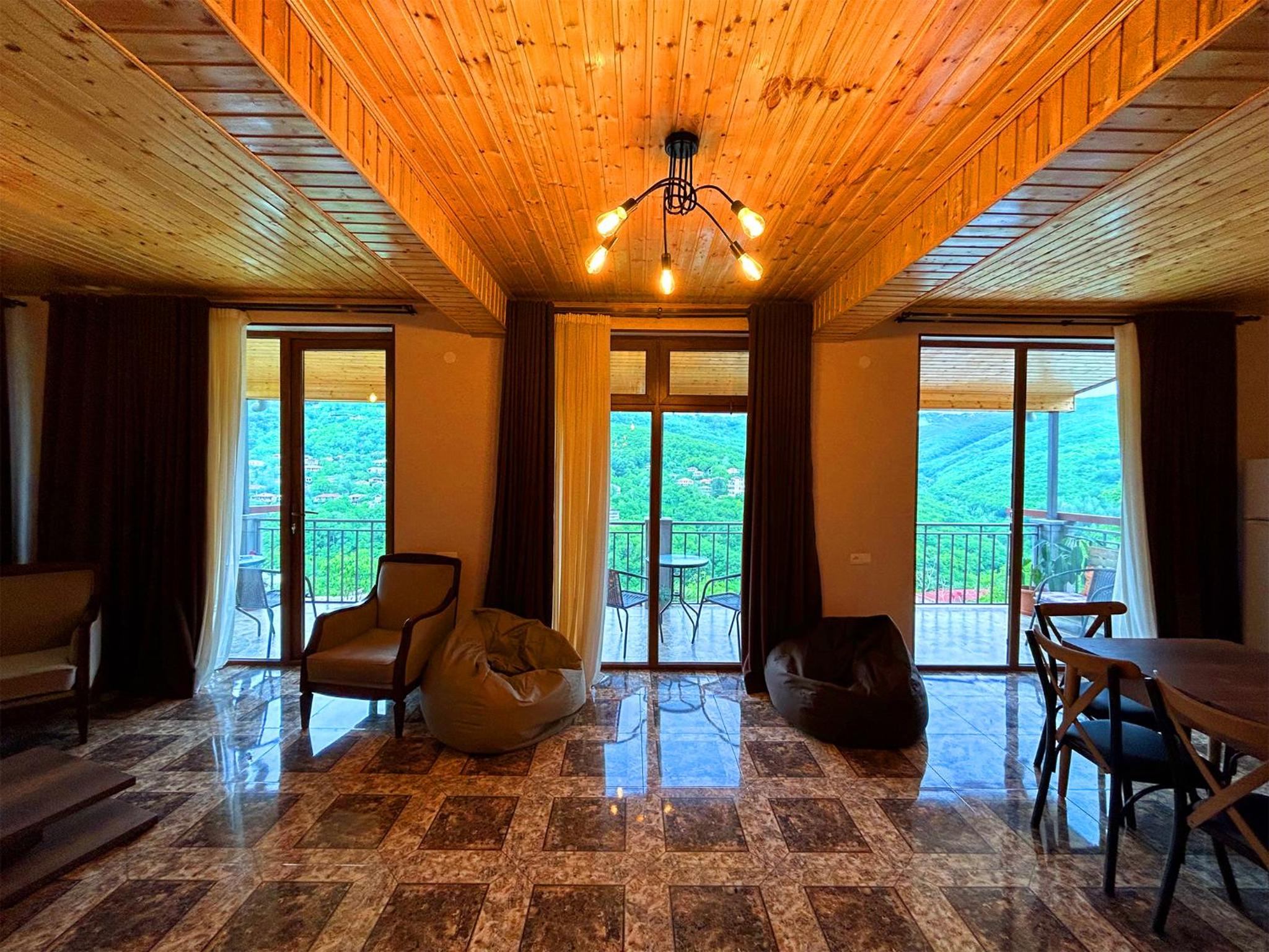 Fantastic view from terrace. Lovely friendly hosts who went out their way to assist us. There was a very bad thunderstorm one evening and the hosts were concerned about us and came to collect us from the restaurant. So kind. True Georgian hospitality.