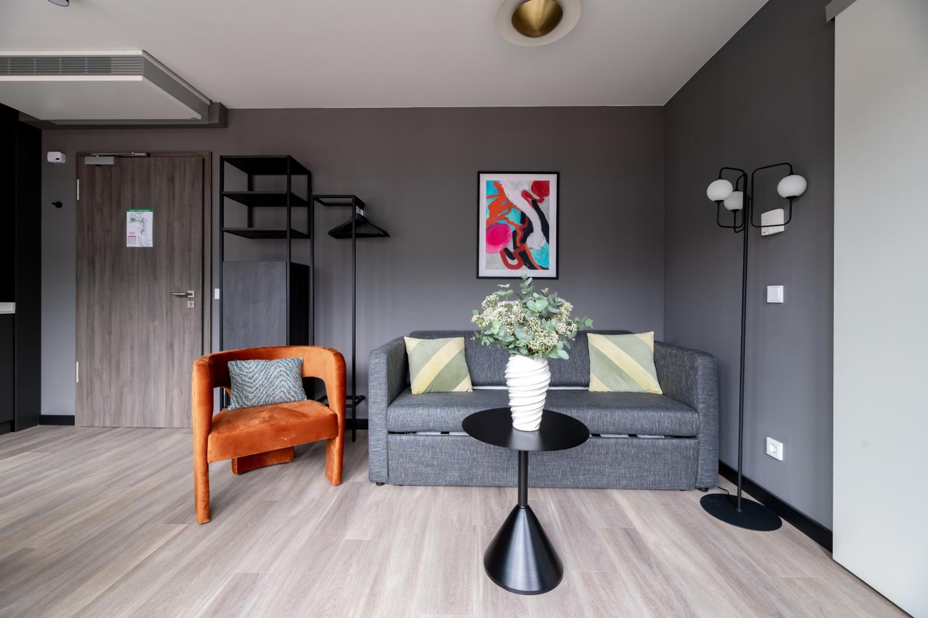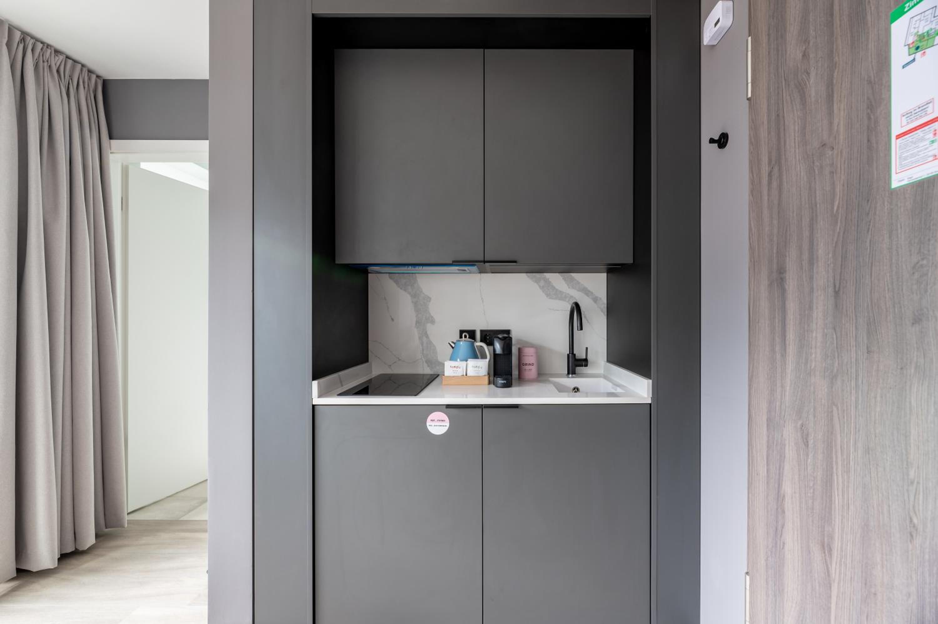 Convenient Amenities: Numa l Saga Apartments offers free WiFi, kitchenette with stovetop, minibar, and kitchenware. Air-conditioned units come with a coffee machine, microwave, fridge, safety deposit box, and flat-screen TV.