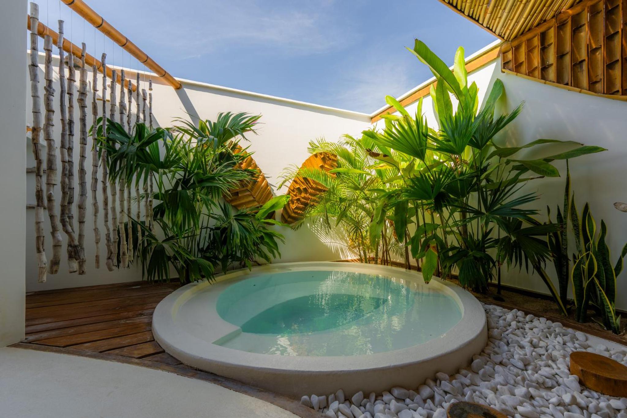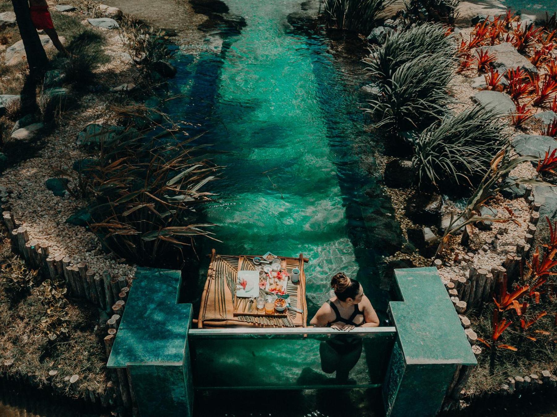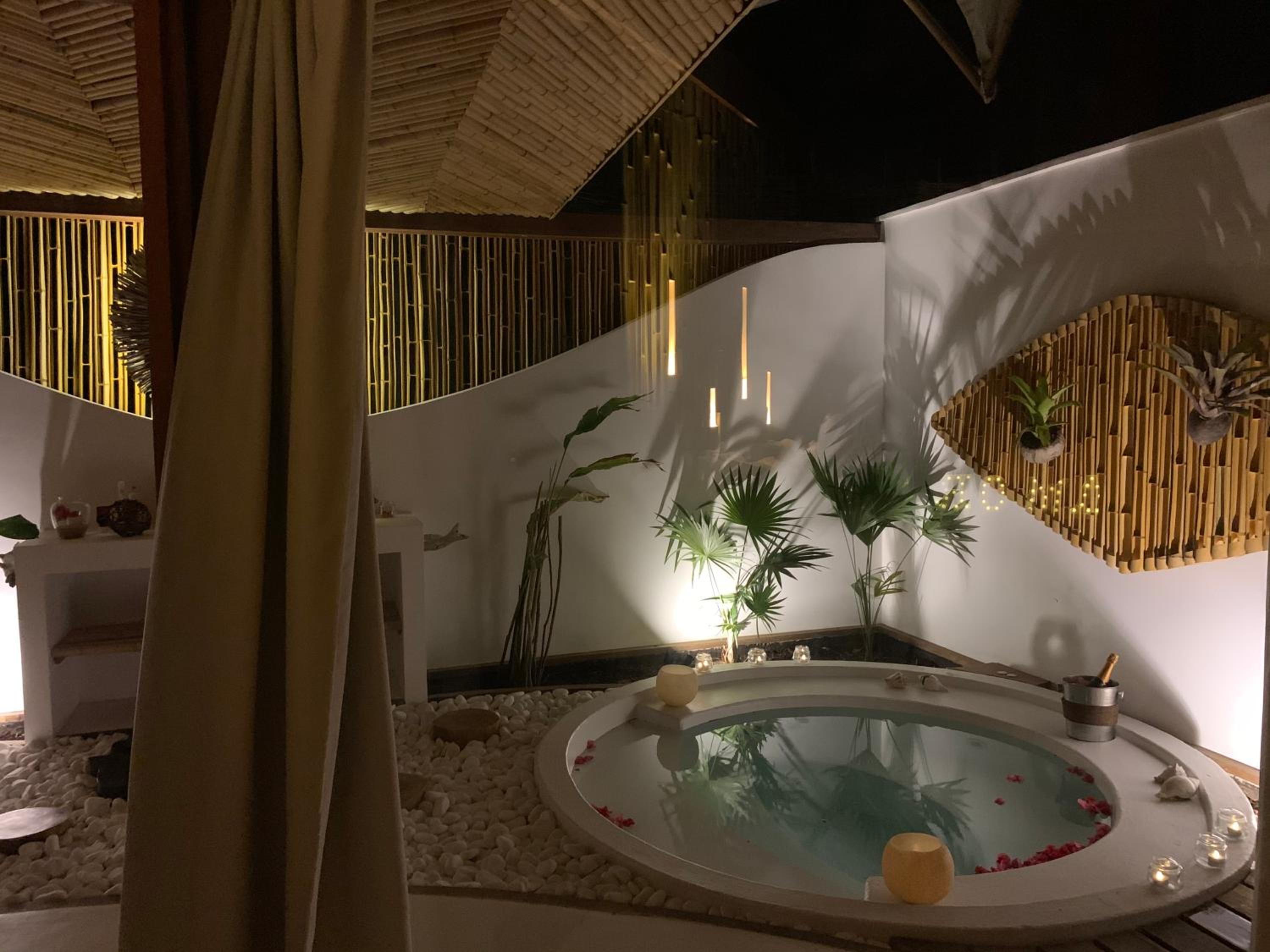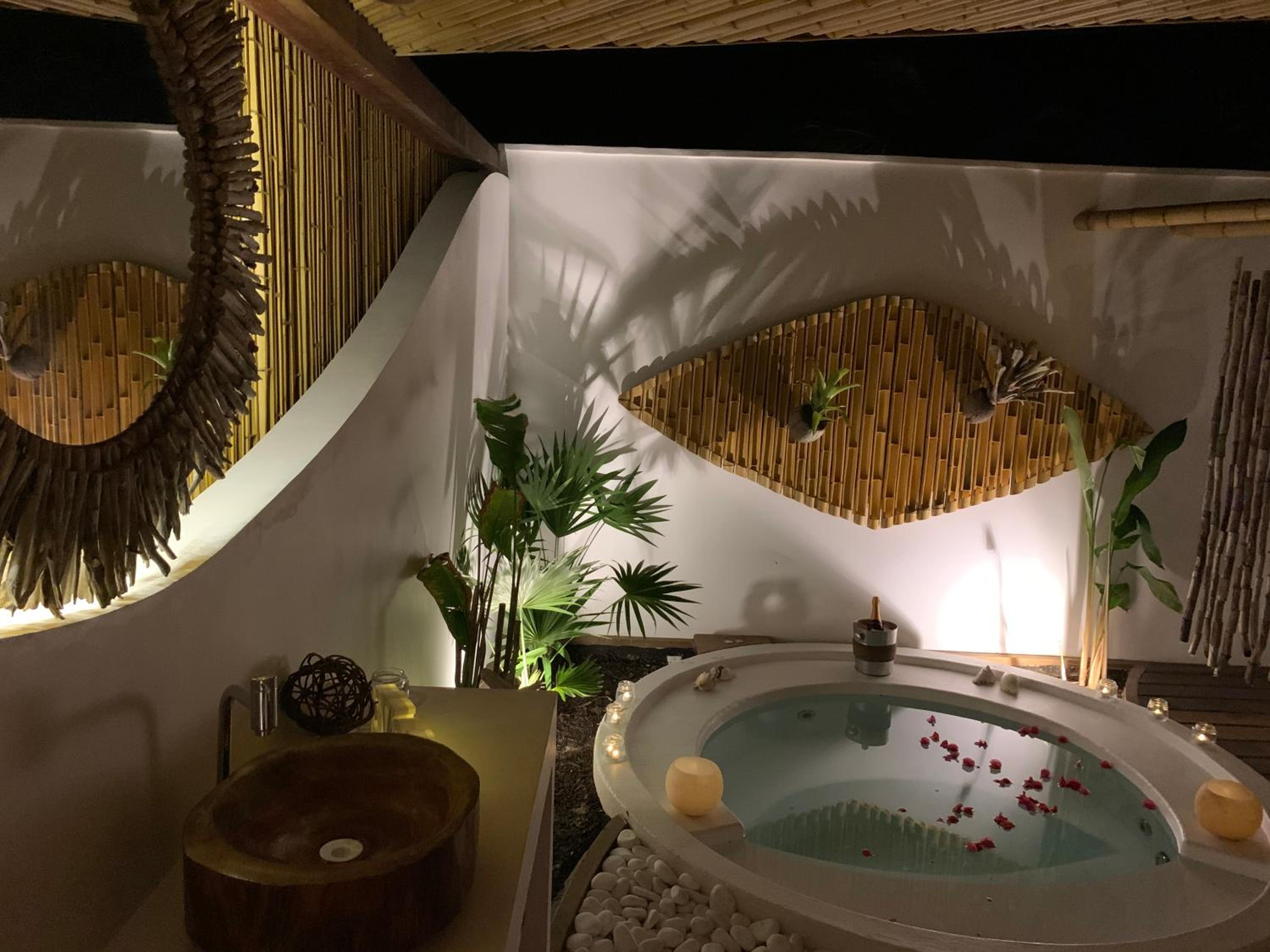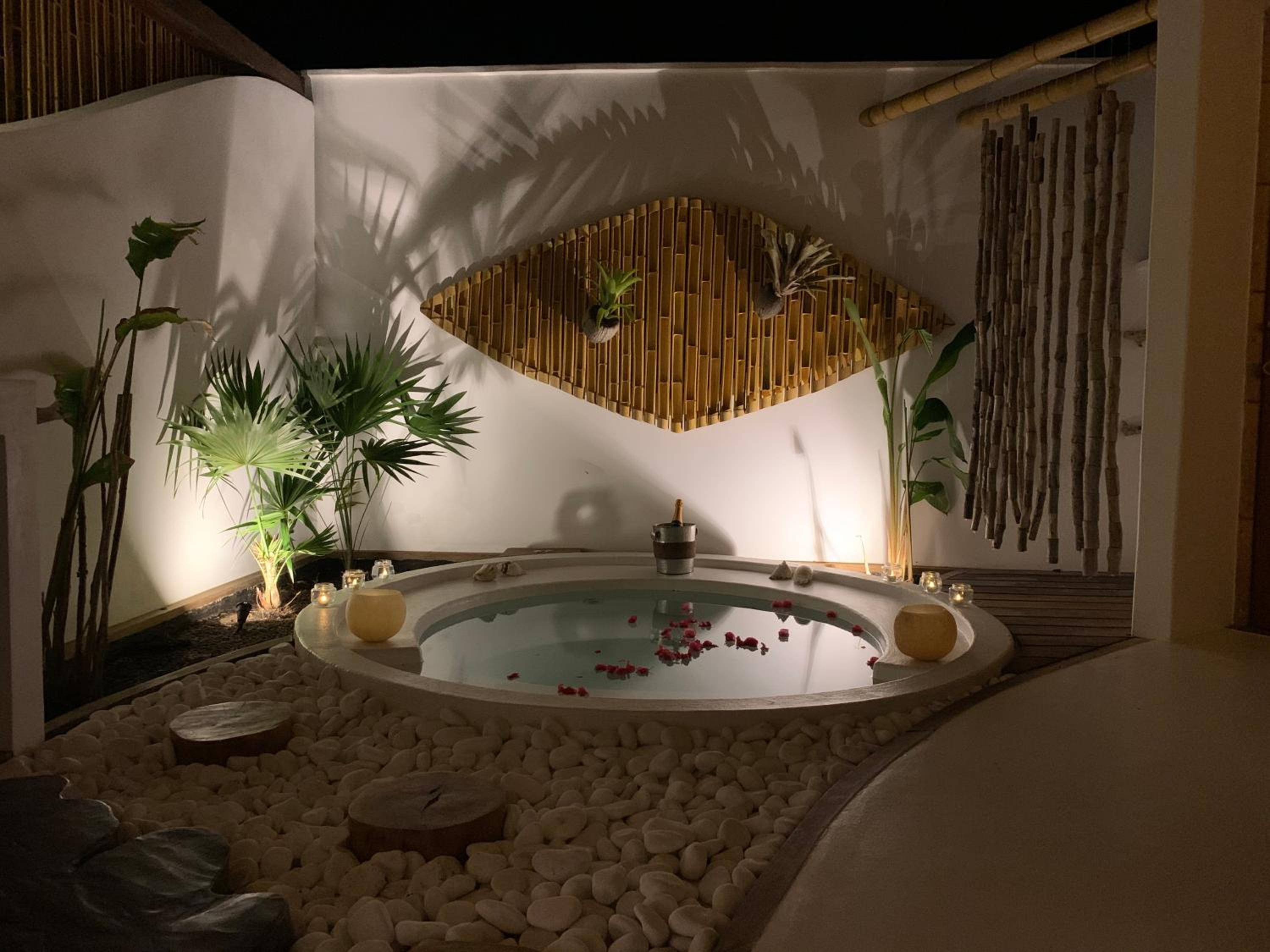 Design of the place is special and spectacular. staff is friendly and helpful, food is very delicious. Well trained masseuse in charming massage spot. Safe ! setting is incredibly beautiful. well kept property . The most beautiful pool I have ever seen and been inside of.