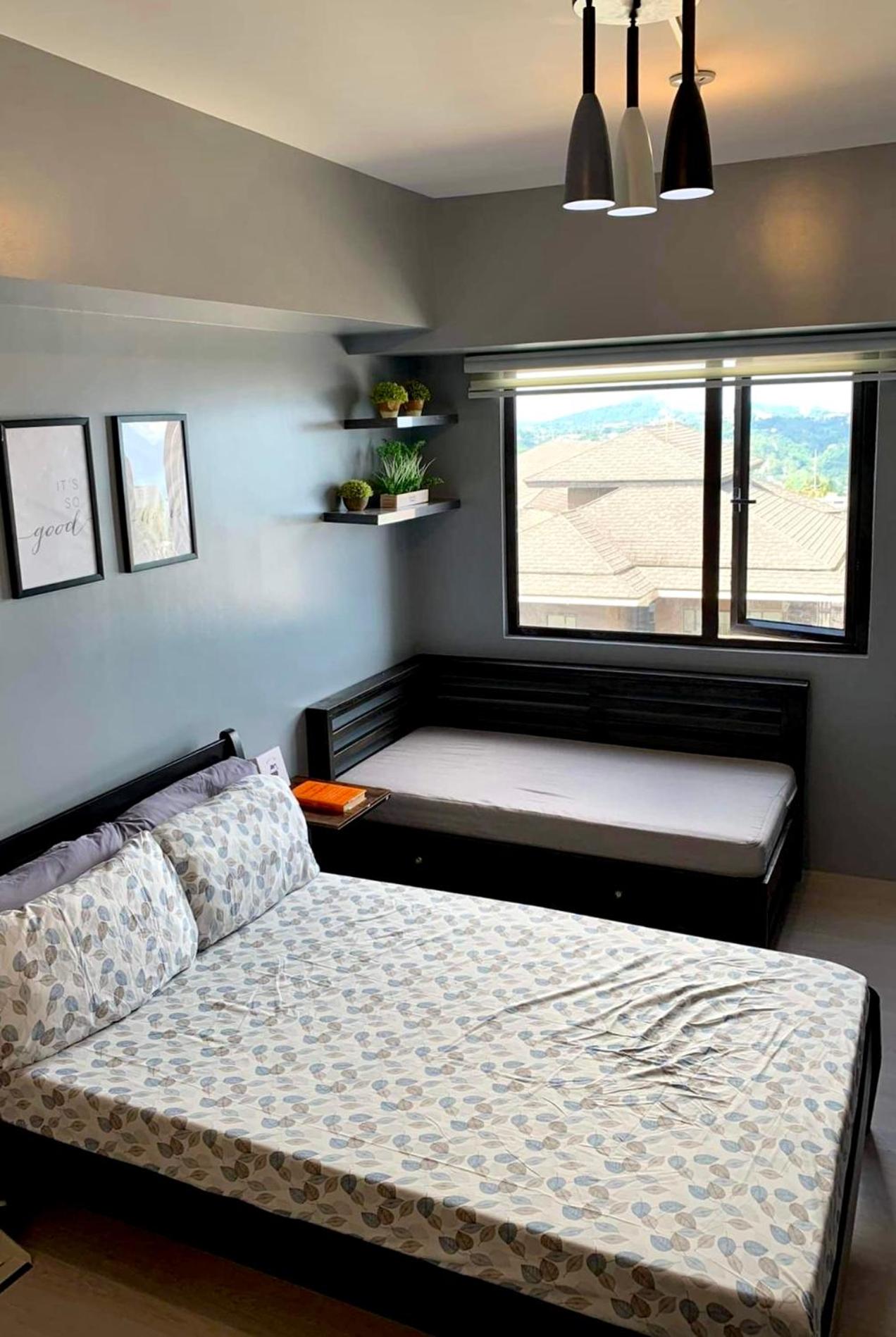 Enjoy stunning city views and serene lake views from Nordic Bleu Staycation at Ayala Serin. Relax on the terrace and take in the picturesque surroundings.