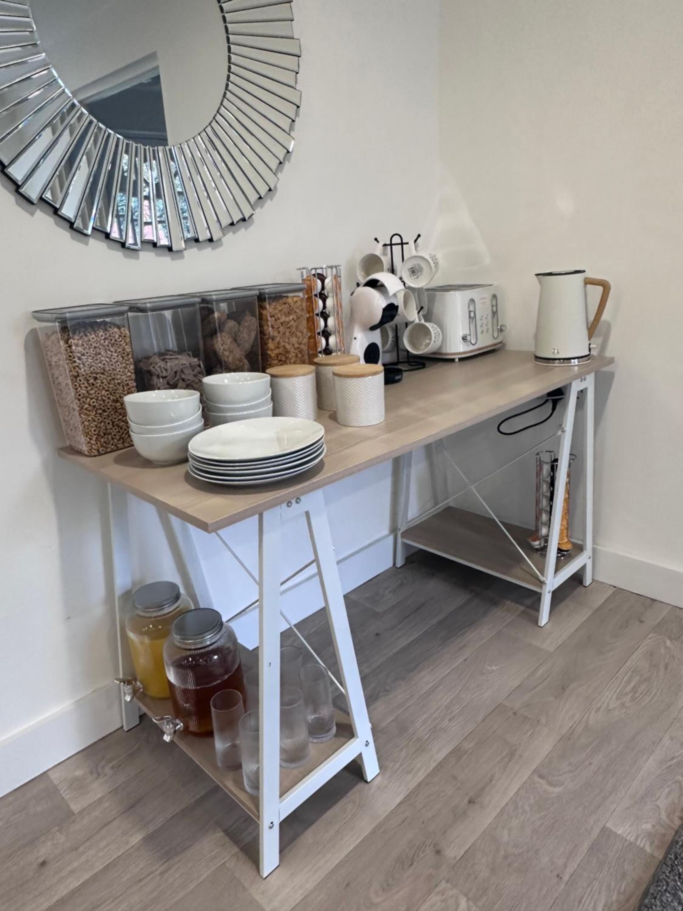 What a fab little gem this place is :-) spotlessly clean, safe, comfortable and warm. Communication with Mark was so easy and nothing was too much trouble. The ‘help yourself’ breakfast buffet was well stocked but there is a microwave, toaster, oven & and fridge in the room.