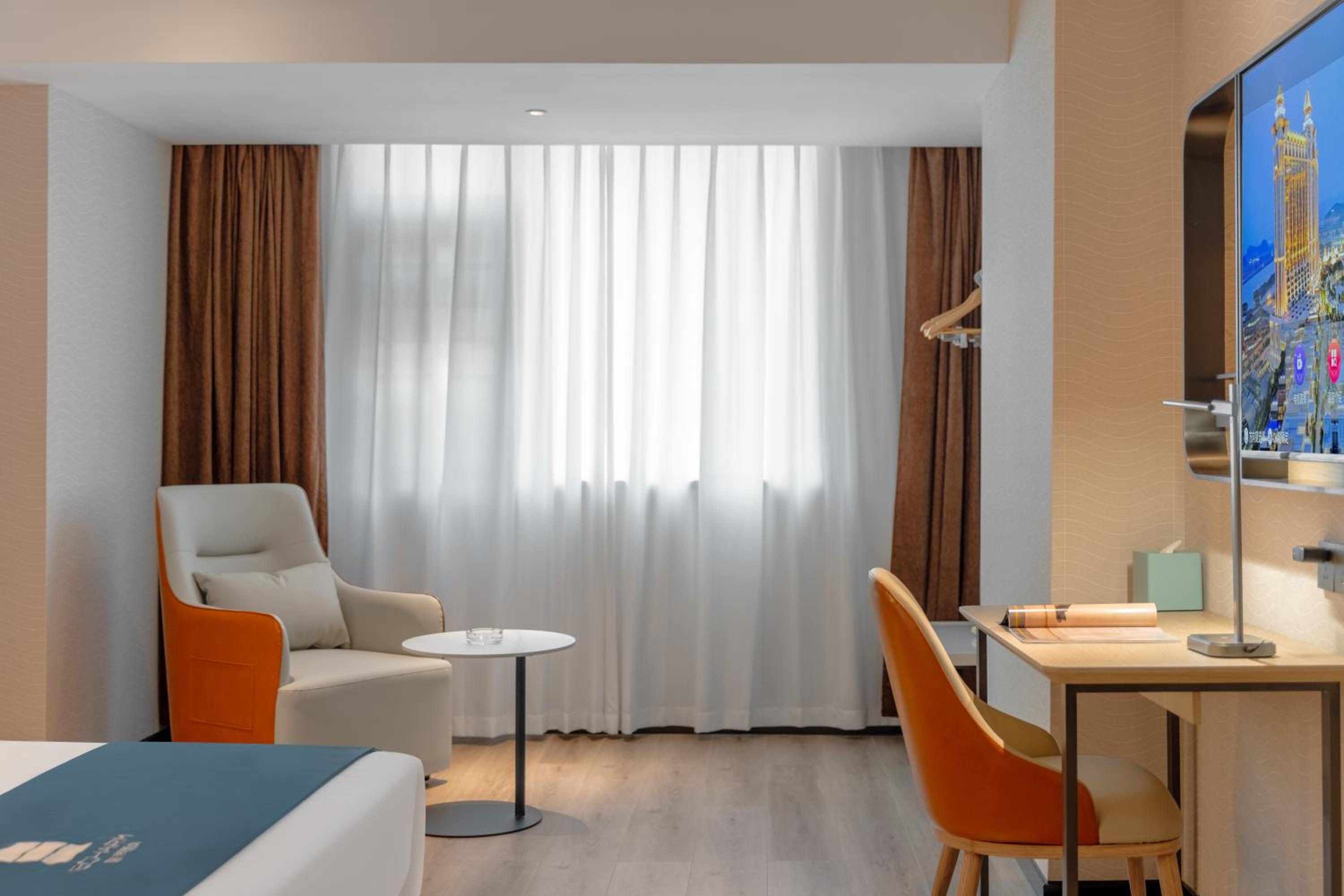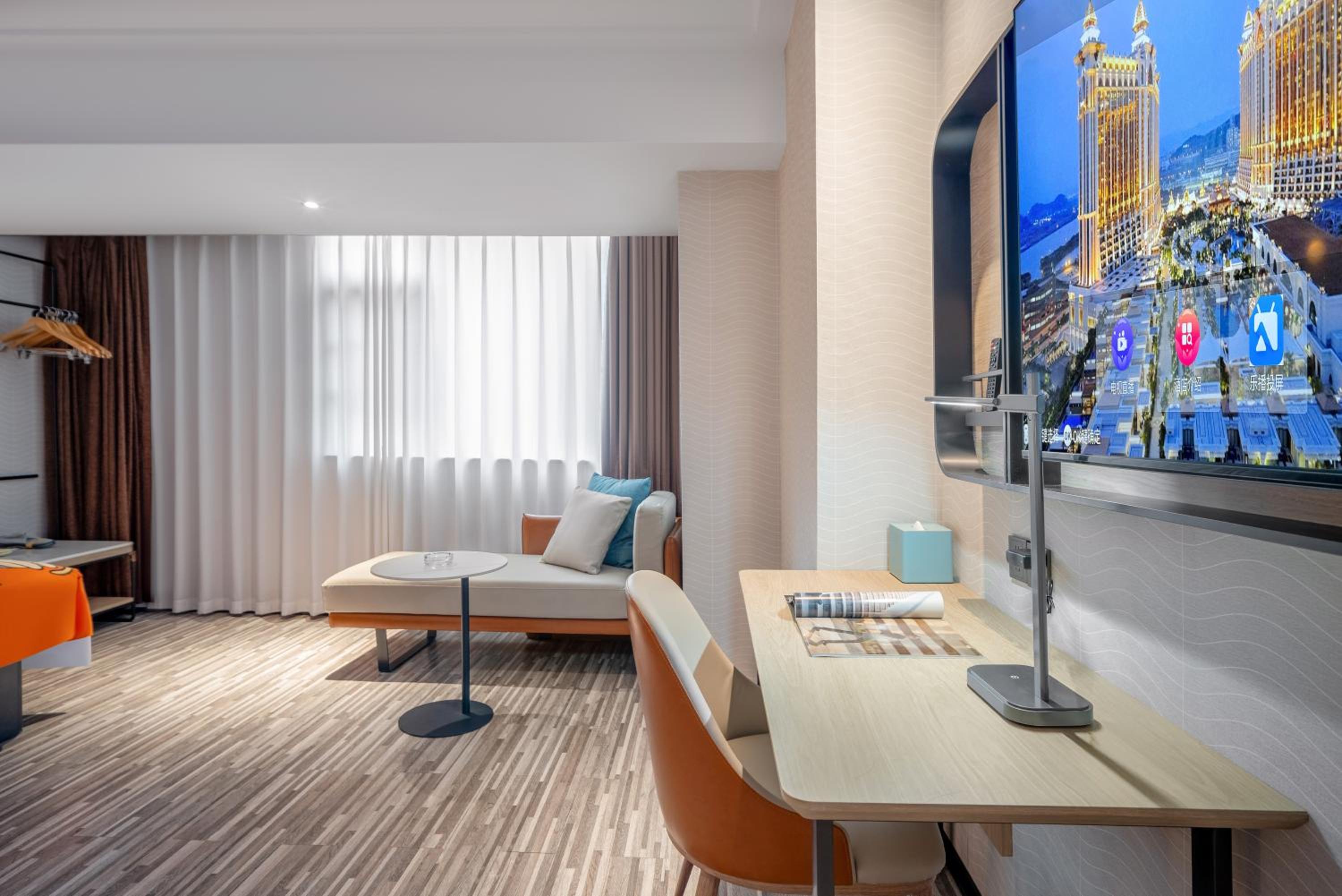 Enjoy stunning city views at Echarm Hotel Changsha High Speed Rail South Station Wujiang Tianjie Branch. Our hotel offers air-conditioned rooms with essential amenities for a comfortable stay, including a microwave and a coffee machine.