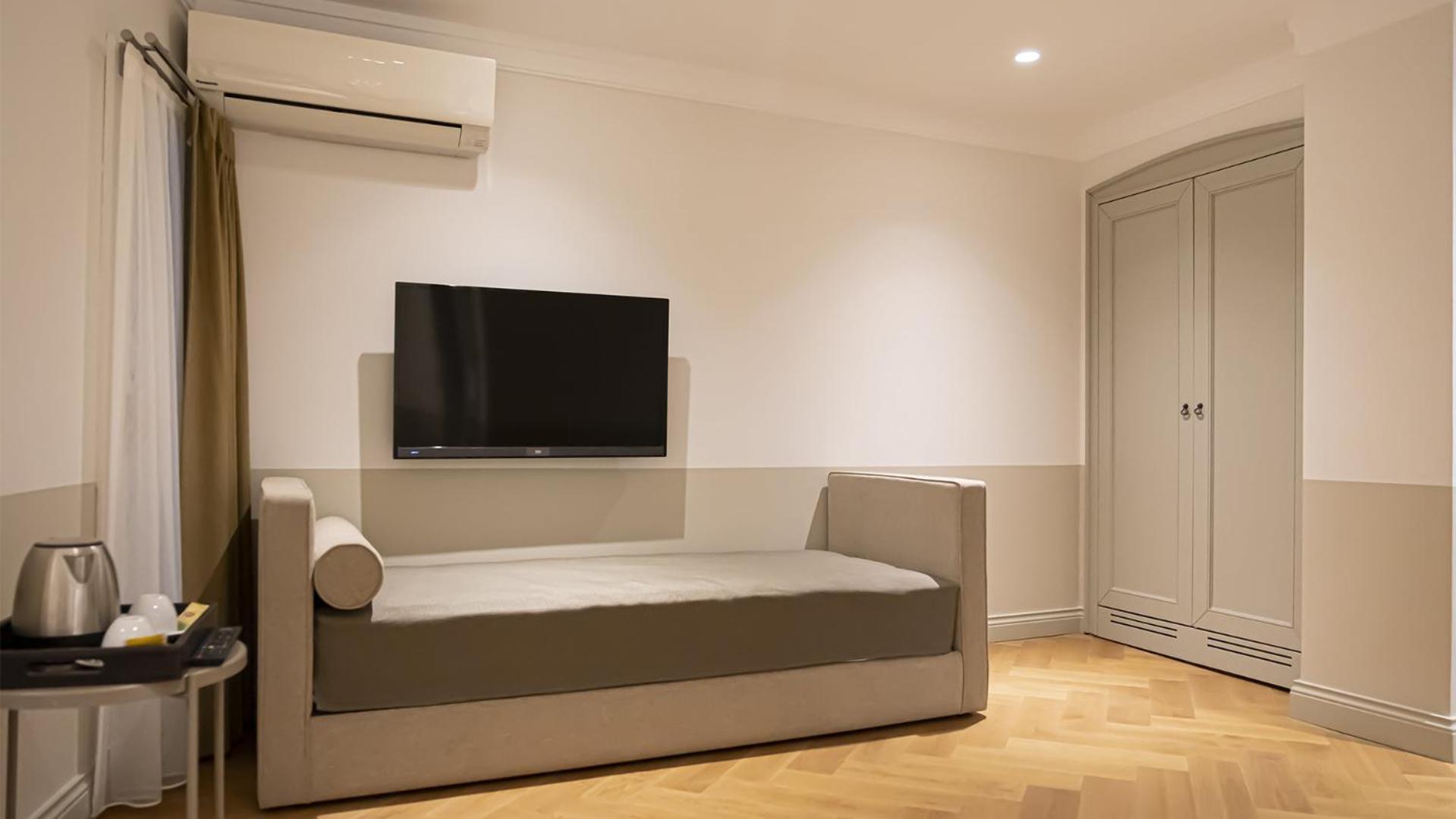 Indulge in comfort with air-conditioned rooms featuring flat-screen TVs, cozy seating areas, and complimentary WiFi. Unwind in style with provided bath robes, slippers, and free toiletries.