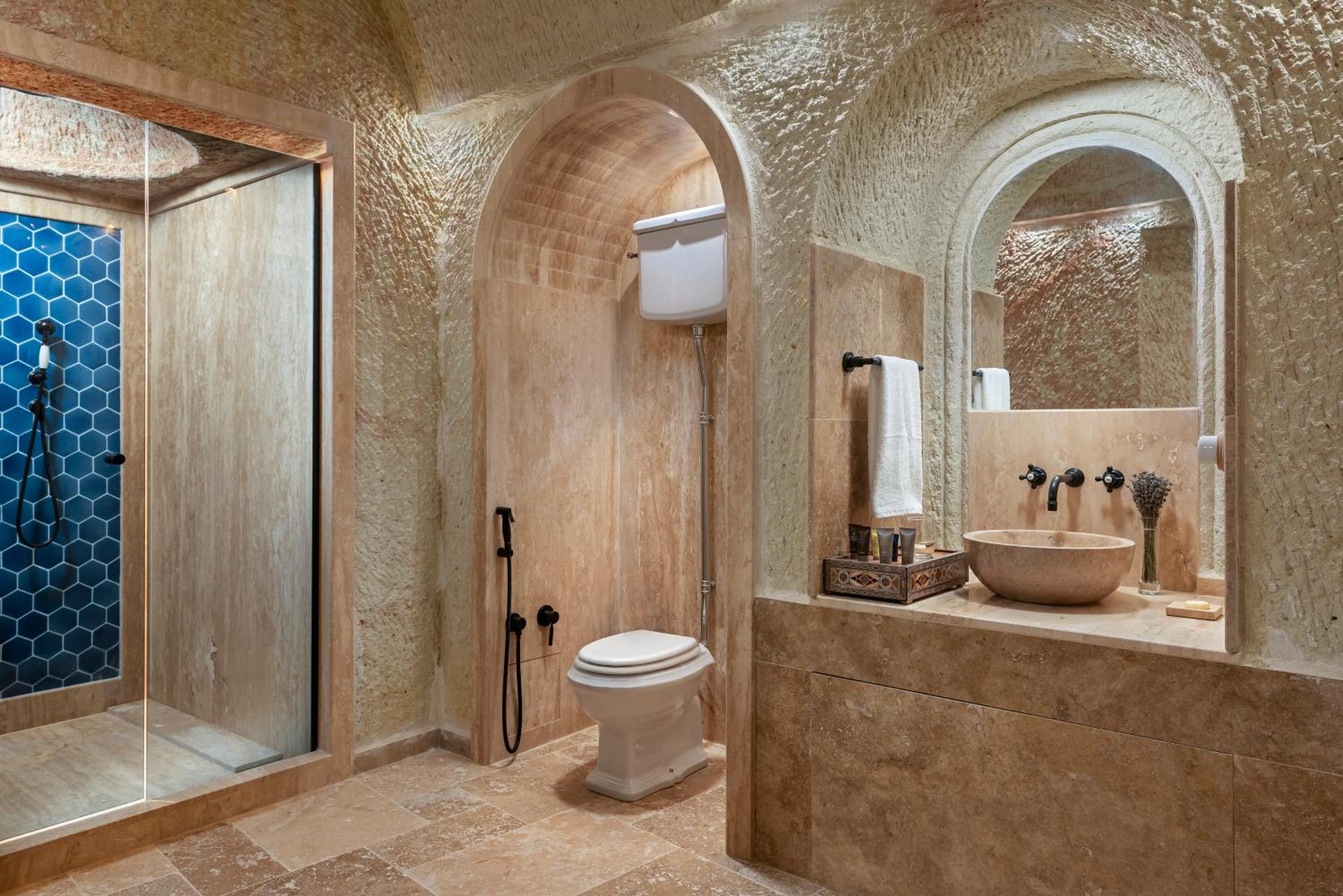 The hotel is located in a very beautiful, calm area – ideal for people who do not wish to stay within the hurly-burly of the otherwise very touristic Cappadocia. Our cave suite was an absolute masterpiece and the attention to detail is unique in many ways. Once can clearly see the owners passion for high quality, craftsmanship and tradition. The restaurant and breakfast are very good and the spa also offers everything one can hope for, although gym amenities might be slightly expanded.