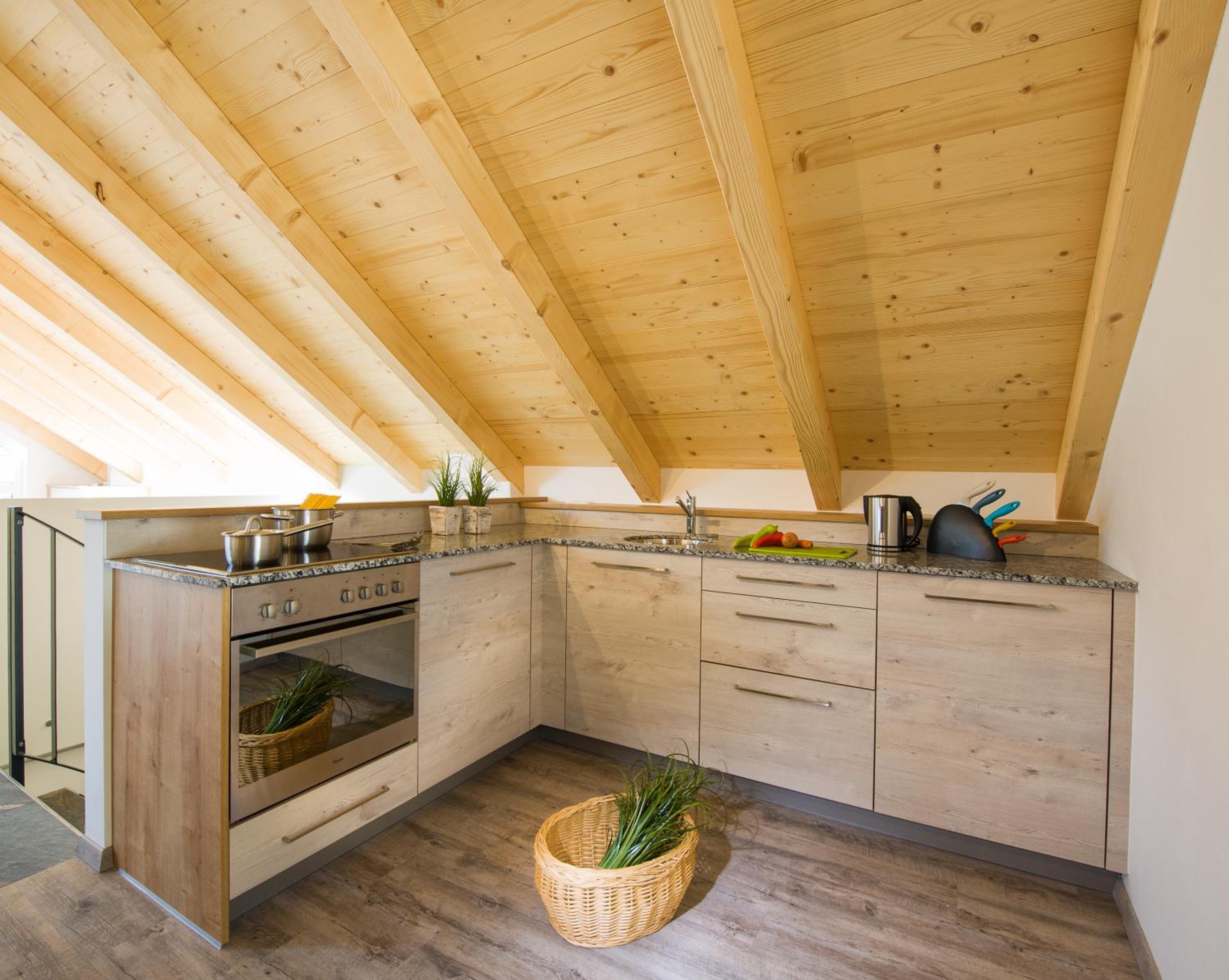 Nackte, kahle Wände, extrem kleiner Fernseher im Esszimmer/Küche, keine Tropftasse für nasse Schuhe (Holzboden!), winziger Vorraum.
