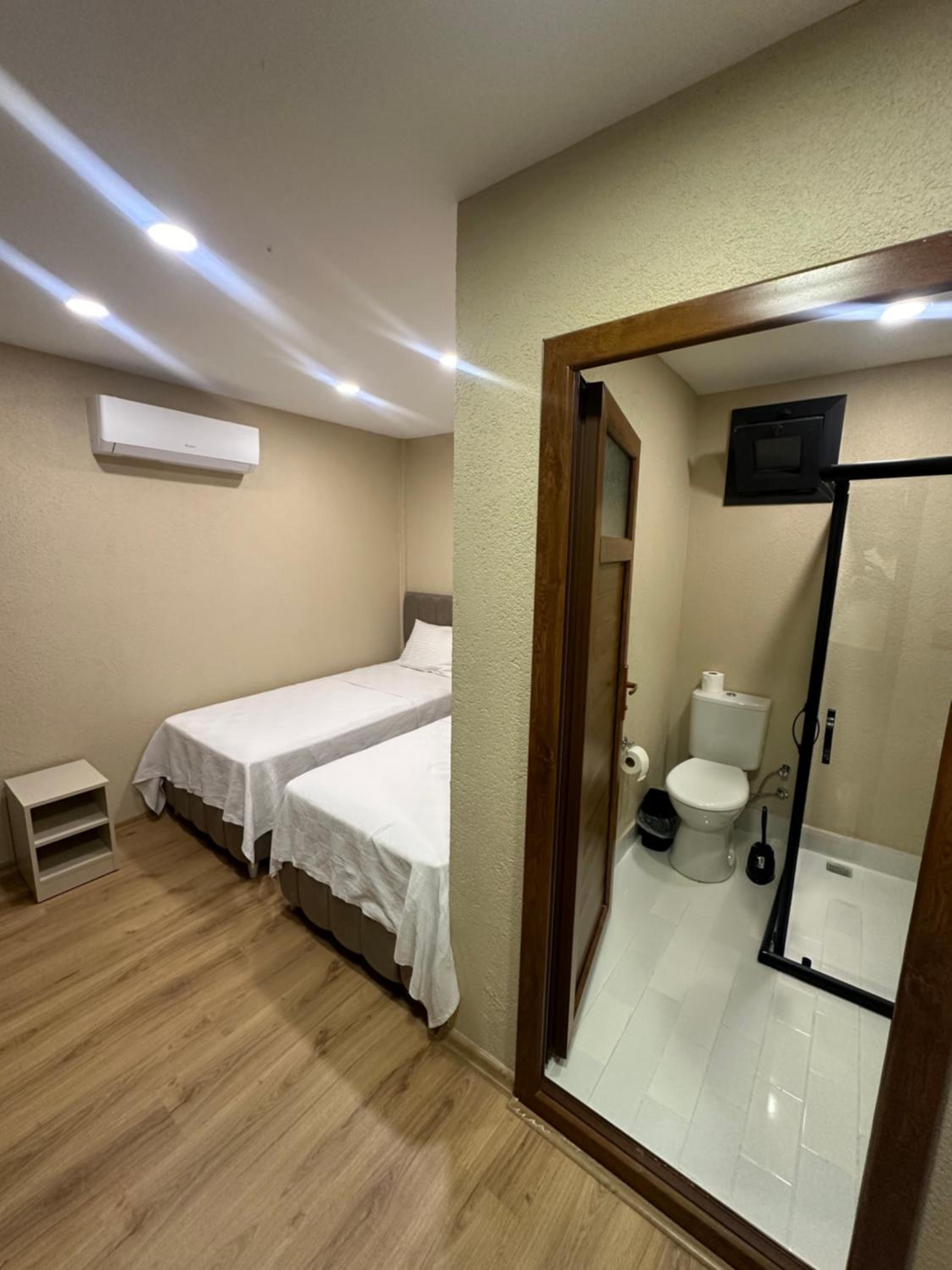 Hotel is recently opened, clean. Very supportive personnel, including the owner, who speaks English. Although the location is not in the city center, taking into account the construction in Antakya, the hotel area is outside of dust and noise. The one floor buildings made more secure feeling in case of another earthquake. Good wi-fi.