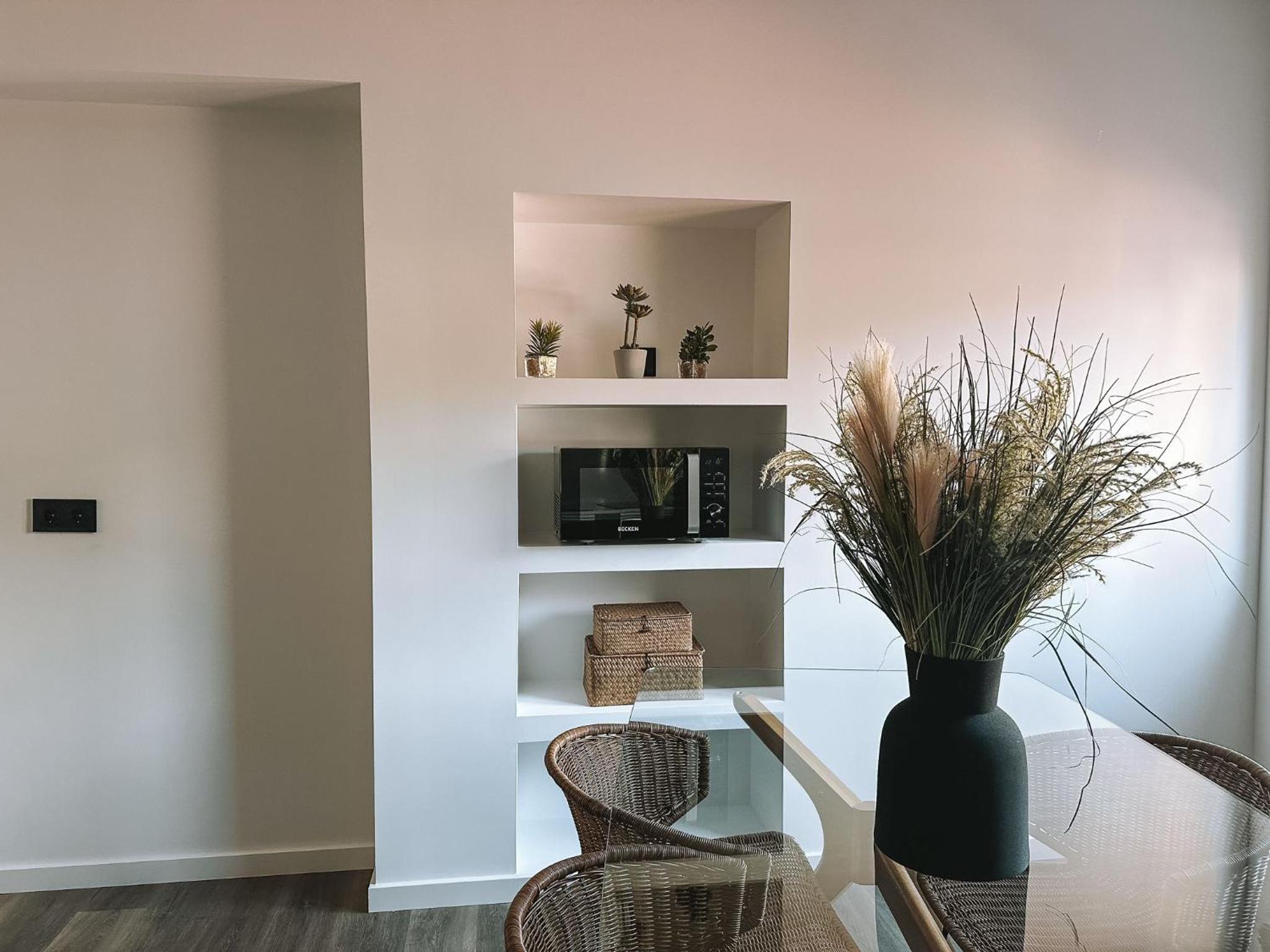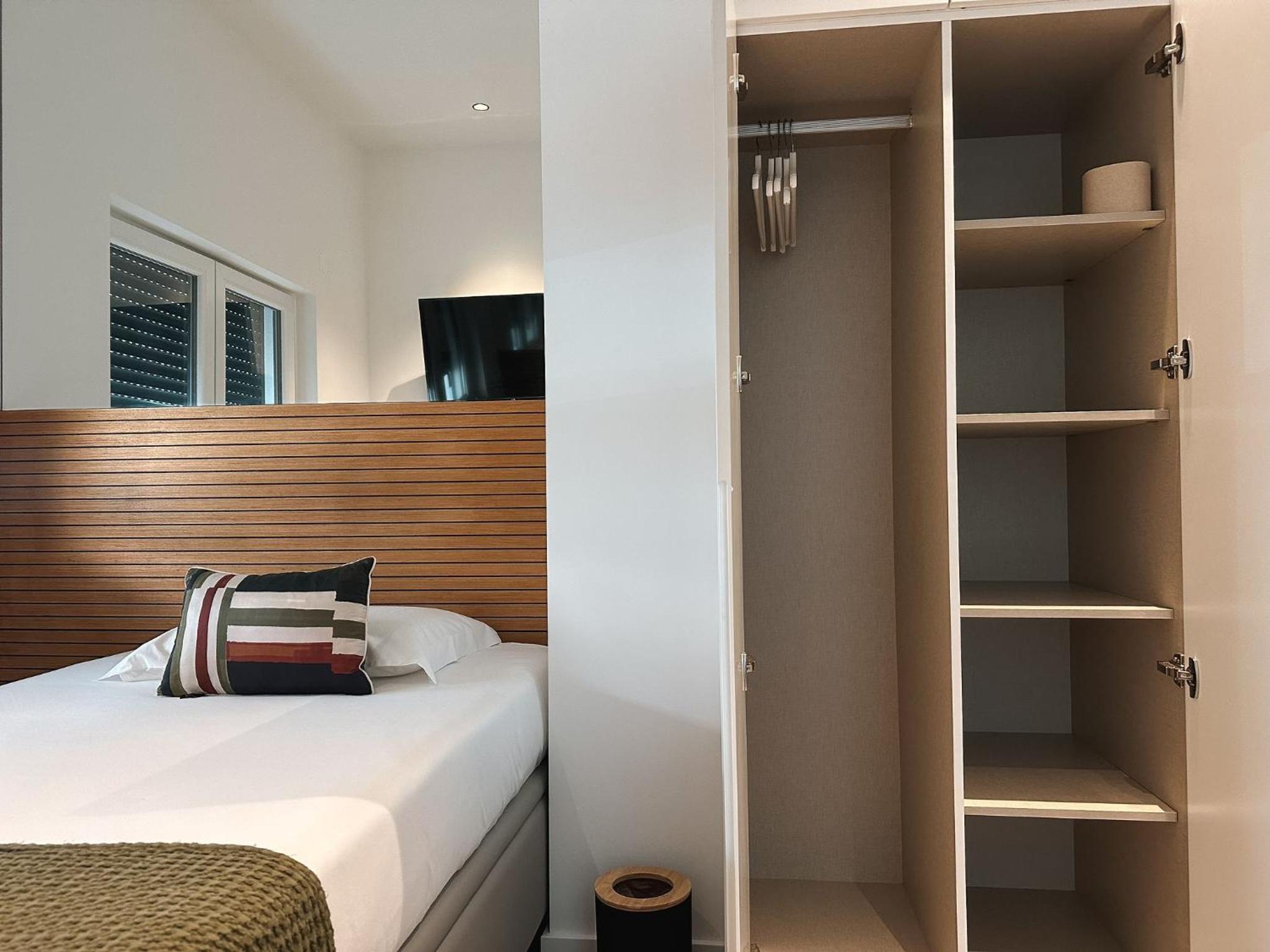 Acolhedor, bastante cómodo e com muitos arrumos.