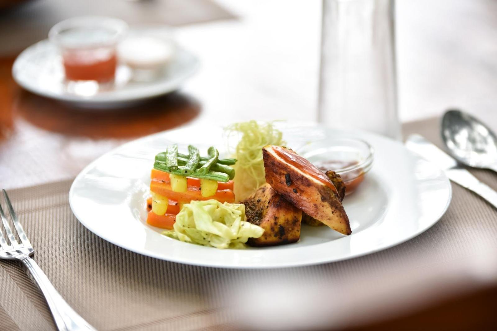 The hotel boasts an outdoor swimming pool surrounded by lush greenery, providing a perfect spot for relaxation and leisure. Guests can also explore the garden area or unwind on the terrace while soaking in the tranquil atmosphere.