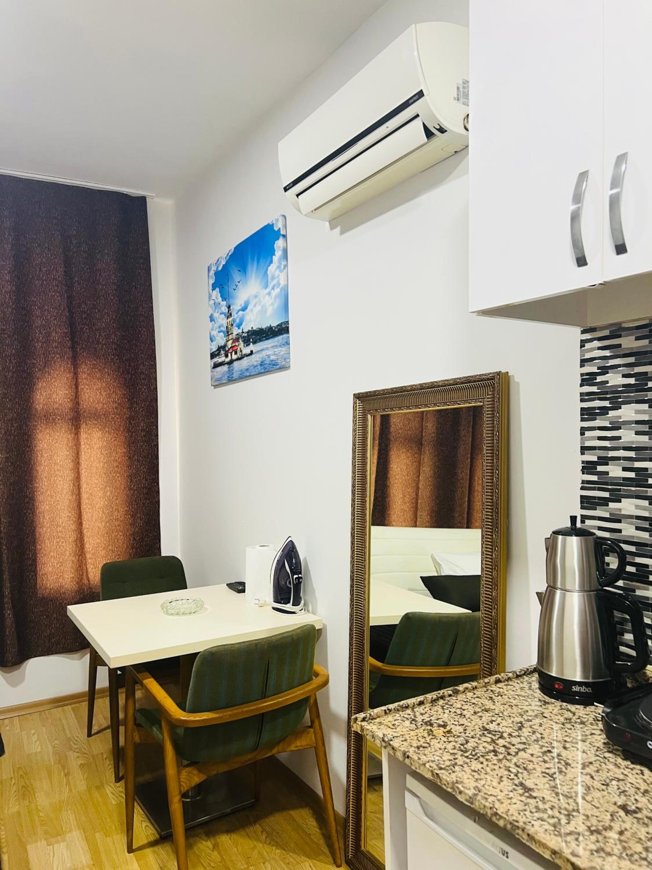 Each unit at Red House Fatih is thoughtfully equipped with modern amenities to ensure a comfortable stay. From air conditioning and a flat-screen TV to a washing machine and kitchenette, we've got everything you need for a relaxing visit.