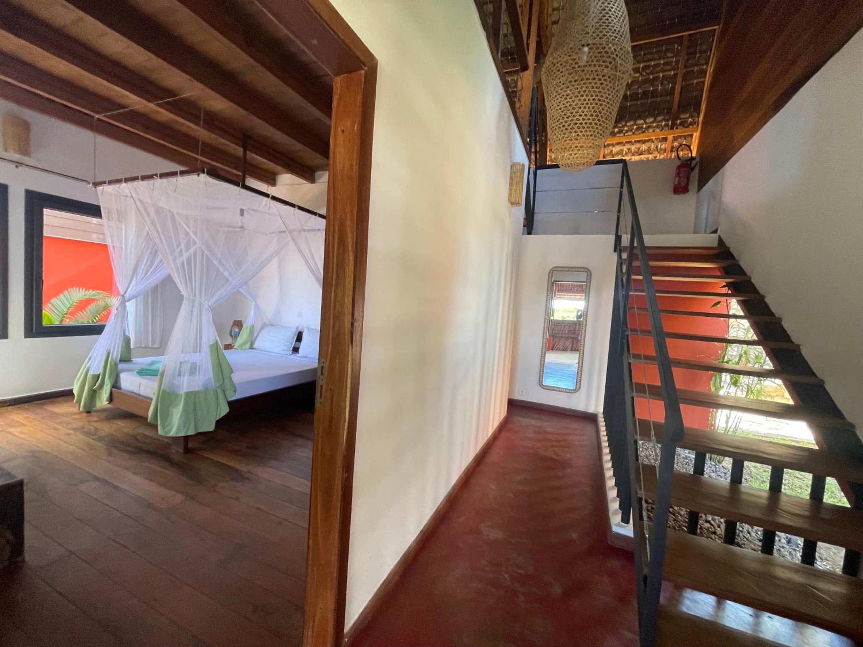 Tutto. Immersa nella natura, quattro enormi lodge a due piani che non tradiscono minimamente lo spirito dell’isola, adattandosi alla sua essenza. Un giardino curato, una bella piscina, un patio comune in cui fare colazione, uno staff eccezionale capitanato dal proprietario Thierry, gentilissimo, estremamente disponibile e attento ai suoi ospiti. A pochi minuti di tuktuk dalla splendida spiaggia di Andilana