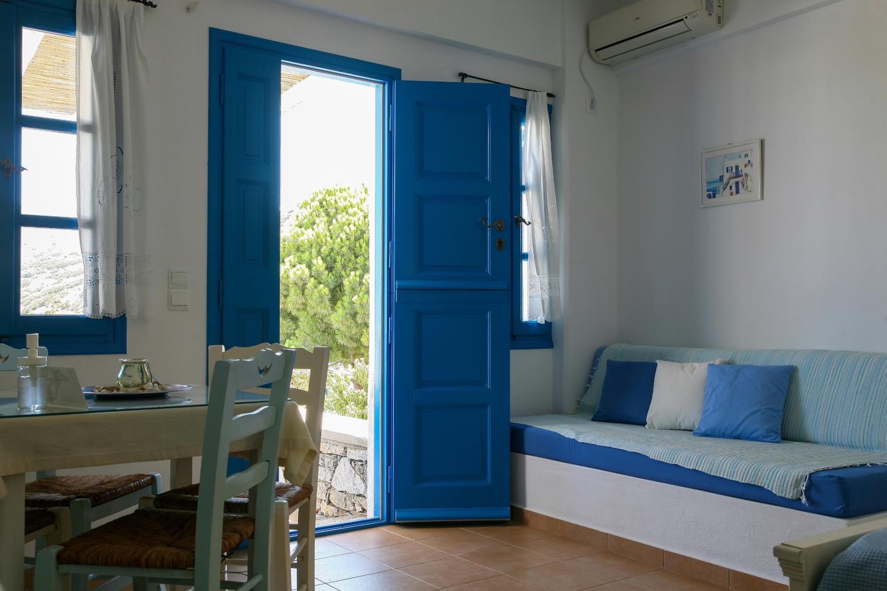 Roughly a 5-minute drive from Aigiali port, Vicky’s studios are located in a picturesque village with a quiet vibe. The rooms are designed in traditional Cycladic style, and everything is clean and well maintained. There is free parking space in front of the complex, so no need to worry about the car.