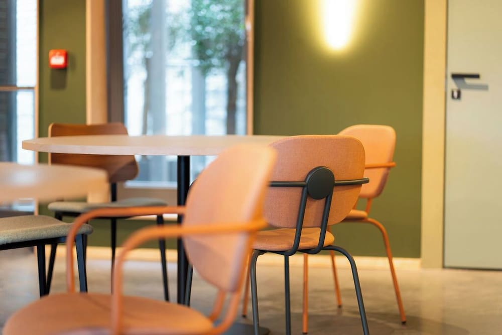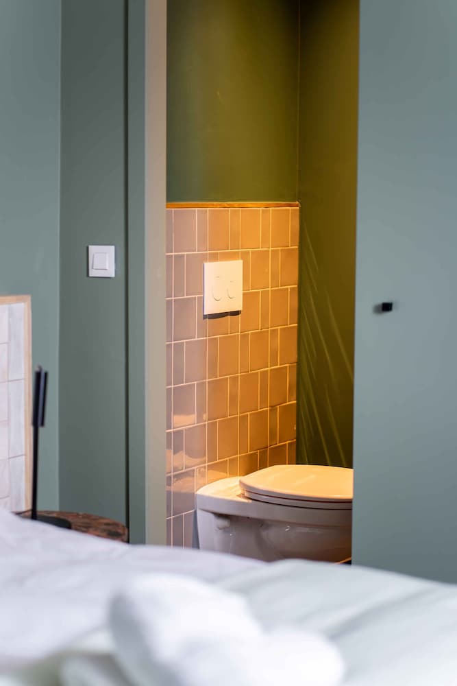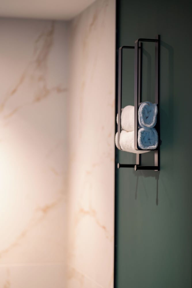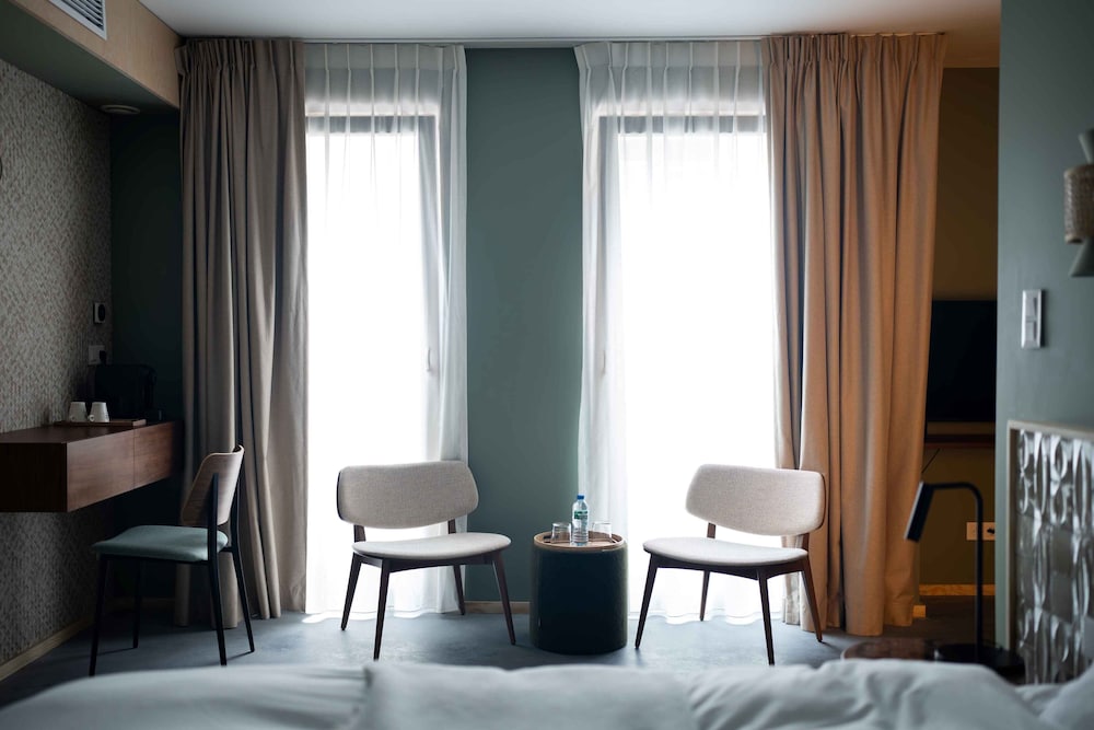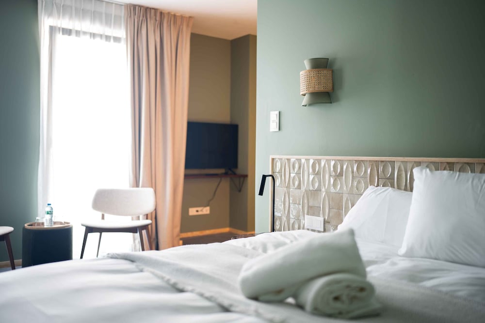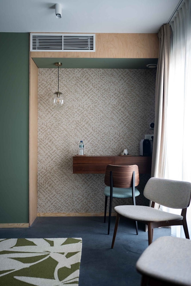The hotel has an interesting, modern, contemporary style. The elevator is big enough for two people with luggage, which is convenient. The bed was comfortable and soft, and the central location is very convenient for exploring the city. However, I didn’t like the open shower space design. The room itself was tiny with nice furniture, and there was no air conditioning, so we had to open the windows and ended up listening to the sound of pigeons all night. We did not try the breakfast.