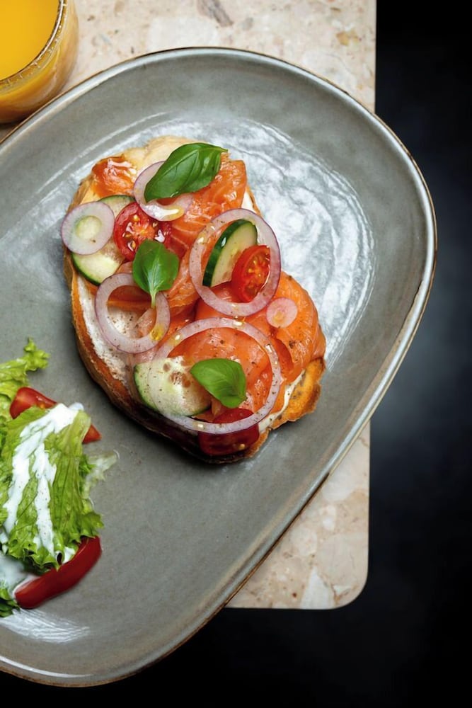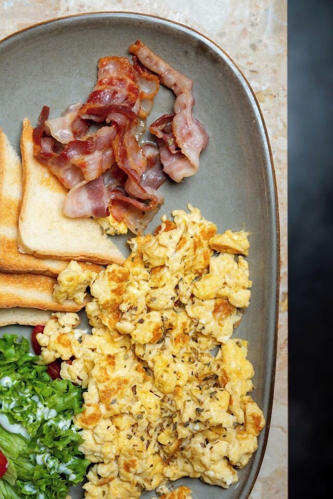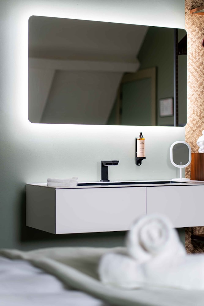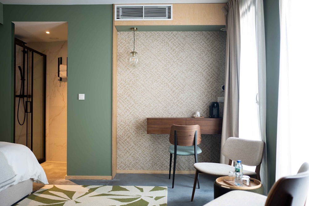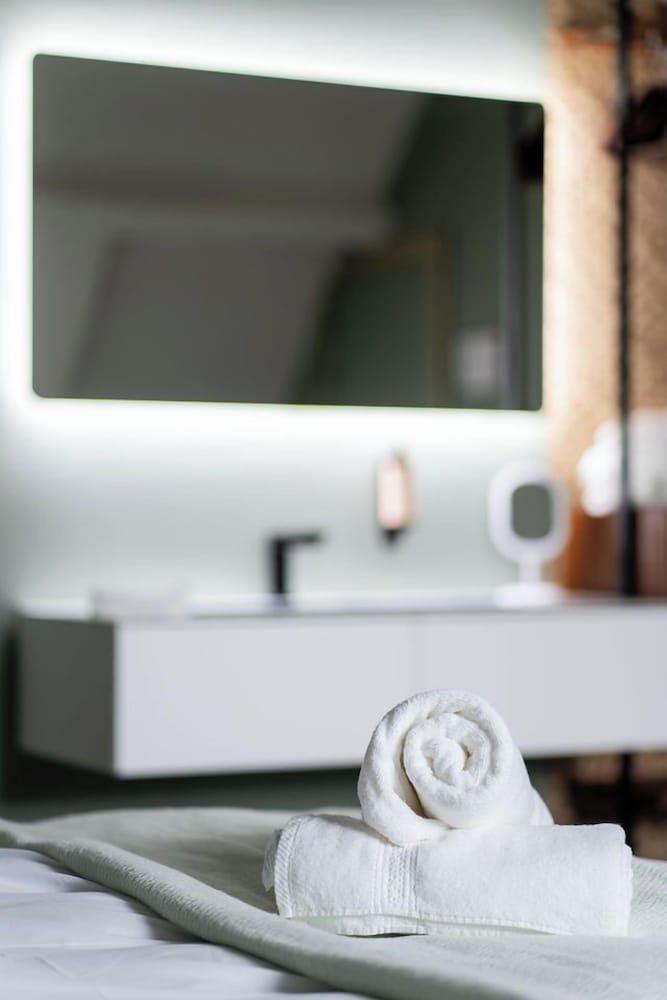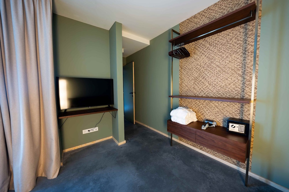 The hotel has an interesting, modern, contemporary style. The elevator is big enough for two people with luggage, which is convenient. The bed was comfortable and soft, and the central location is very convenient for exploring the city. However, I didn’t like the open shower space design. The room itself was tiny with nice furniture, and there was no air conditioning, so we had to open the windows and ended up listening to the sound of pigeons all night. We did not try the breakfast.