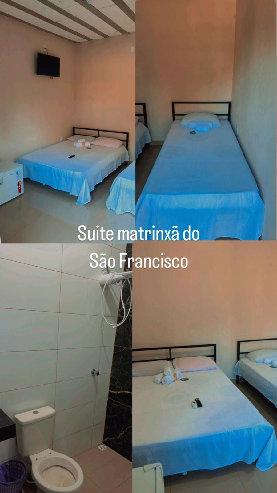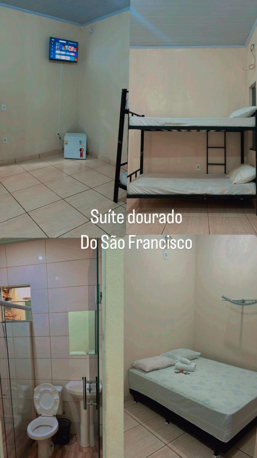 o local fica ao lado do rio são Francisco ,ótimo para pescaria, tem piscina aquecida e a acomodação e simples ,você mesmo pode fazer sua comida ou combinar com o proprietário , tem tudo para a pescaria .