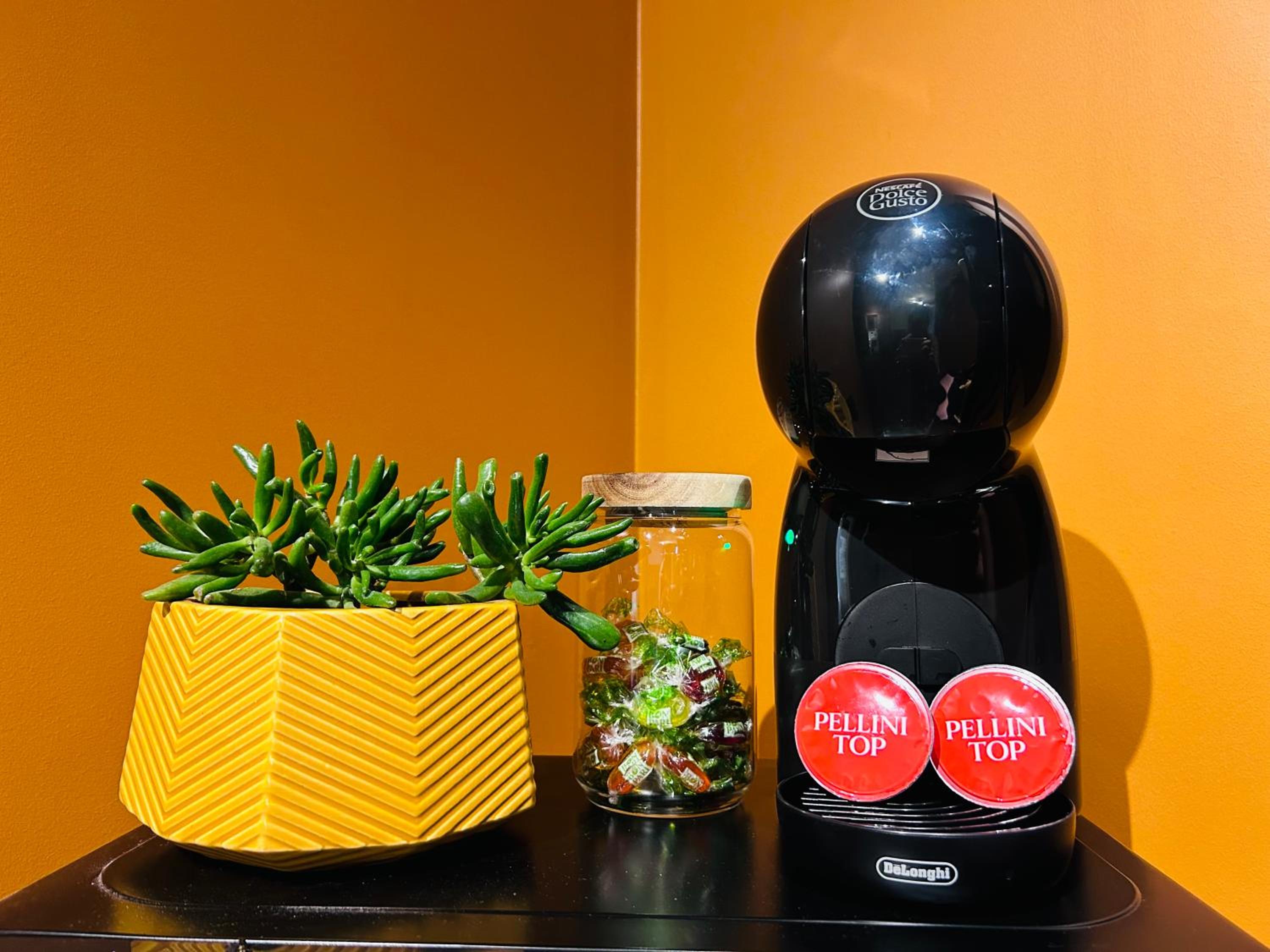 Atrašanās vieta laba, kafijas automāts