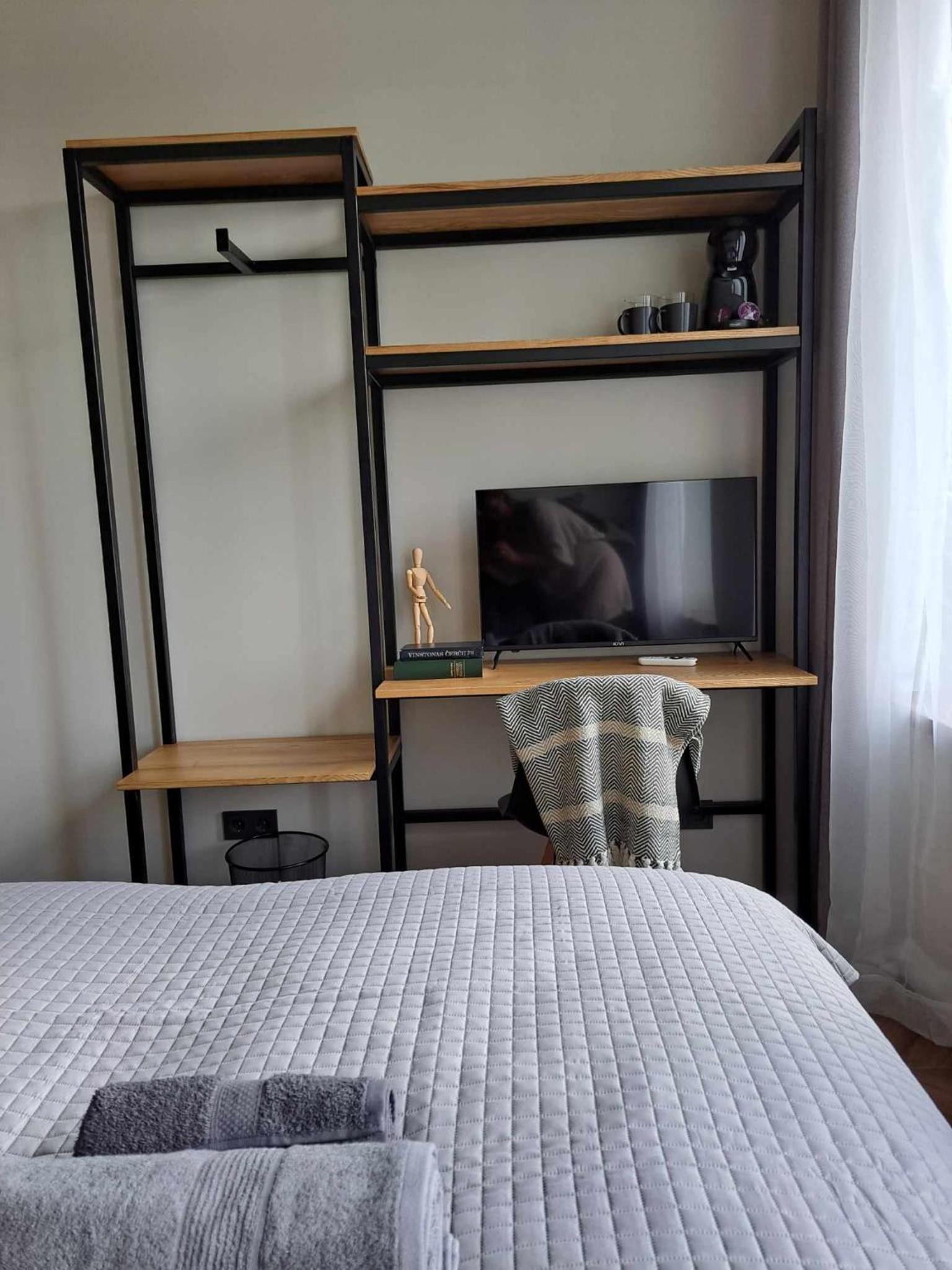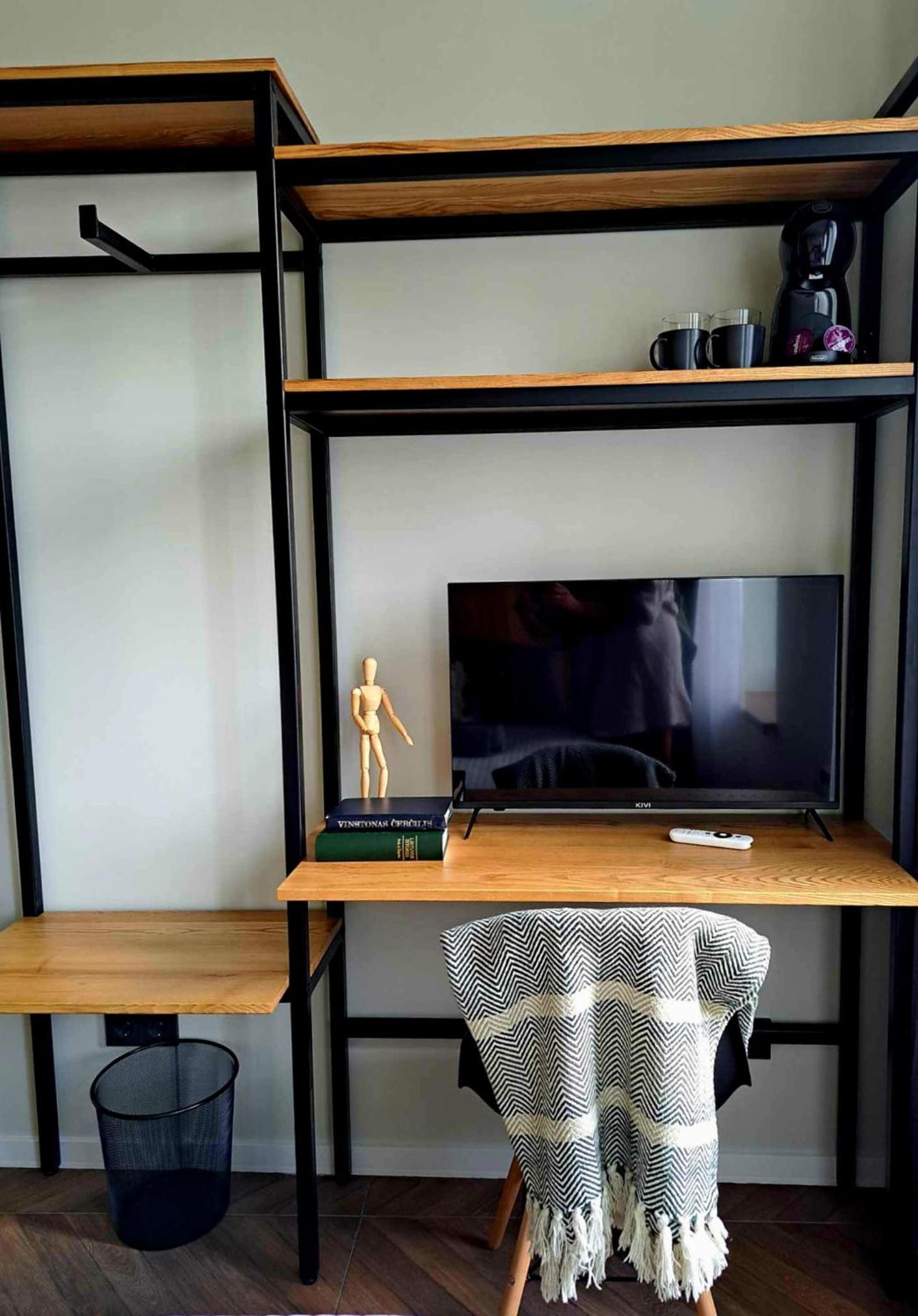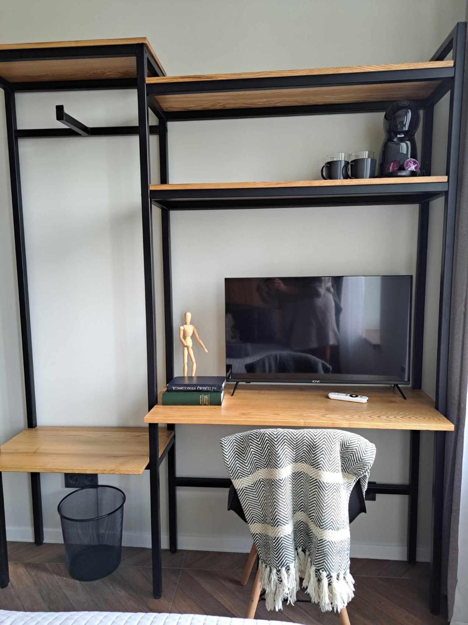 Erdvus kambarys, baldai nauji. Ir kad su kodais reikia įeiti. Yra kavos aparatas ir jauku.