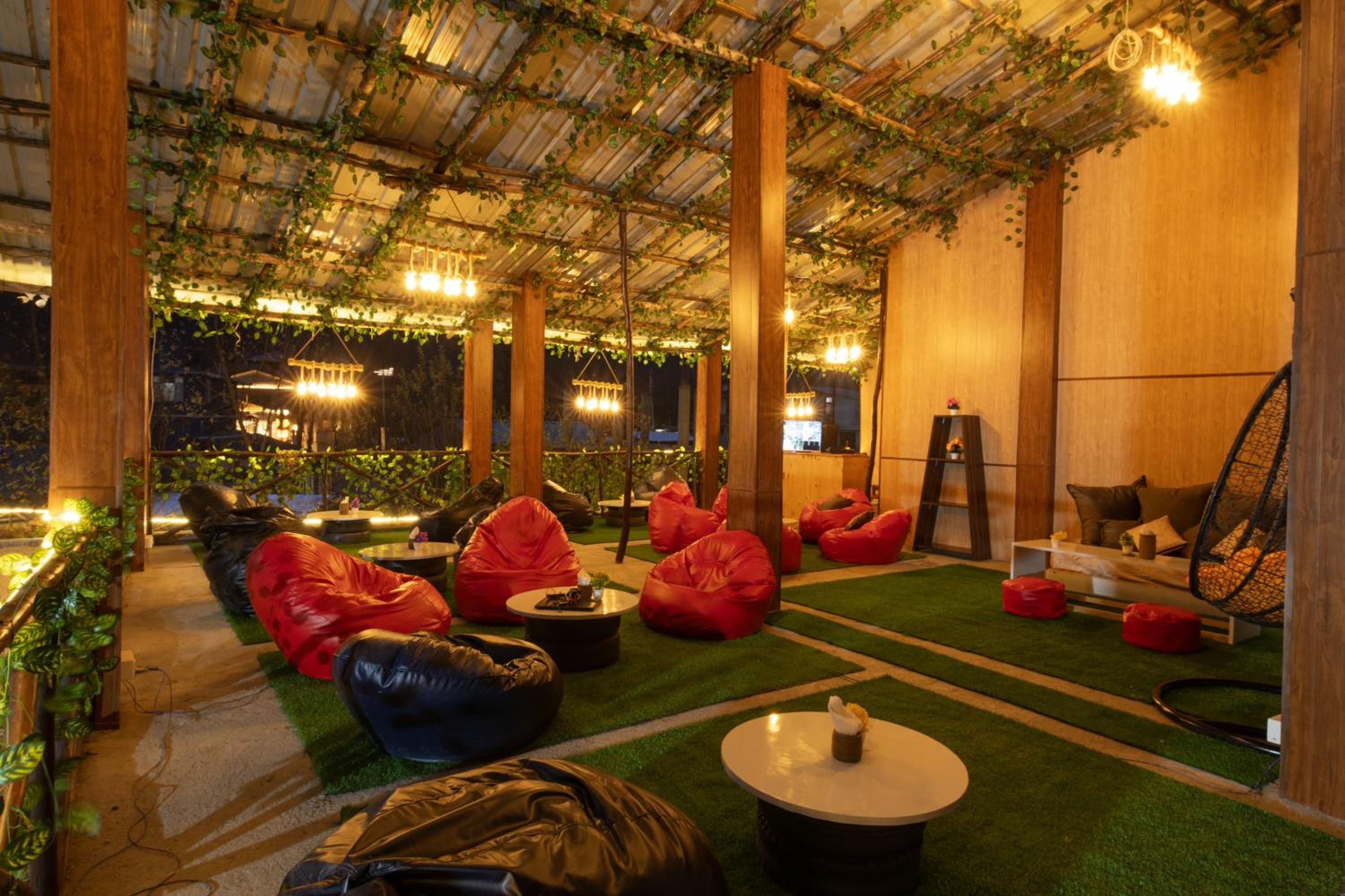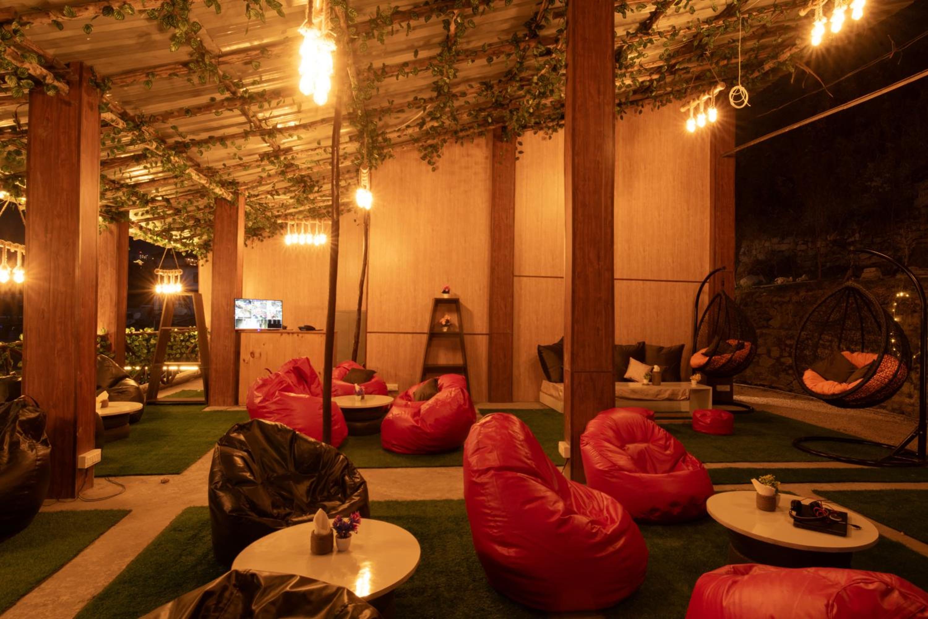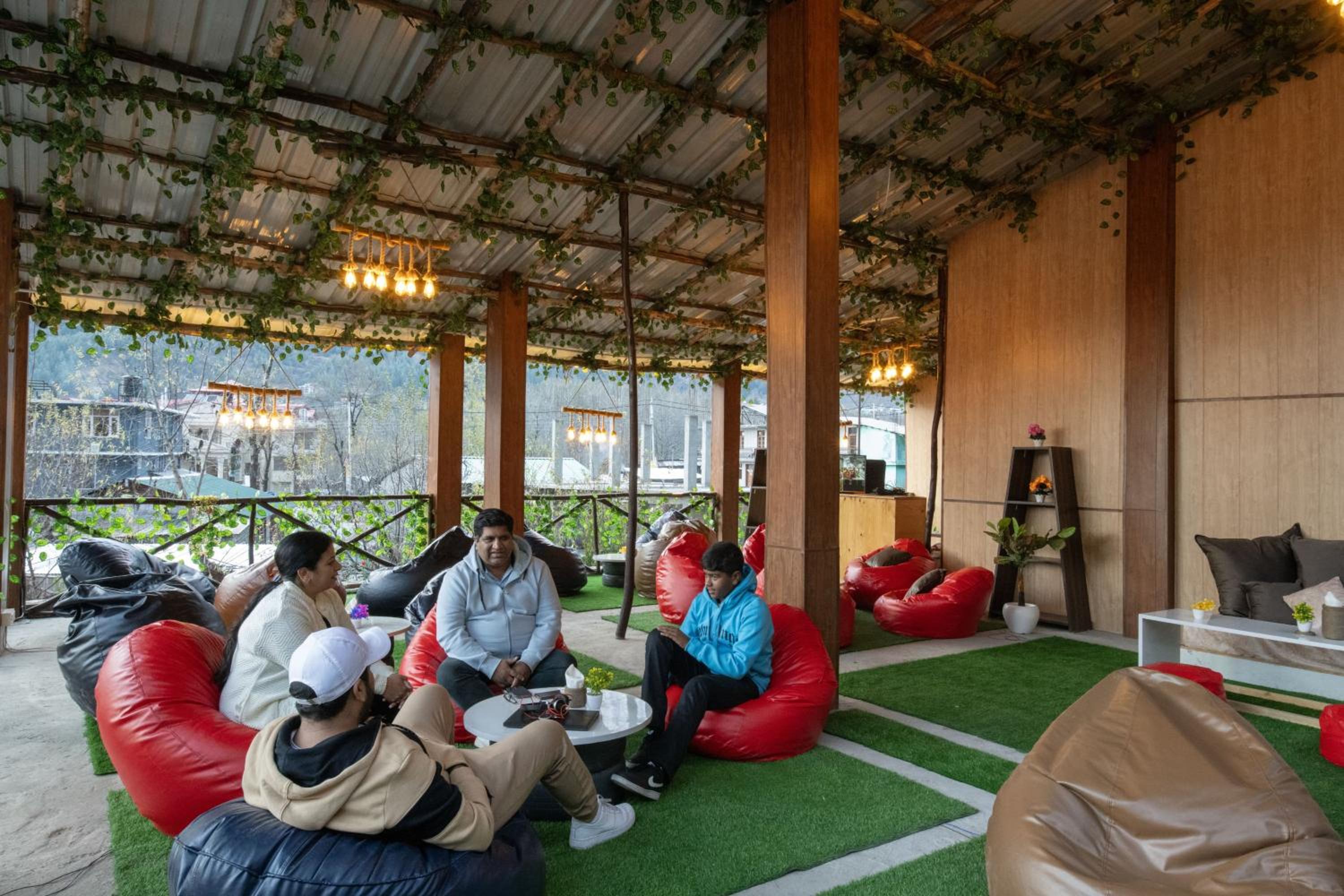 The location with its beautiful view and next to Manali Solang Road is great. Their rooftop cafe is awesome. Our kids had a blast, and we did too. The family room is good enough for a family of 4. They have ample space for car parking.