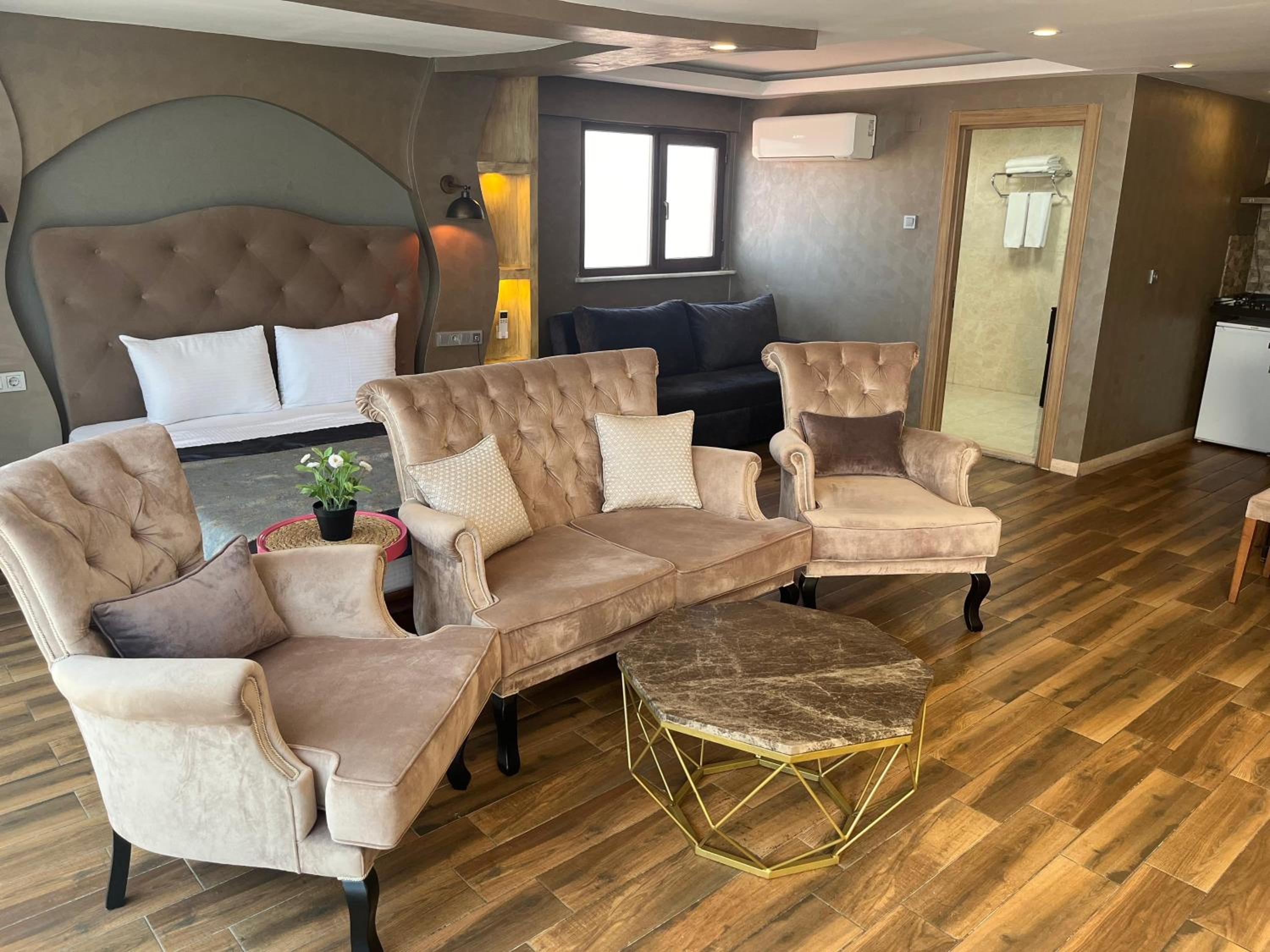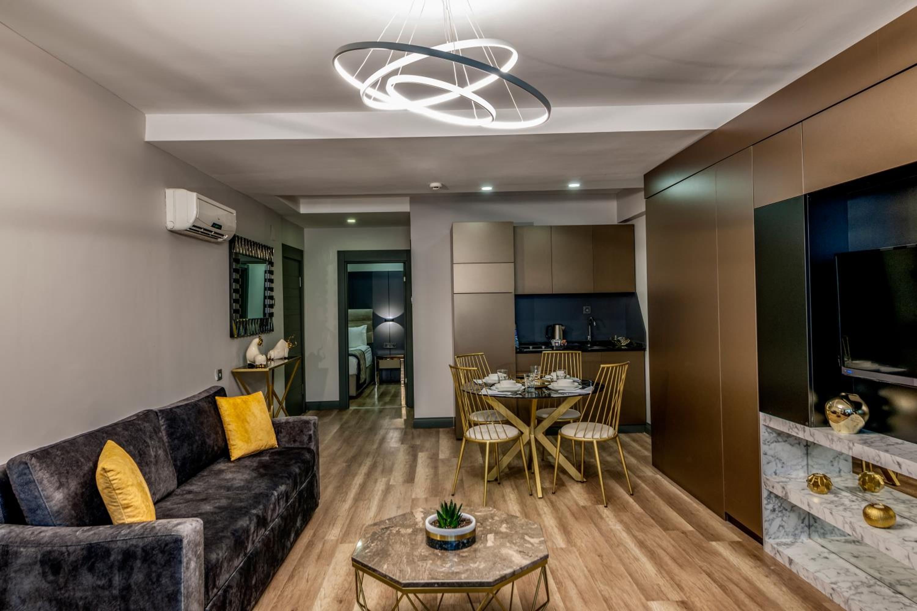 A Palace Suites in Istanbul offers a luxurious stay with free WiFi and air conditioning. The modern rooms feature flat-screen TVs, kitchenettes with microwaves, and private bathrooms with slippers provided. Enjoy the convenience of being close to Cevahir Shopping Mall and Şişli - Mecidiyeköy Metro Station, allowing easy access to various attractions in Istanbul.