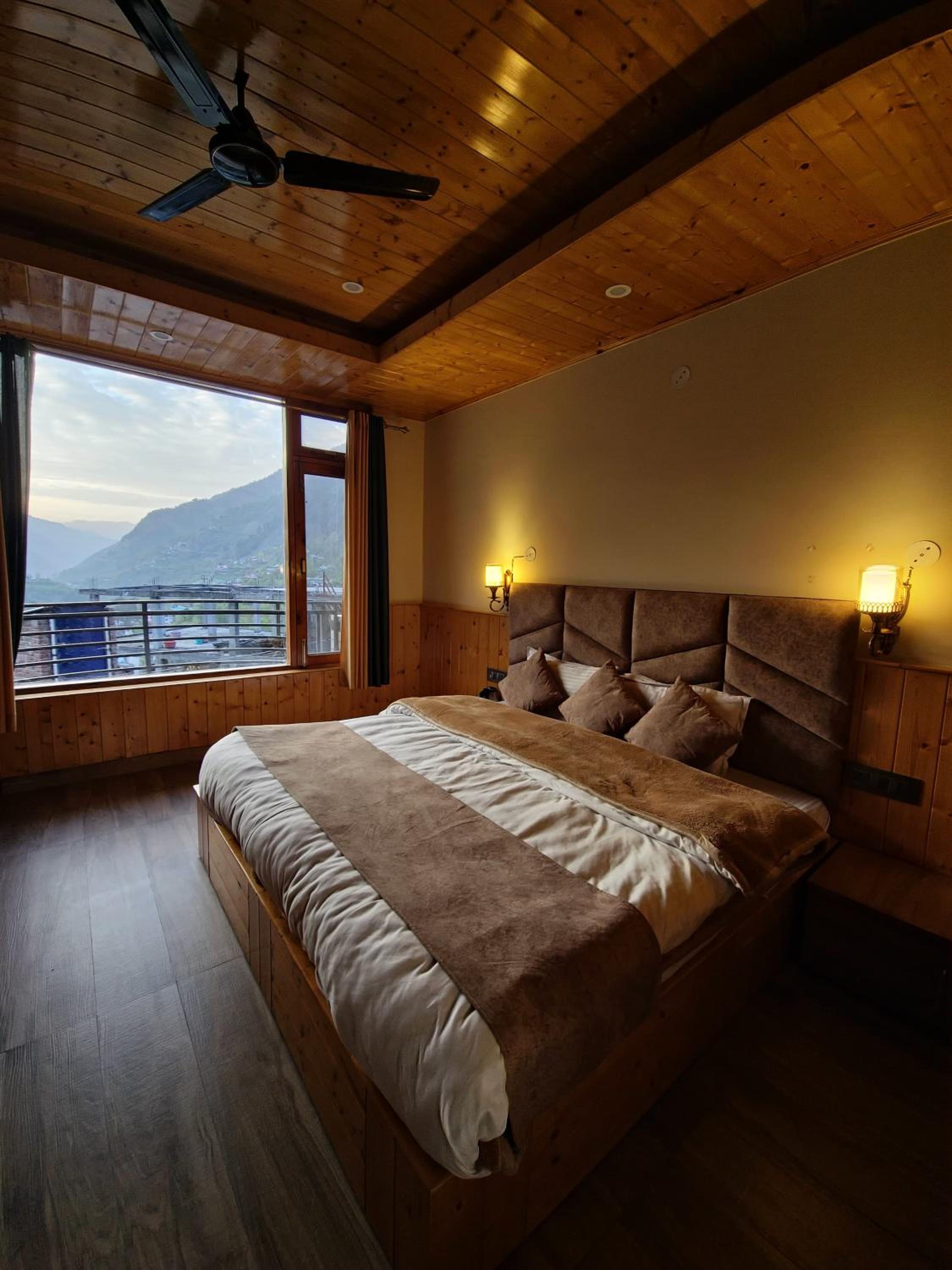 Relax in our cozy rooms equipped with essential amenities like a wardrobe, private bathroom, and scenic balcony with mountain views.