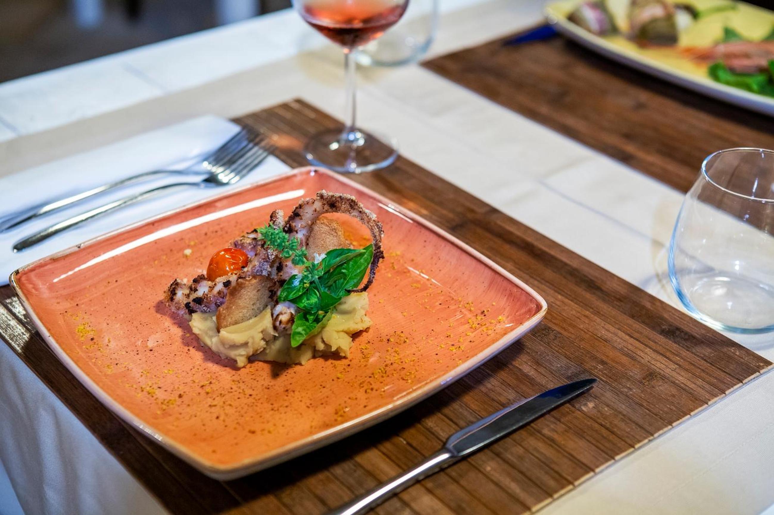 Indulge in local cuisine at our Salento restaurant, featuring homemade cakes, fresh fruit, and regional specialties like Orecchiette pasta and Primitivo red wine. Enjoy your meal on the terrace overlooking the picturesque surroundings.