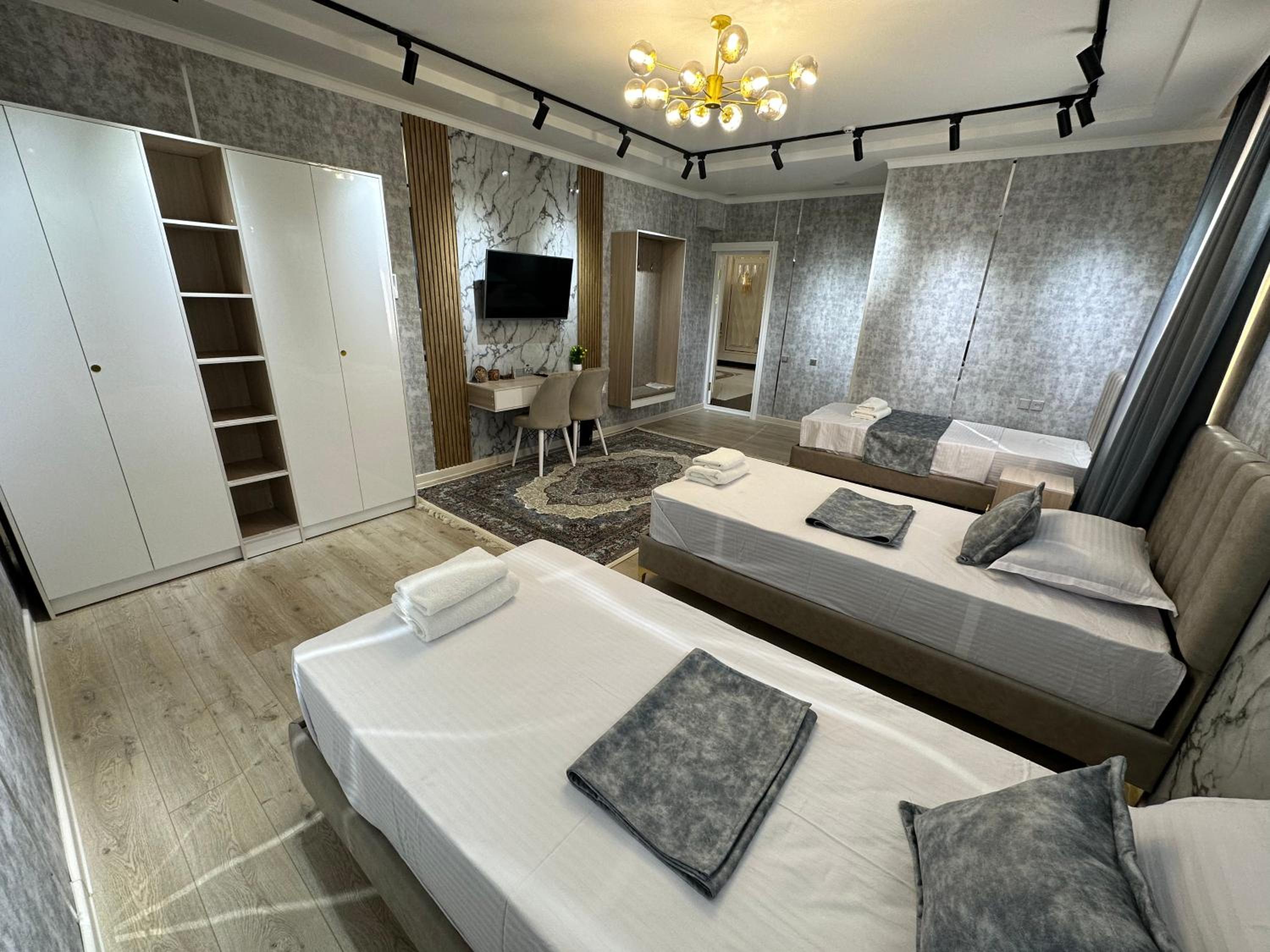 Set in Khiva, New Minor Hotel offers a bar. The accommodation provides a 24-hour front desk, airport transfers, a shared lounge, and free WiFi throughout. Guests can enjoy air-conditioned rooms with modern amenities. The hotel features a restaurant serving Turkish and European cuisine, with options for vegetarian, halal, and gluten-free diets. Additionally, guests can explore the area through bike and car hire services. Indulge in a luxurious stay with top-notch facilities and exceptional service. Book your stay at New Minor Hotel for an unforgettable experience.