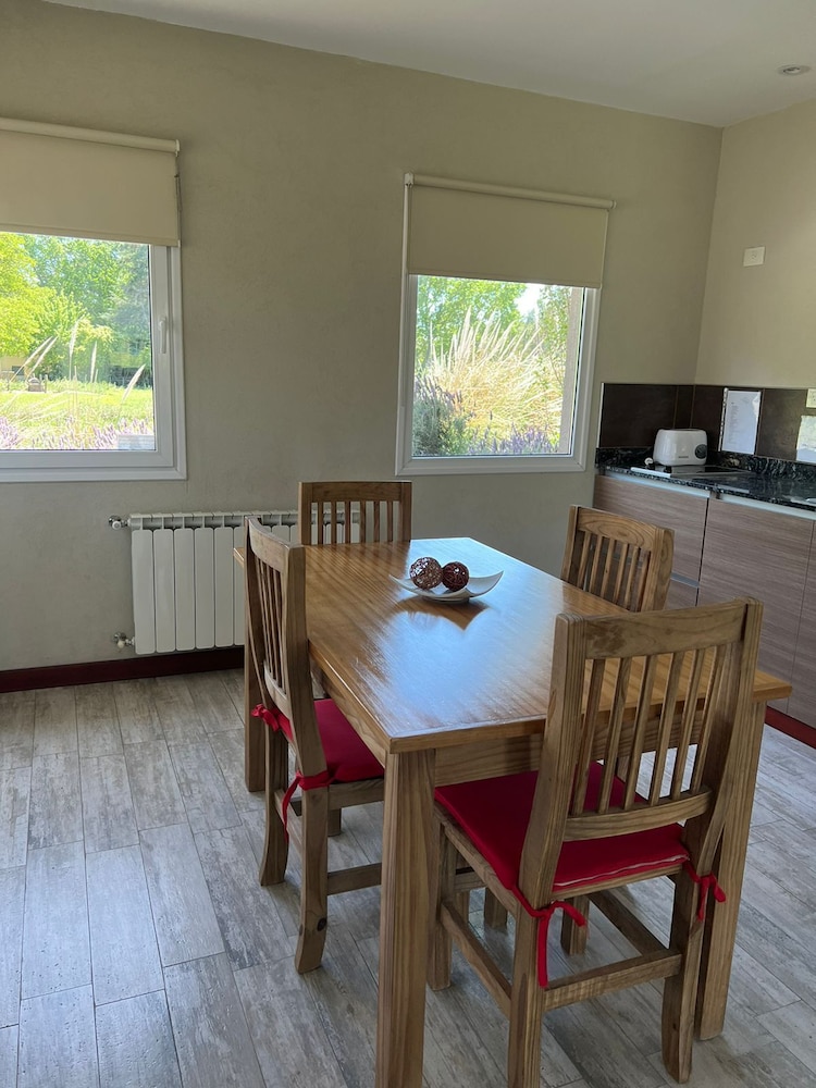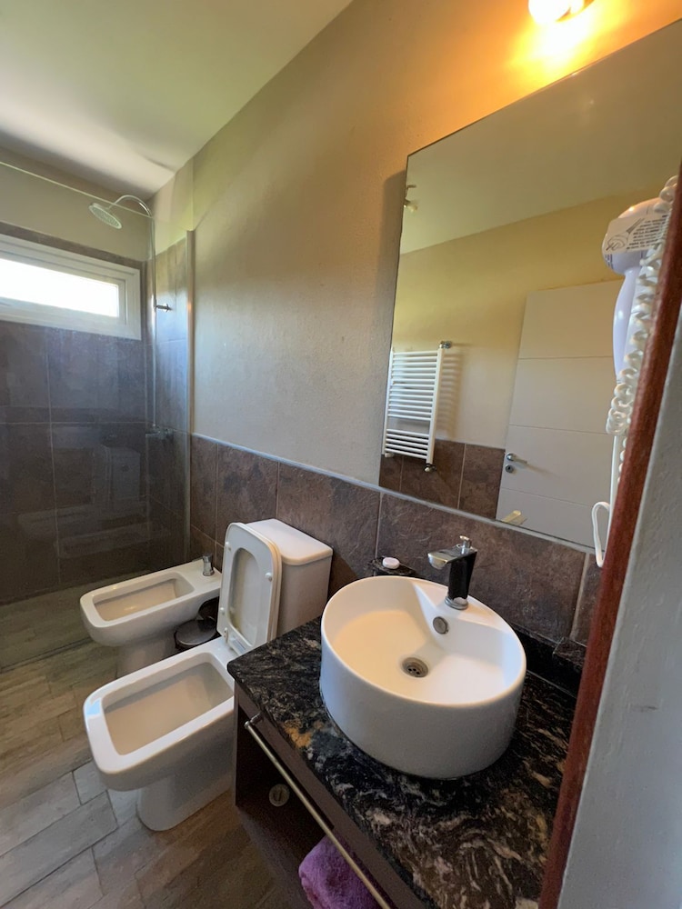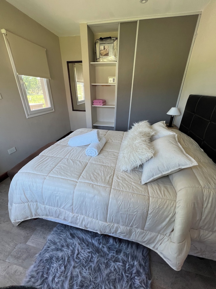 Hermoso complejo de cabanas. Hermosa la zona de la piscina...no la pudimos usar porque solo pasamos una noche y no teníamos tiempo de estar en el complejo. EL desayuno excelente, con varias opciones, y delicioso jugo de naranja natural. La cabana (gran suite) era amplia, bien equipada y si bien esta super accesible al lado de la ruta, no sentimos ruidos, descansamos muy bien.