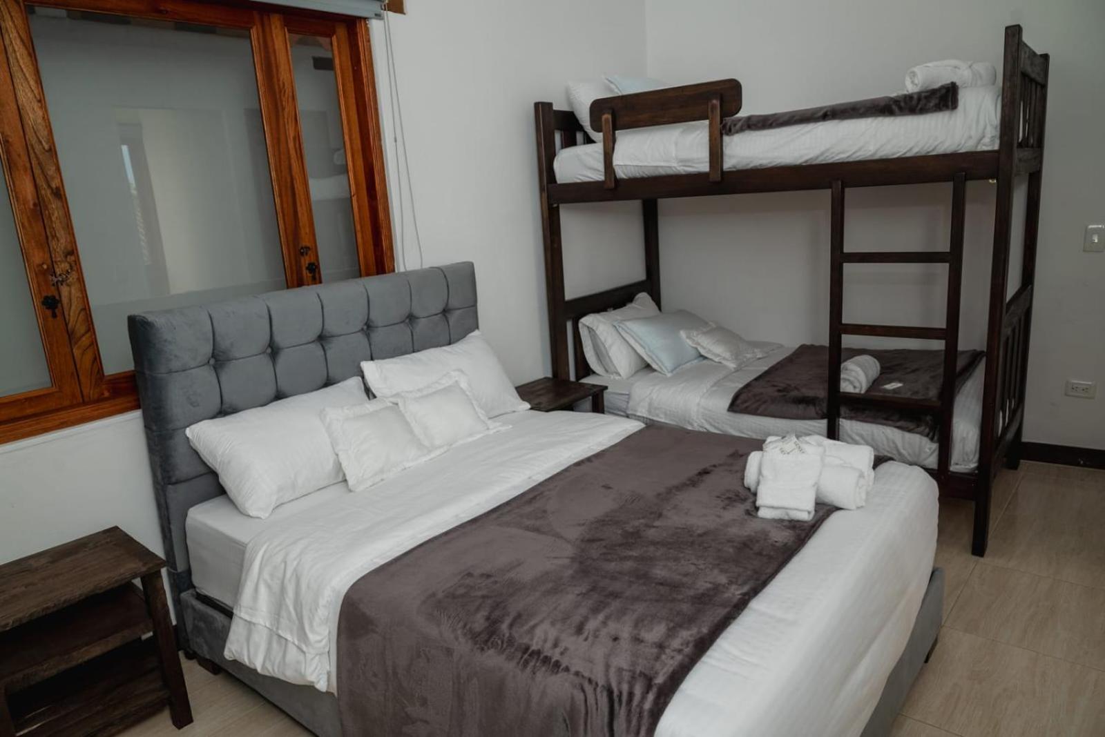 El colchon permite descansar perfectamente, la habitacion tiene un espacio para guardar la ropa, tiene TV, baño privado, es super tranquila y oscura, es super cerca del parque principal, hay acceso 24 hora al hotel. deben tener en cuenta que hay escaleras para subier a todas las habitaciones. hay dispensador de agua y aromaticas en una cocineta de uso comun y una salita de espera