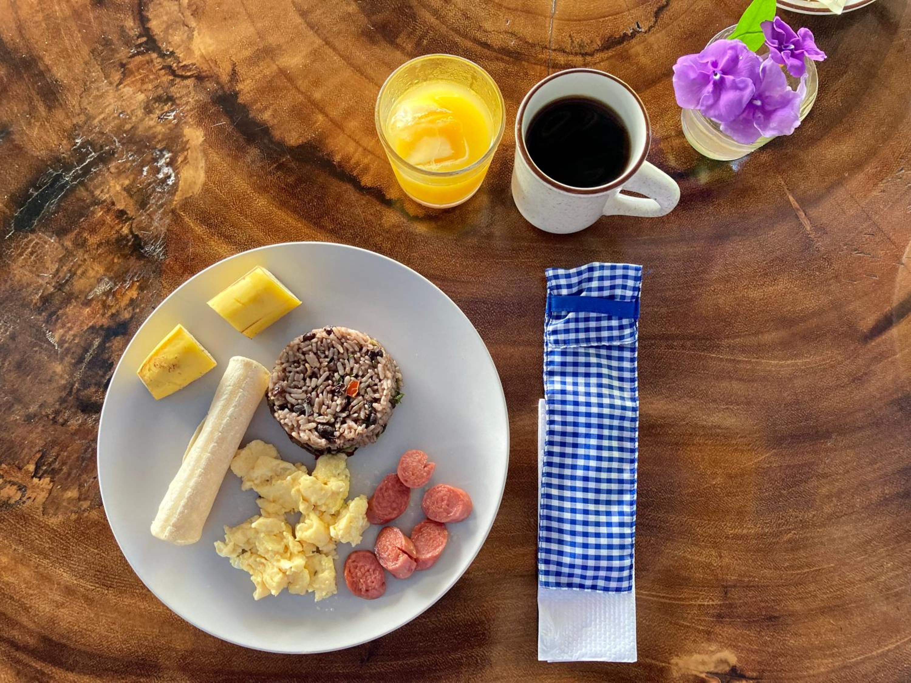 The location is excellent with breathtaking views over the Pacific and Ossa Peninsular with birds and other animals around the property. We had the view from our room. Breakfast was typical Costa Rican and done very well.