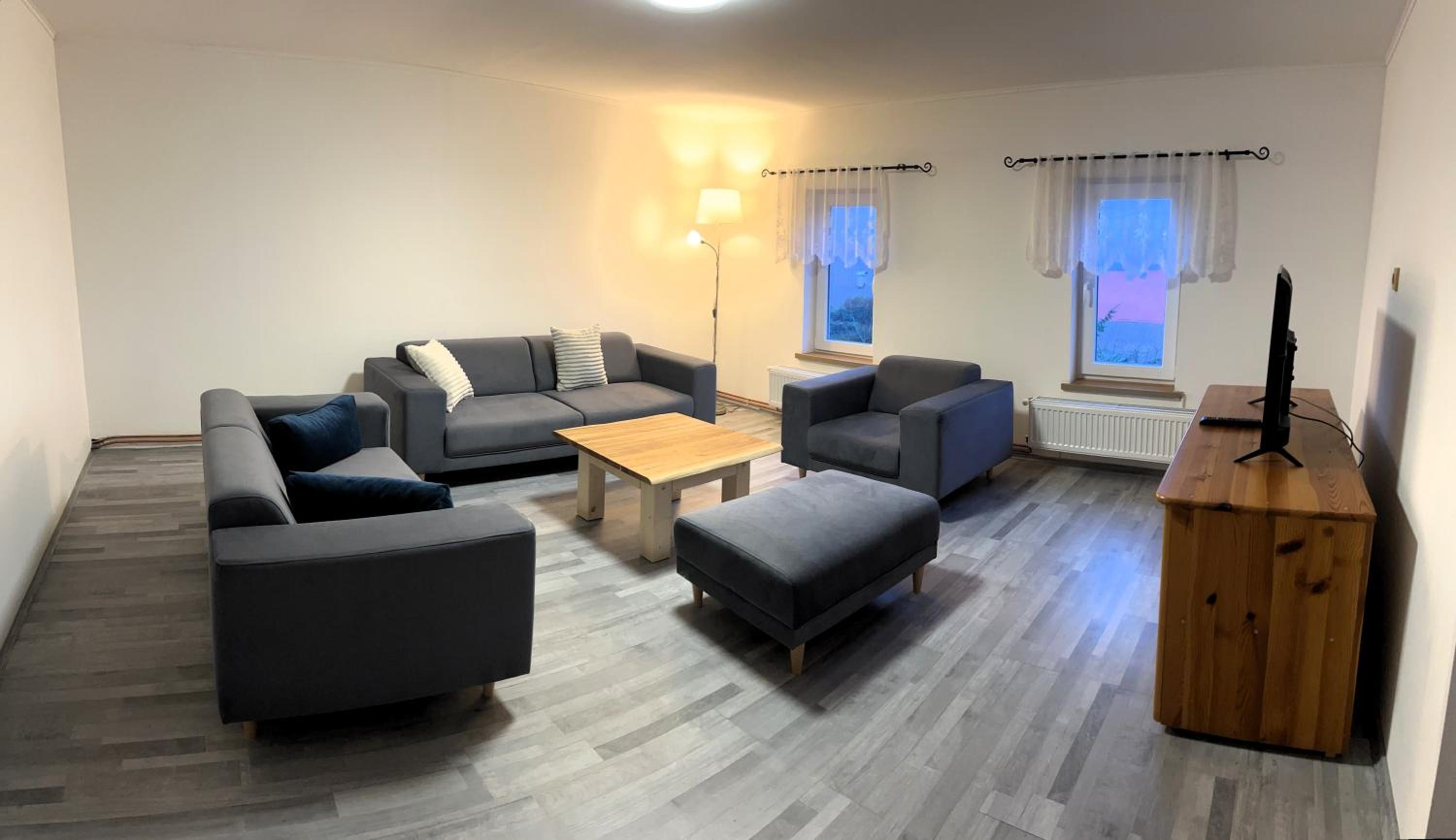 Duży, dobrze wyposażony i czysty apartament. Duża łazienka z wanną. Udogodnienia dla rodzin z dziećmi, czyli dodatkowe lozeczko turystyczne, krzeslko do karmienia oraz ogród z trampolina. Blisko do lokalnego sklepu. Wokół cisza i spokój. Około 20 minut do czeskiej szwajcarii.