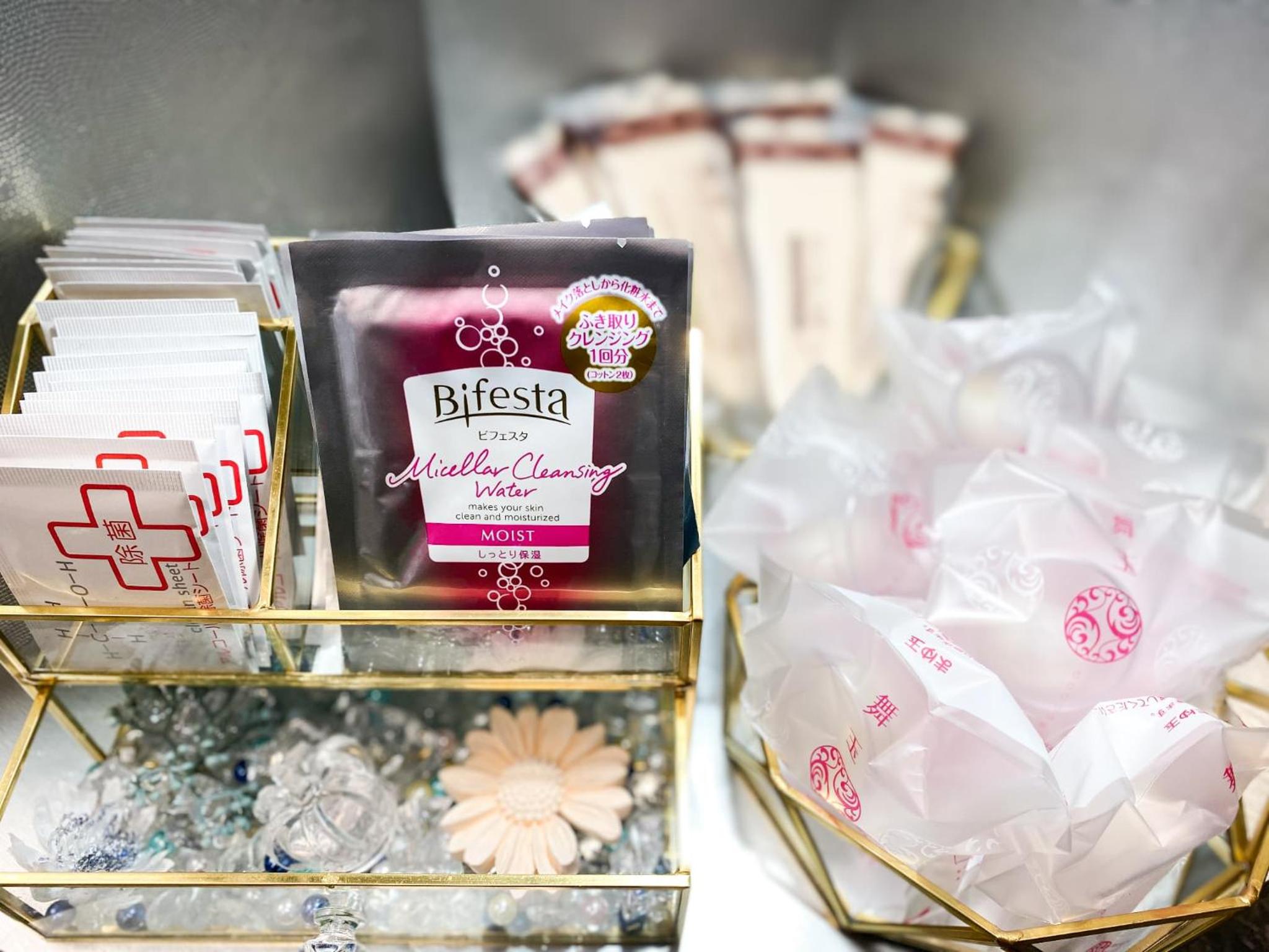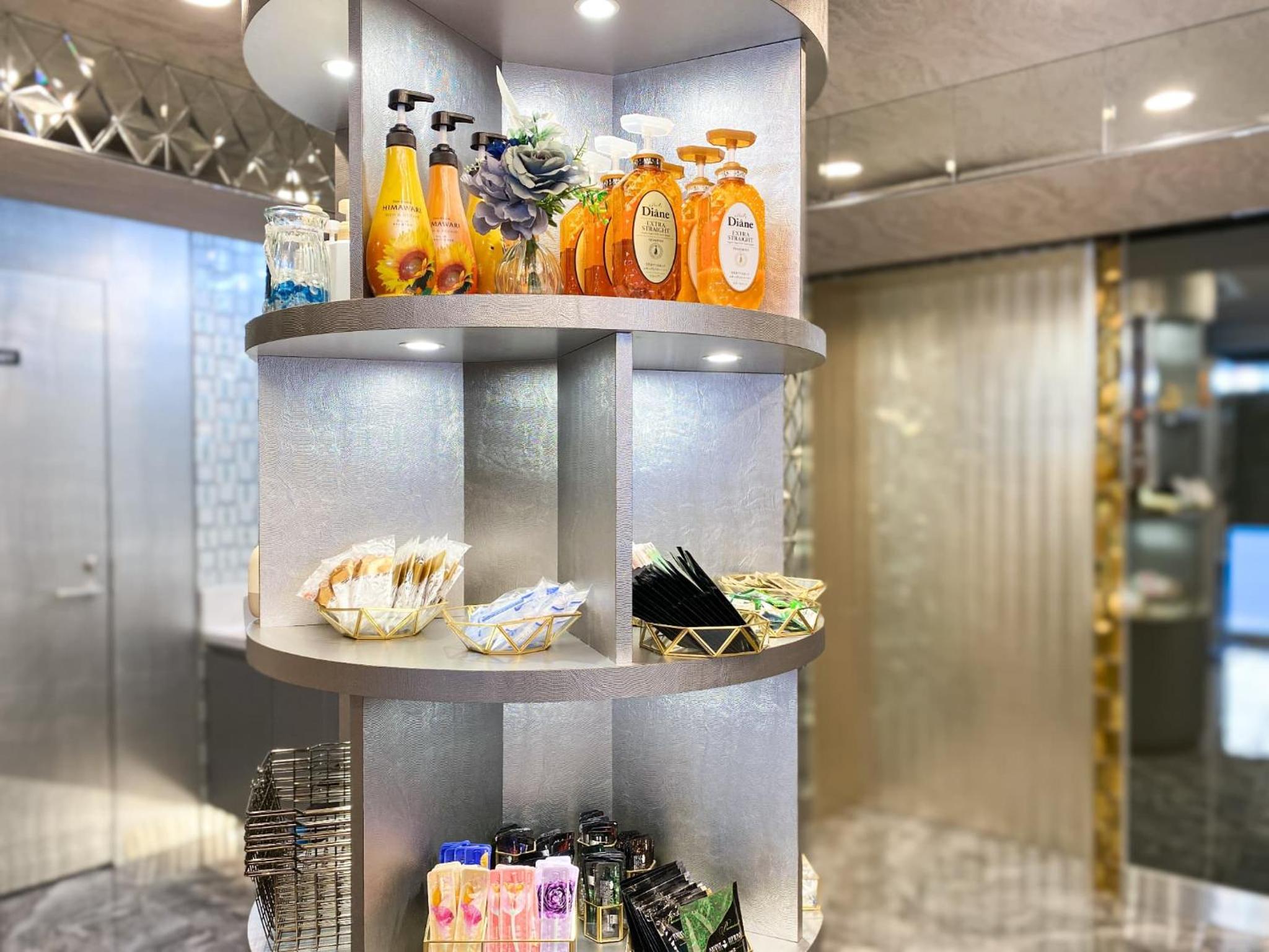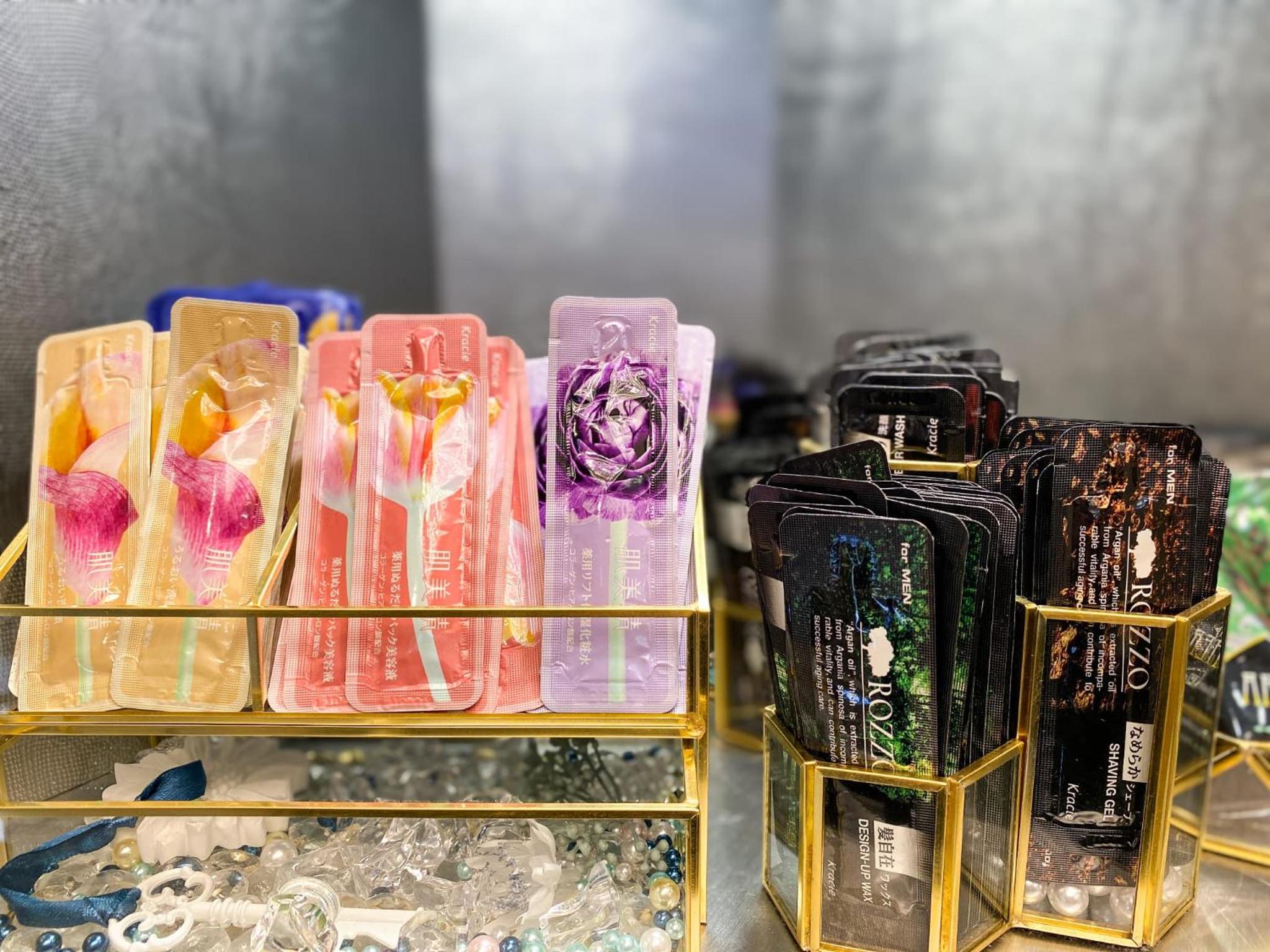 Amenity bar with bath salts, make up remover, cleaner, face masks, oils. It was great! We could also pick out shampoos and conditioners that look quite premium if you don't want to use the shampoo and conditioner already provided in your room.