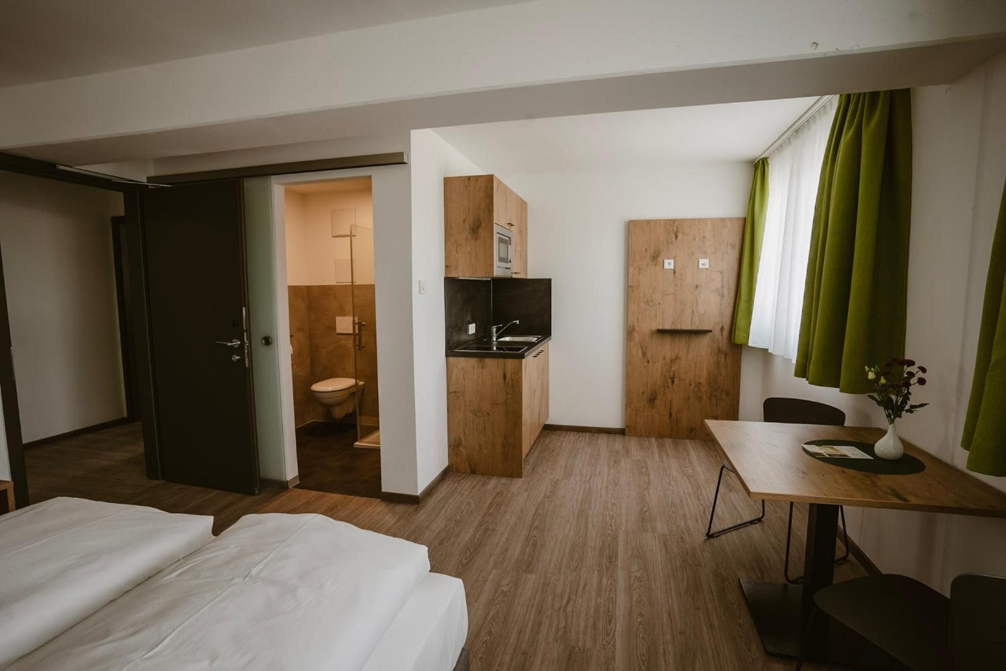 Modern Rooms with Amenities - Experience comfortable rooms with desks, private bathrooms, and kitchenettes available in select rooms.