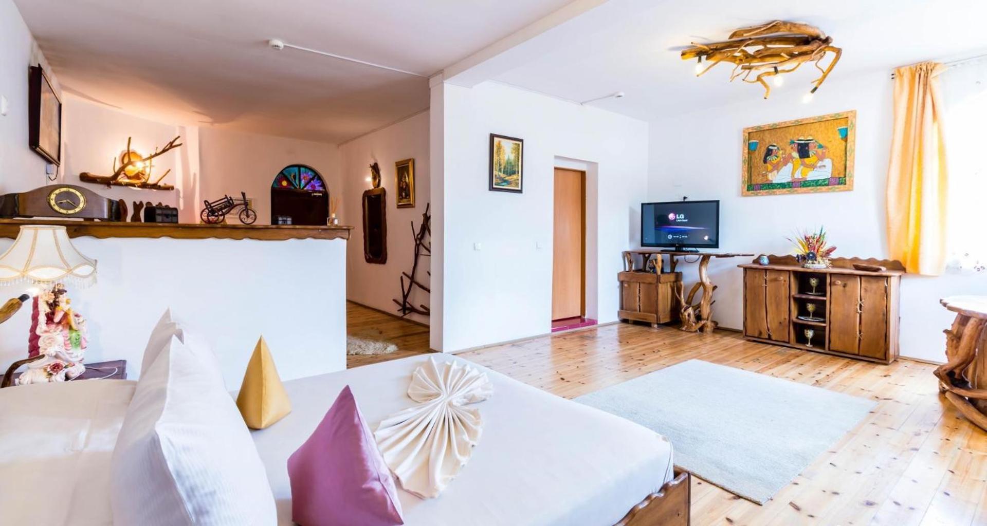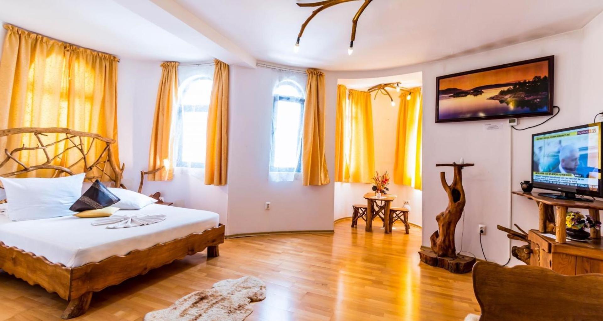 Castelul de Vis offers a range of luxurious amenities including an outdoor swimming pool, laptenis court, and rooms with flat-screen TVs, minibars, and some even with hot tubs.