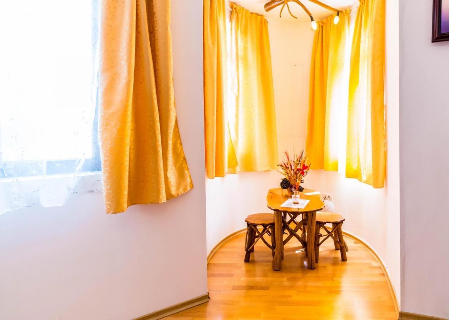 Praful nu era sters bine, curatenia a lasat de dorit. Nu am avut apa calda iar temperatura din camera la sosire era de 20 de grade, prea scazuta pentru mine. Panourile radiante incalzesc insa nu au putere . Din pacate chiar daca camera era mare si luminoasa, timpul si-a pus amprenta asupra finisajelor - podeaua de lemn avea holsuruburi care te zgarie la talpi,