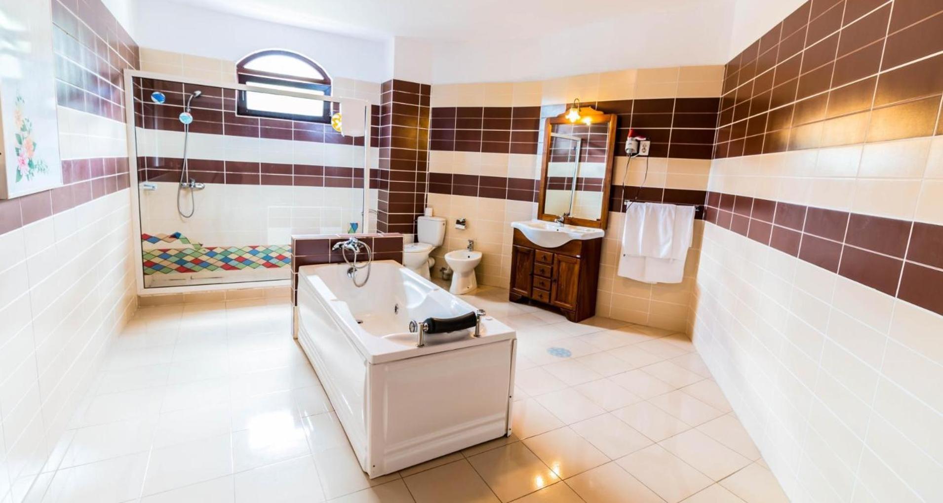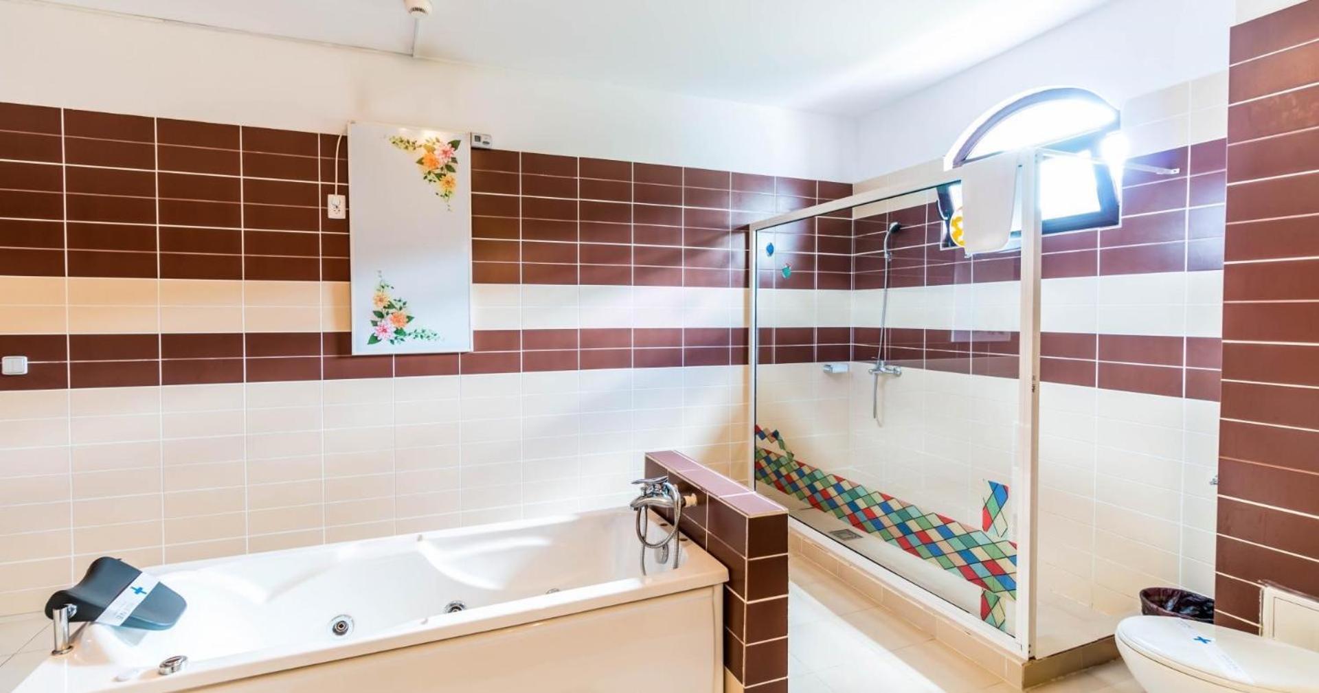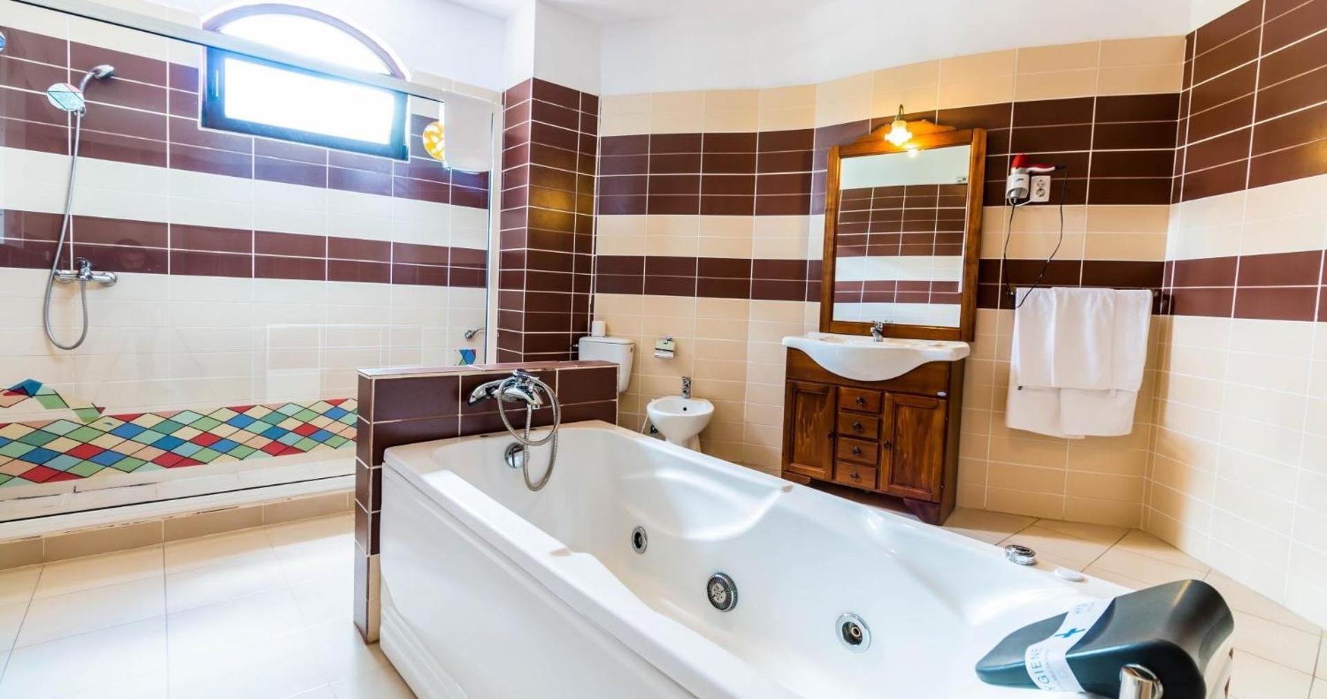 Locație surprinzătoare, cineva și-a dat interesul să facă hotelul să arate diferit /deosebit, am stat în multe hoteluri care aveau camera mai mică decât baia de aici 😄.