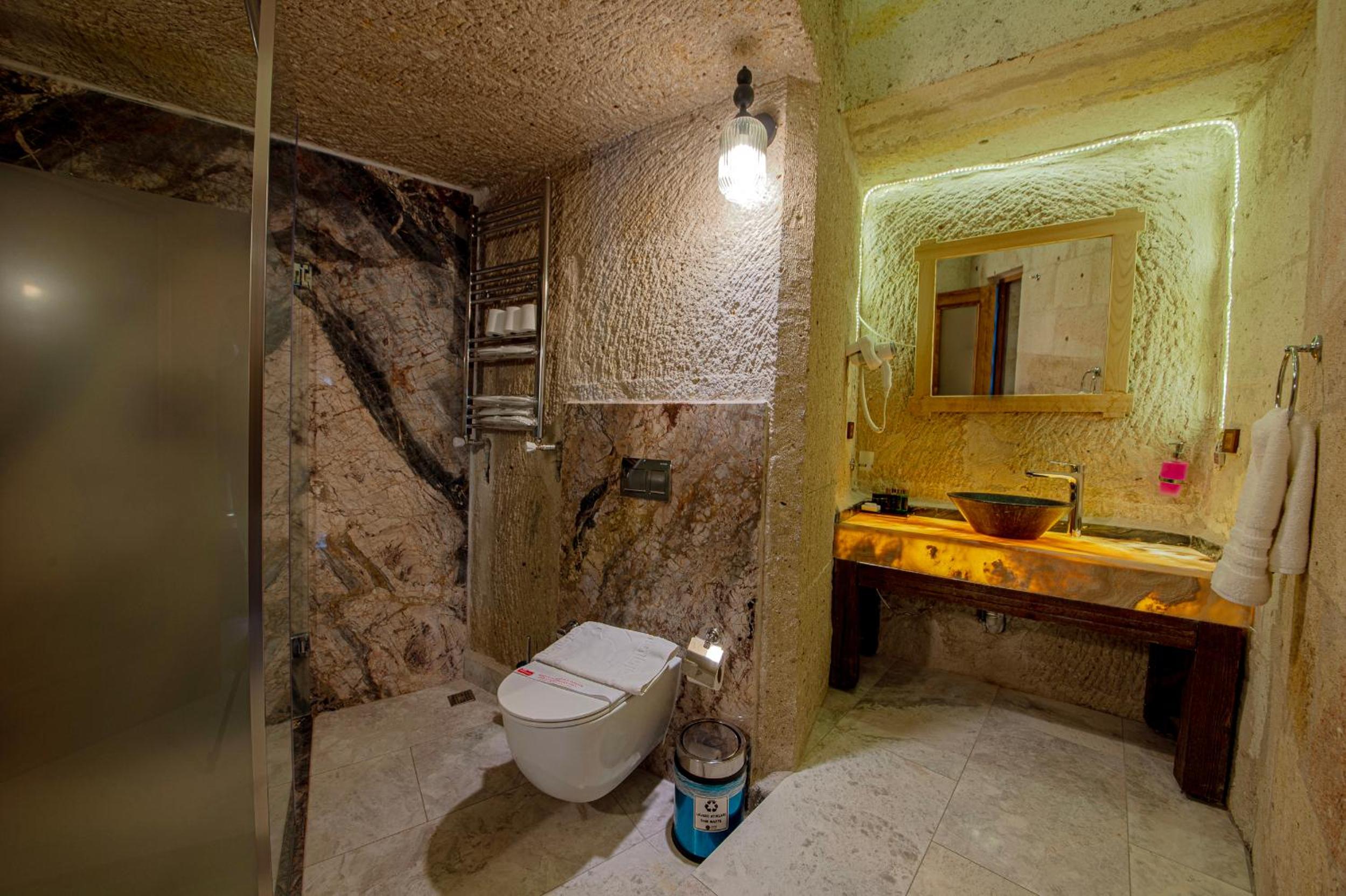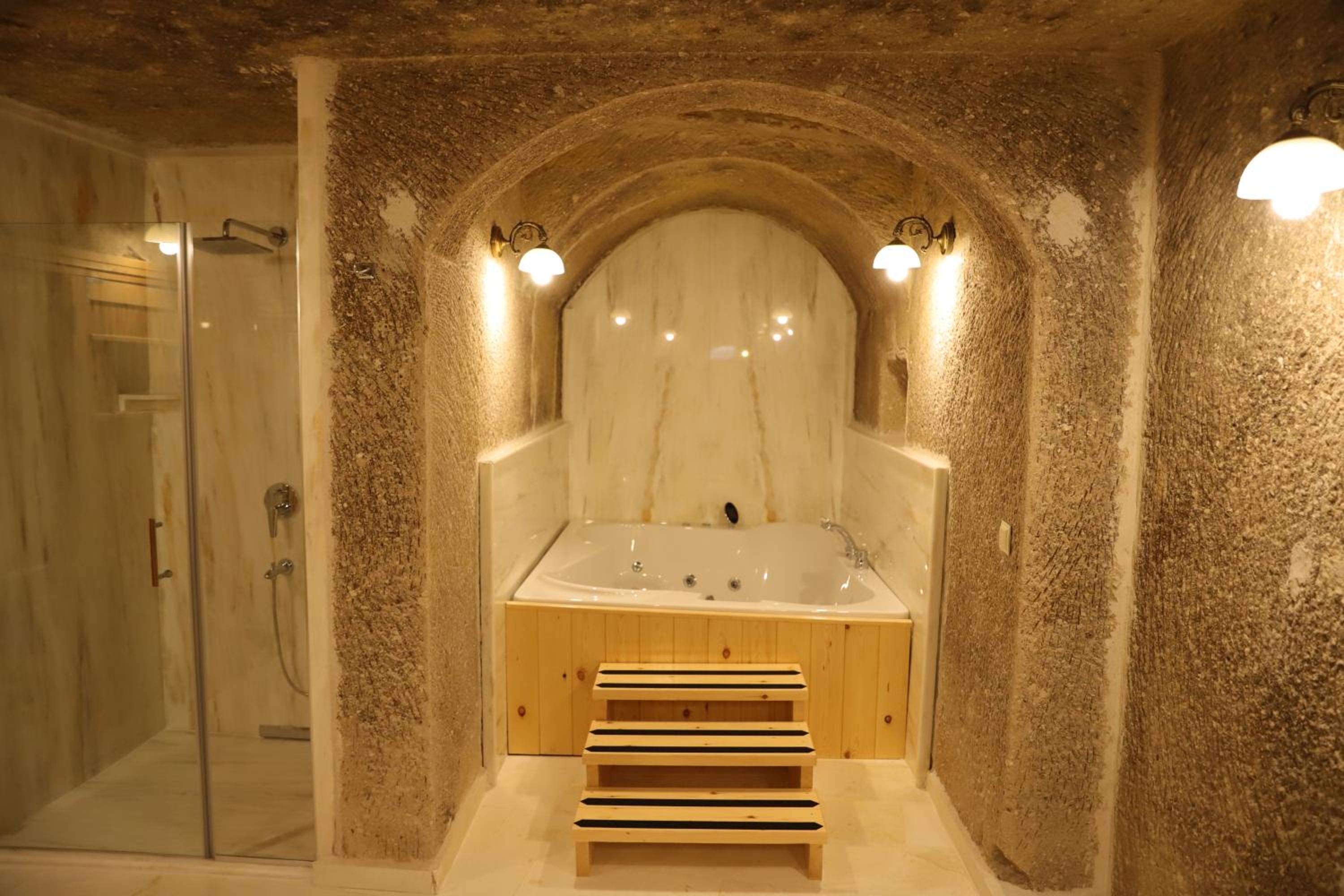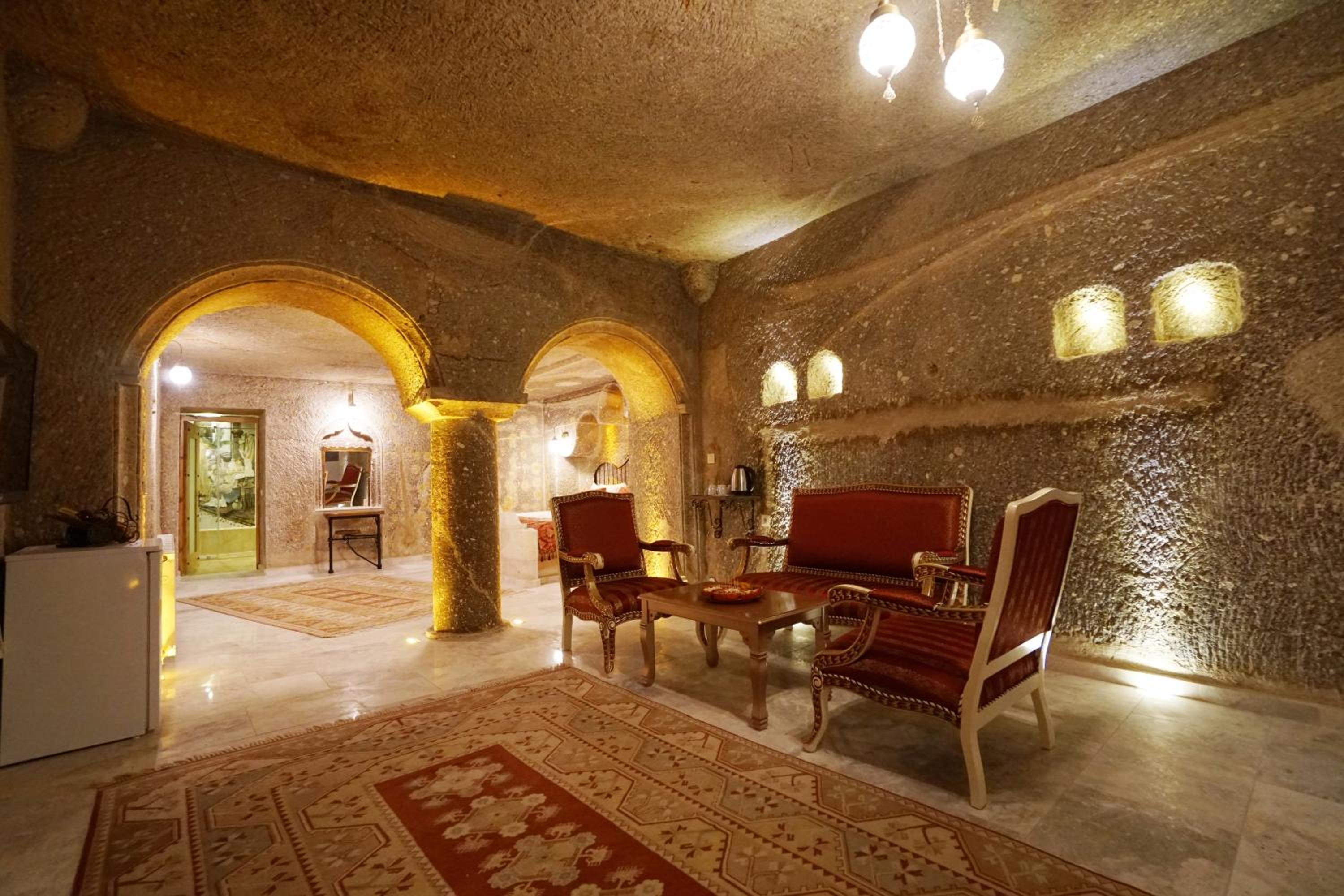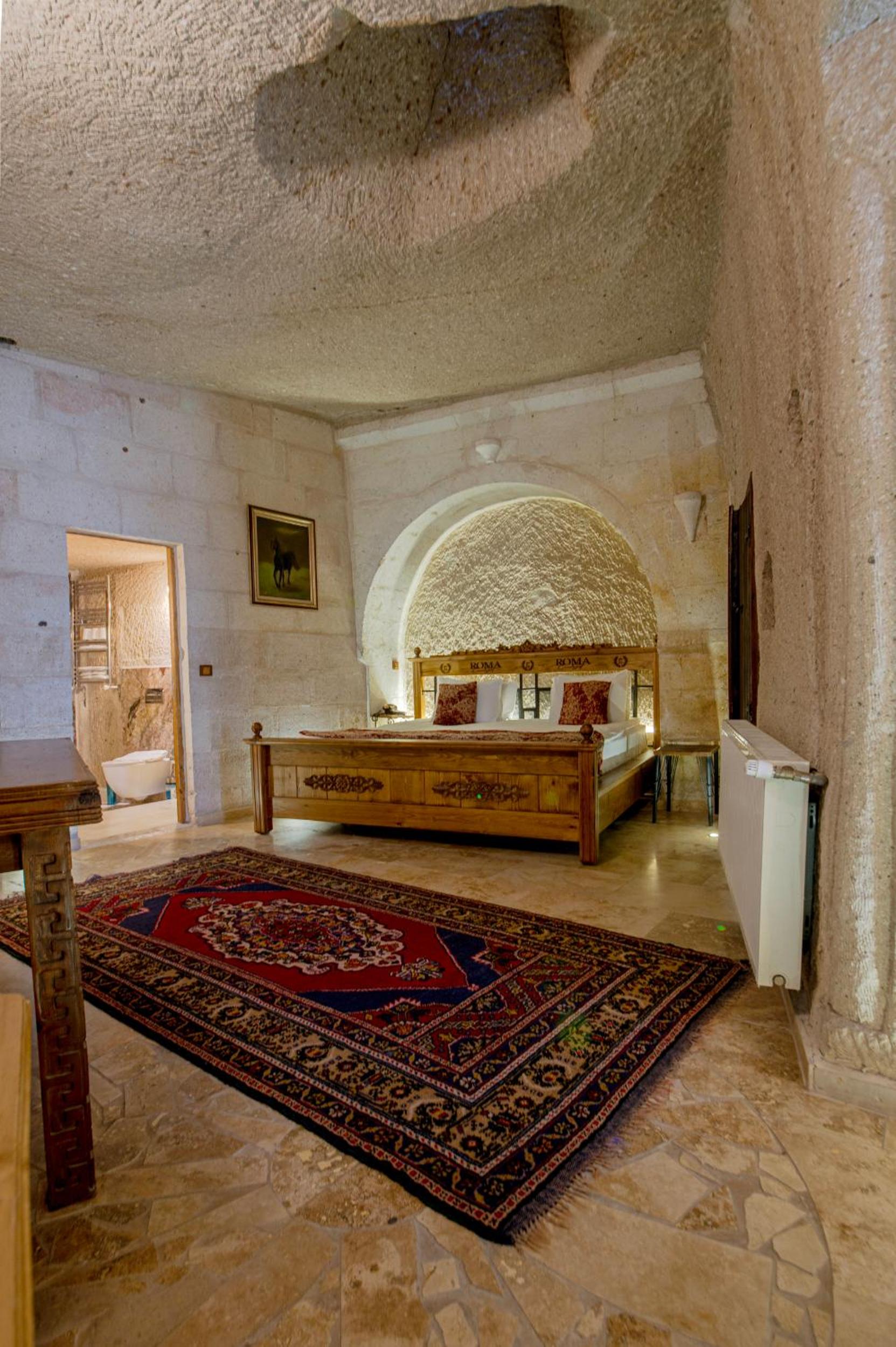 Roma Cave Suite offers a unique experience with traditional cave-style rooms nestled into the hillside of Goreme. The polished wooden floors and vaulted stone ceilings give each room a cozy and authentic feel.