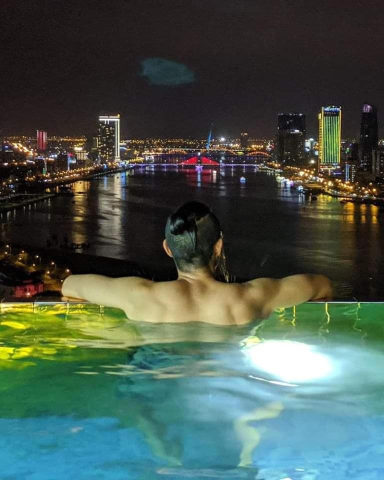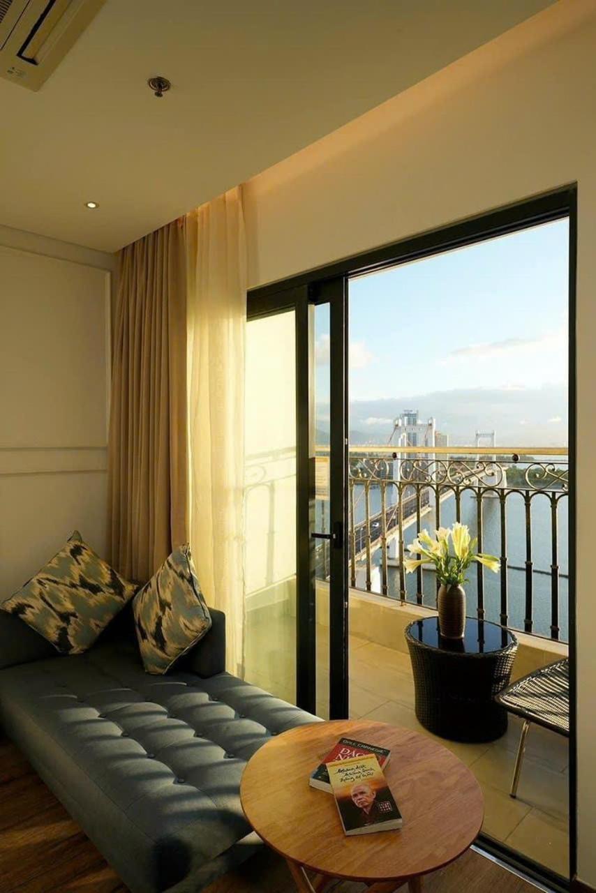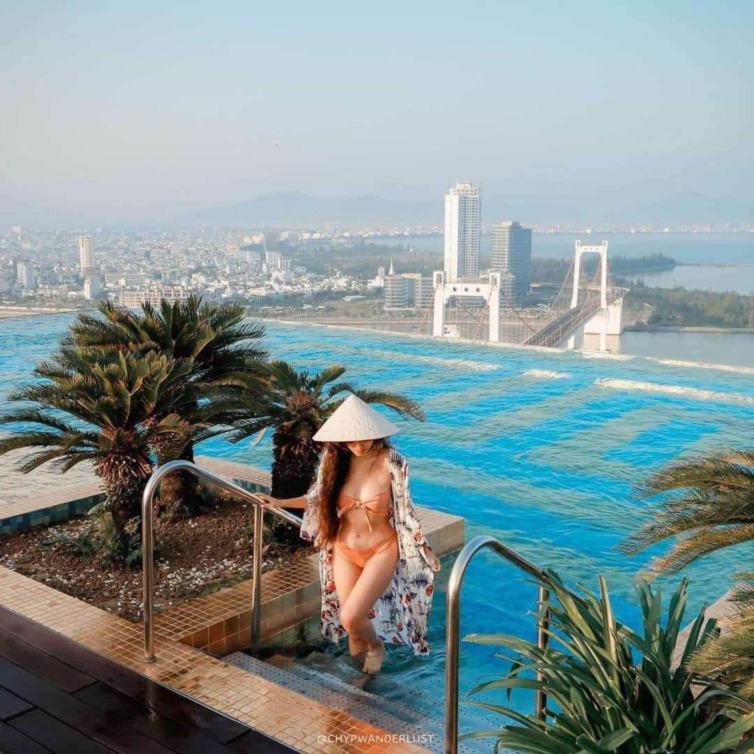 Khách sạn ở sông Hàn, trước cửa khách sạn còn có nhiều quán cafe vỉ hè rất chill.