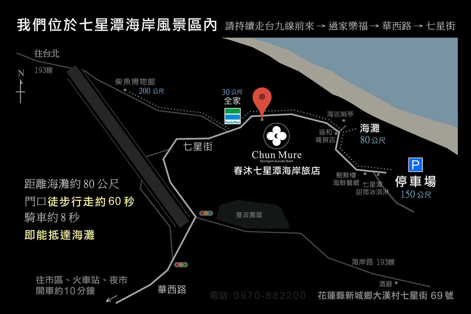 房間乾淨,床很大,睡起來很舒服,離海邊很近,很漂亮的海岸線,步行1分鐘就到了,停車安全又方便,對面就是全家補貨很方便,年輕的老闆很好,很健談,在七星潭要住宿很推春沐,價格很優惠CP質很高。